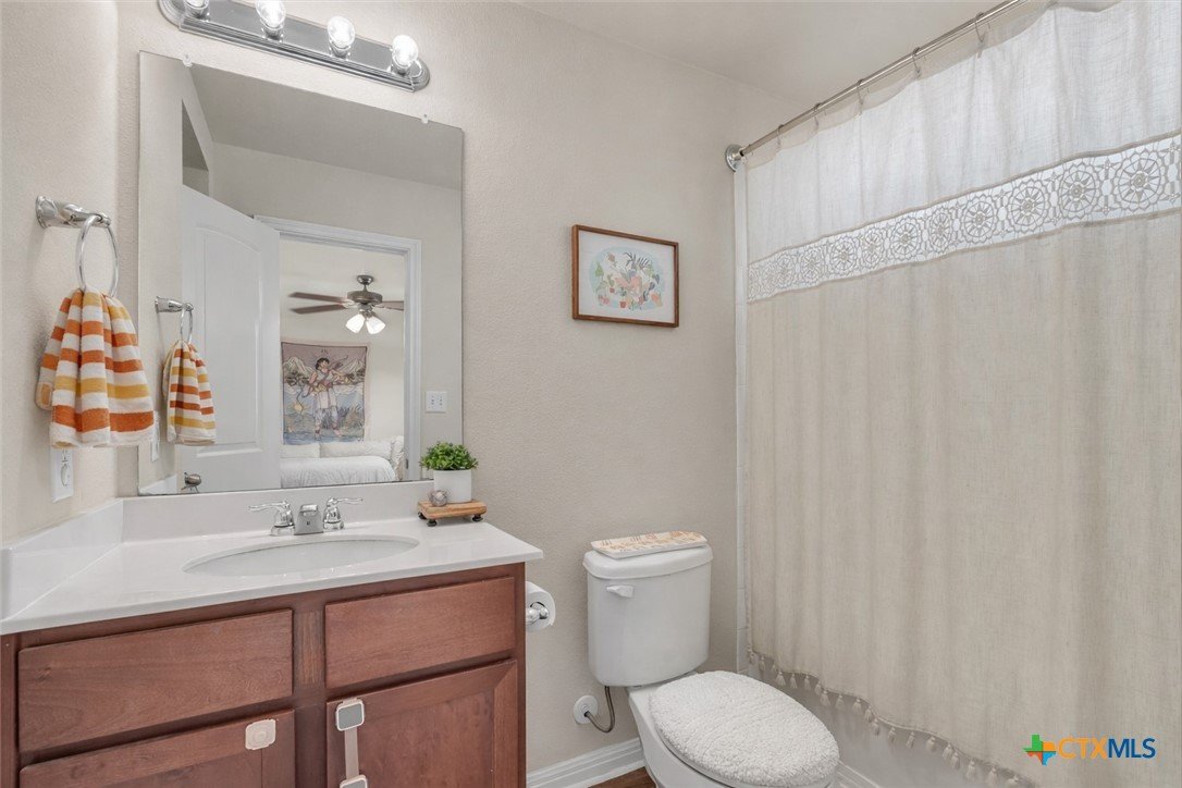Perfectly positioned in the Blanco Vista community, this well-maintained two-story home offers a functional layout, thoughtful updates, and a location that’s hard to beat. The main level features an open-concept living, dining, and kitchen space, ideal for everyday living and entertaining. Wood-look vinyl flooring downstairs provides durability and warmth, while natural light fills the space. The kitchen is equipped with brand-new dishwasher and microwave installed January 2026, ample cabinetry, and a layout that flows seamlessly into the living area. A convenient half bath completes the first floor. Upstairs, you’ll find two generously sized bedrooms and two full bathrooms, offering privacy and separation from the main living space. New carpet replaced January 2026 adds a fresh, clean feel throughout the upper level. The primary suite features large windows, an en-suite bathroom, and comfortable proportions, while the secondary bedroom provides flexibility for guests, a home office, or roommate living. Additional highlights include a whole-house water softener and a full two-car garage for storage and convenience. Located within Blanco Vista, residents enjoy access to a community pool, neighborhood elementary school, and walking trails, all while being conveniently situated between Austin and San Antonio. Whether you’re looking for a primary residence, an investment opportunity, or a home base for students attending Texas State University, this property offers versatility, value, and location.