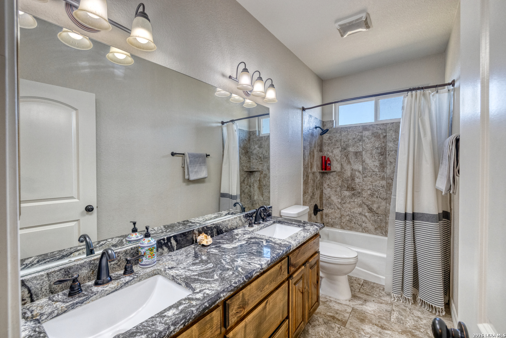Welcome to 106 Sutton Place in Uvalde, a beautifully maintained 2018-built garden home located in a gated subdivision with controlled access, offering an ideal low-maintenance lifestyle without sacrificing style or space. This two-story brick and stucco home features a two-car garage and an inviting entry with a wide hallway perfect for a drop zone, along with a downstairs guest bedroom and full bath with tub/shower combination. The open-concept main living area includes the dining, living, and kitchen spaces and is designed for both everyday comfort and entertaining, highlighted by a large island with seating for up to six, walk-in pantry, granite countertops, stainless steel appliances, tile backsplash, and handcrafted knotty alder cabinetry. Ceramic tile flooring runs throughout all living areas, while the bedrooms feature durable, low-maintenance laminate flooring. The downstairs primary suite offers privacy and comfort with an en suite bath featuring a custom tile shower, granite countertops, ample prep space, and a spacious walk-in closet. A beautiful oak staircase leads upstairs to a second living or media area, two generously sized guest bedrooms, and a full guest bath with dual vanities and a tub/shower combination, with all bedrooms offering walk-in closets. Additional features include a finished garage, downstairs laundry room for convenience, attic access for extra storage, and dual-zone HVAC with separate units for upstairs and downstairs. Outside, the front yard is xeriscaped and the backyard is fully concrete and decking, providing a private, functional, and charming outdoor space that is perfect for entertaining while remaining extremely easy to maintain, making this home an excellent option for anyone seeking a clean, efficient, and lock-and-leave lifestyle.
