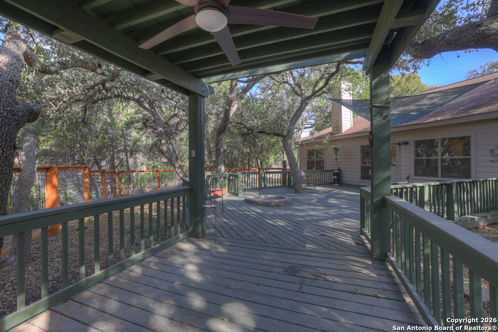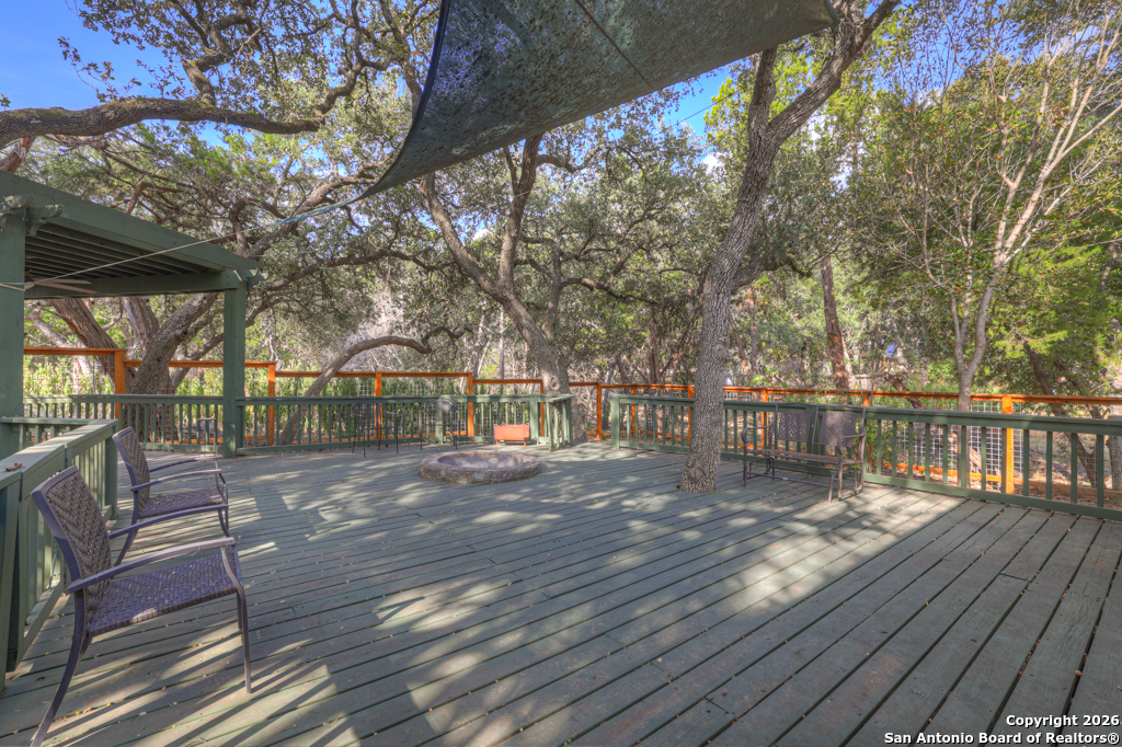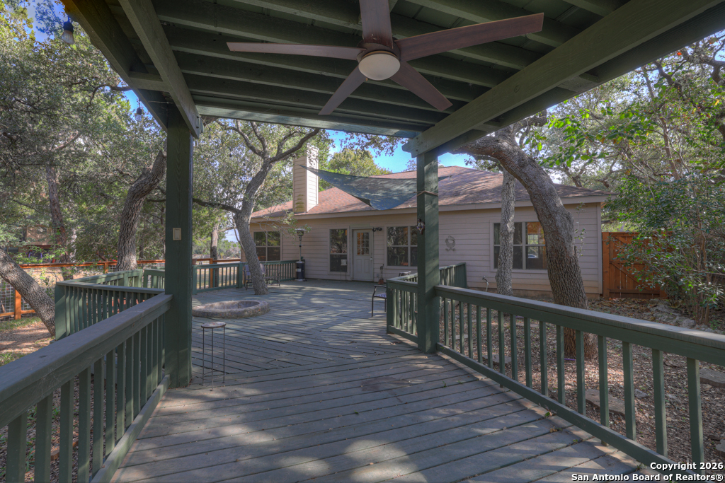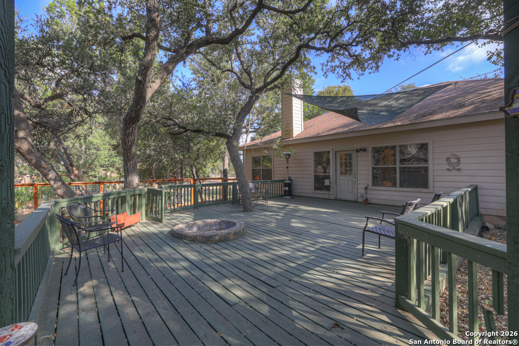 Nestled in the heart of Canyon Lake Hills, this beautiful Hill Country-style home is located in a well-kept, lake-loving community known for its updated deed restrictions and strong pride of ownership. Enjoy peace of mind in a neighborhood that preserves its Hill Country charm with friendly guidelines and a welcoming atmosphere, just minutes from the lake and local favorites. Inside, an inviting open floor plan is anchored by a cozy living room fireplace and enhanced by high ceilings, granite countertops, stainless steel appliances, and quality finishes throughout. The primary suite offers a relaxing jetted tub, while a versatile fourth bedroom above the garage provides the perfect space for guests, a home office, or a media room. Step outside to a spacious 700 sq. ft. back deck with a built-in fire pit-ideal for entertaining or unwinding during peaceful Hill Country evenings. The finished two-car garage features an insulated door for added comfort and efficiency. Don't miss the charm, comfort, and thoughtful design that make this Canyon Lake home truly special.