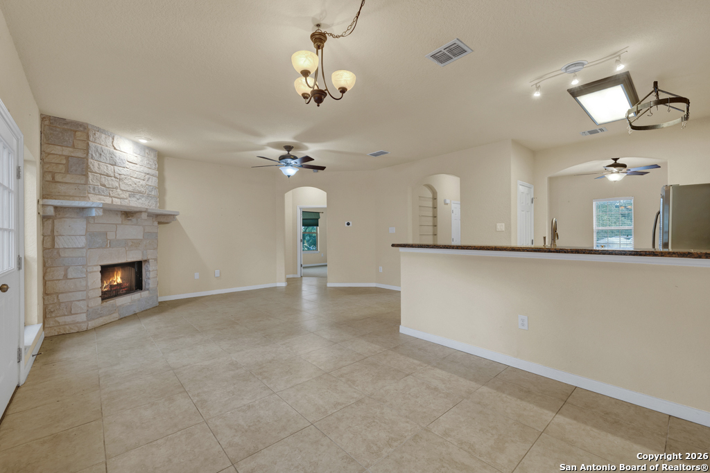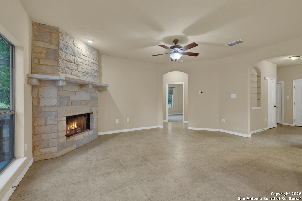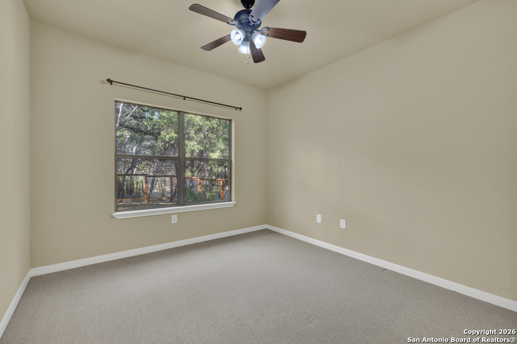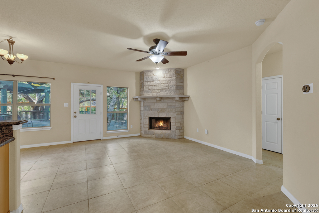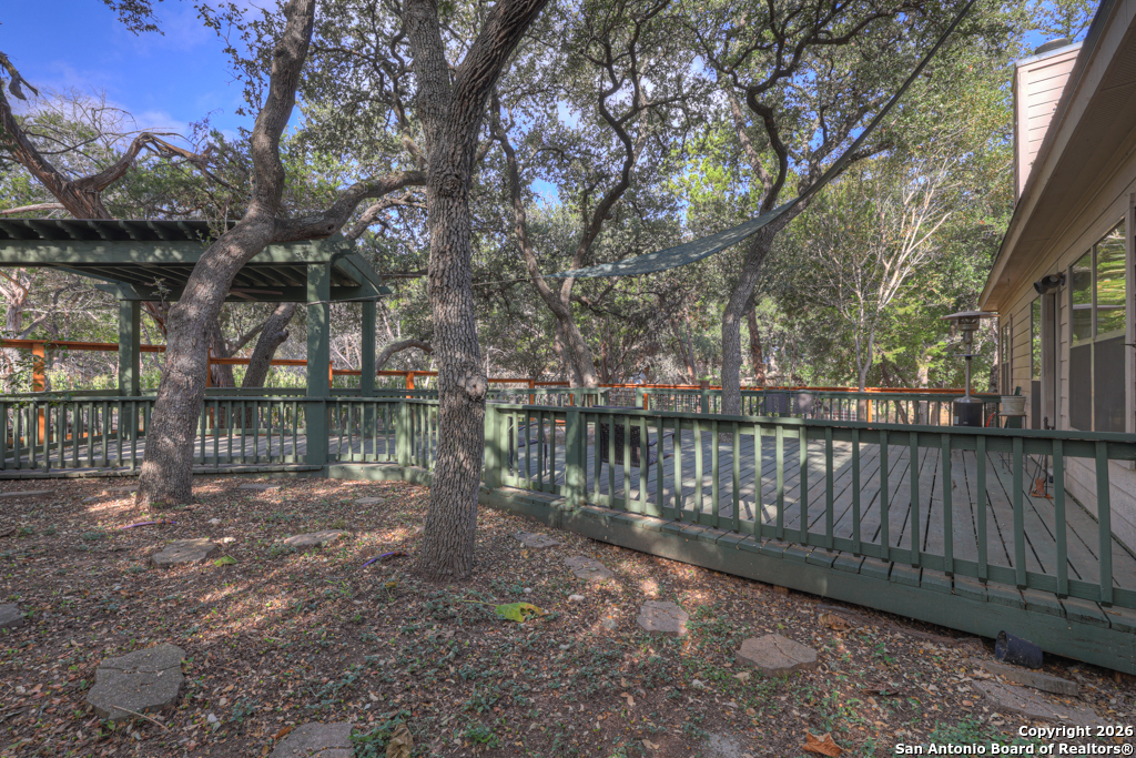 Nestled in the heart of Canyon Lake Hills, this beautiful Hill Country-style home is located in a well-kept, lake-loving community known for its updated deed restrictions and strong pride of ownership. Enjoy peace of mind in a neighborhood that preserves its Hill Country charm with friendly guidelines and a welcoming atmosphere, just minutes from the lake and local favorites. Inside, an inviting open floor plan is anchored by a cozy living room fireplace and enhanced by high ceilings, granite countertops, stainless steel appliances, and quality finishes throughout. The primary suite offers a relaxing jetted tub, while a versatile fourth bedroom above the garage provides the perfect space for guests, a home office, or a media room. Step outside to a spacious 700 sq. ft. back deck with a built-in fire pit-ideal for entertaining or unwinding during peaceful Hill Country evenings. The finished two-car garage features an insulated door for added comfort and efficiency. Don't miss the charm, comfort, and thoughtful design that make this Canyon Lake home truly special.