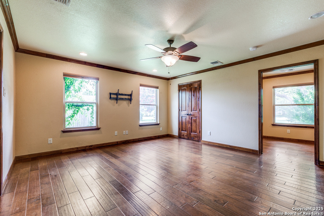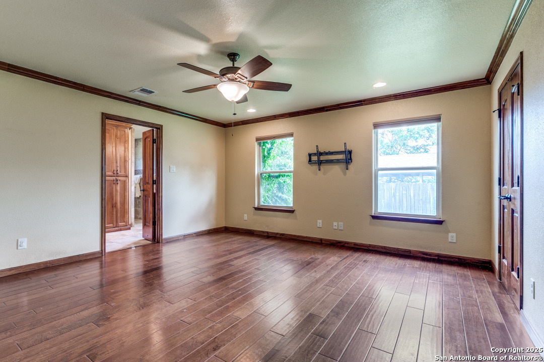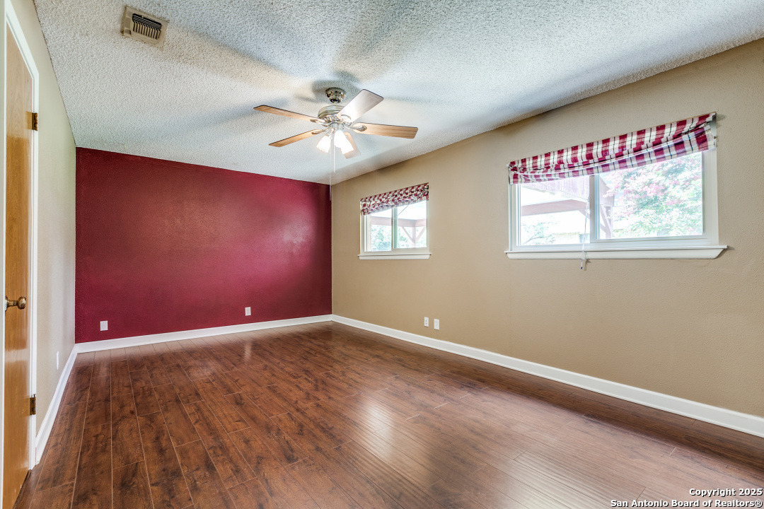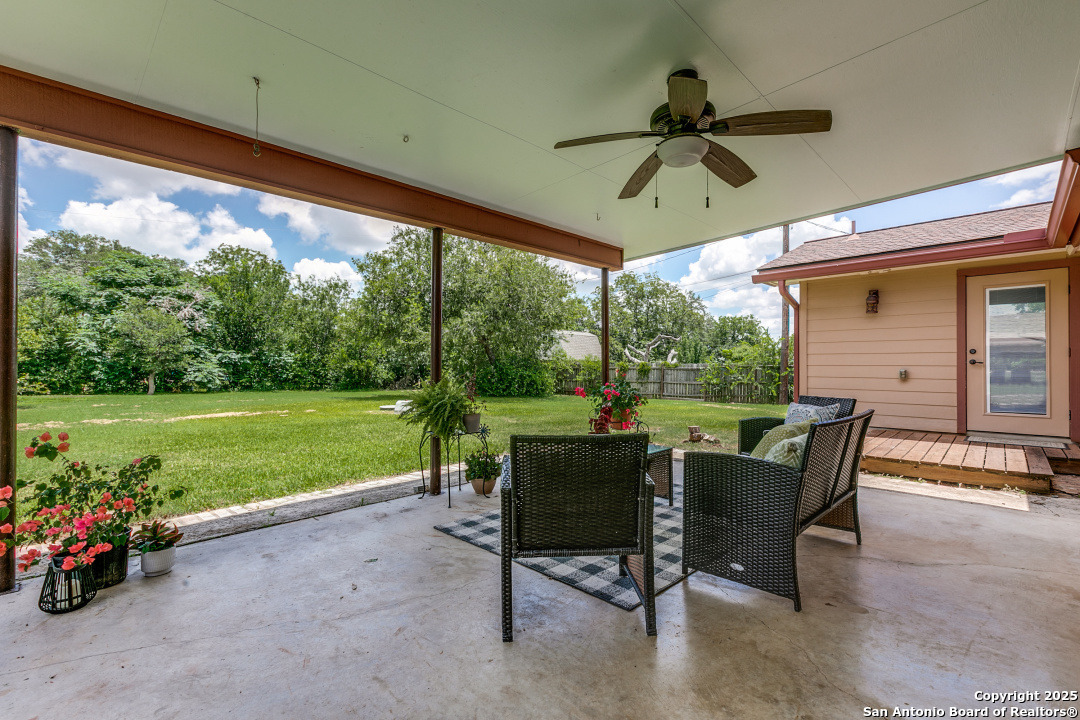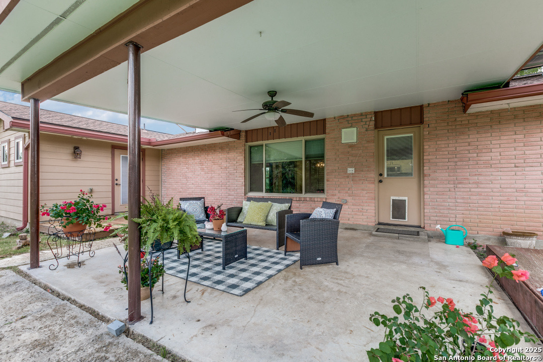 Beautiful Ranch-Style Home on .68 Acres in the Heart of Helotes! Experience the privacy and peaceful Hill Country lifestyle while still enjoying convenient access to San Antonio - all with NO HOA! This well-maintained home offers 2,576 sq. ft., featuring 3 bedrooms, 2 baths, study, plus a custom garage conversion adding an additional secondary living space with a separate entrance, ideal for a guest suite, office, or bonus room. Enjoy an open floor plan with wood and ceramic tile flooring throughout - NO carpet. The spacious formal living area is highlighted by a cozy fireplace and expansive windows that overlook the private covered back patio and large, level backyard, perfect for entertaining or simply enjoying the outdoors. A Galley style kitchen overlooks the primary living area and opens to the dining area, creating a seamless layout for family gatherings and entertaining.The oversized, upgraded primary suite, with study attached, features a spa-like bathroom, complete with dual vanities and a large walk-in shower. A split floorplan provides privacy, with two additional bedrooms and another beautifully updated full bath. More Recent Upgrades Include: Roof replaced with Architectural shingles (warranty included), recently installed custom windows, 2023 HVAC system, 2023 Hot Water Heater, Radiant barrier and R30 blown insulation, Water Softener, 2021 Stove & Microwave, and custom shed. PLUS Solar panels for added energy efficiency.This exceptional property combines modern upgrades, generous living space, and the tranquility of Helotes living - a true gem that won't last long!