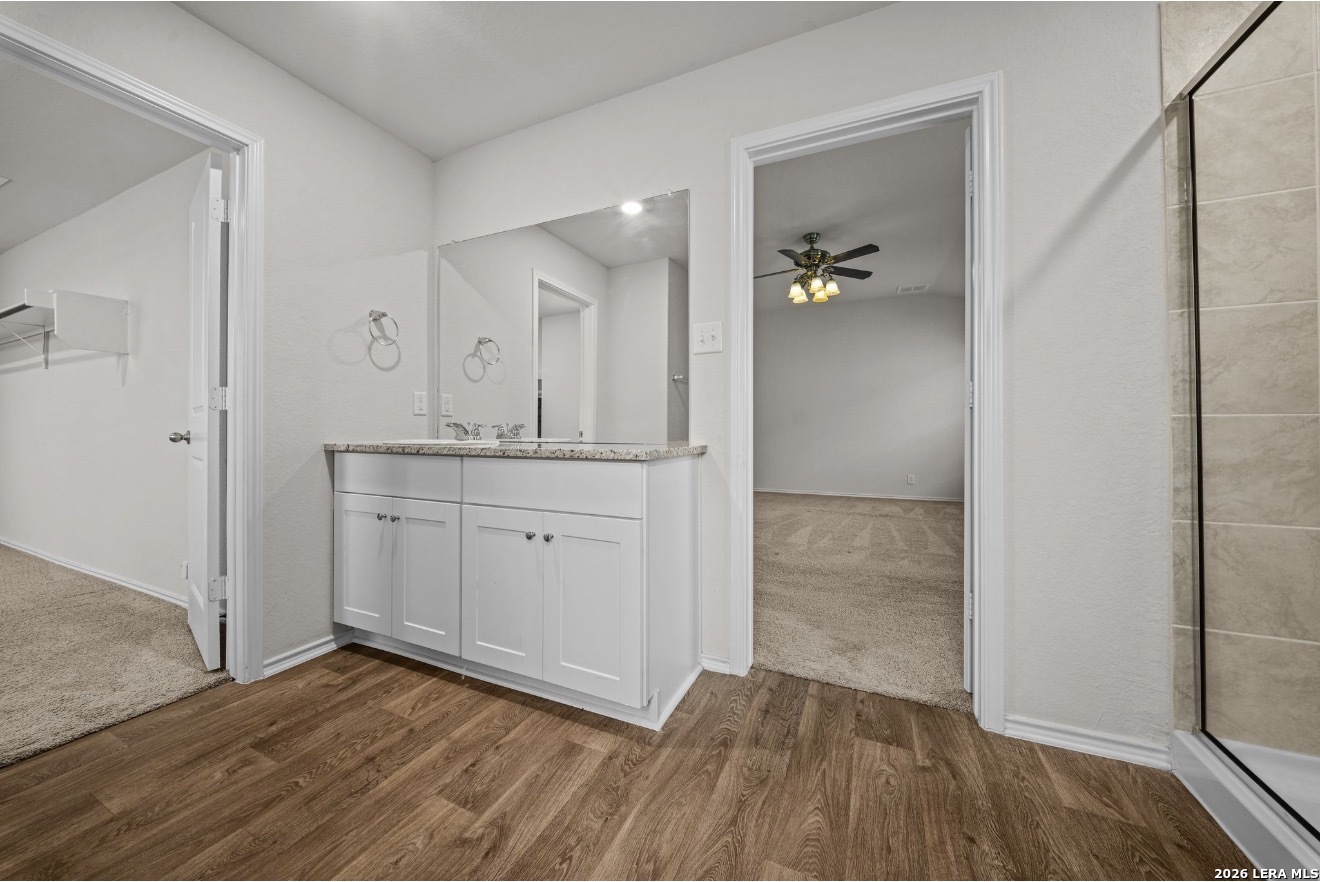Welcome to 10615 Pinova, San Antonio, TX 78252 - a home designed for comfort, space, and everyday living. Step inside to discover a thoughtfully designed layout featuring a convenient first-floor bedroom with direct access to a full bathroom, perfect for guests or multi-generational living. The heart of the home is the kitchen, complete with granite countertops, crisp white cabinetry, and an abundance of counter space for cooking and entertaining. A spacious walk-in pantry adds extra storage, and the refrigerator conveys with the home for added convenience. Upstairs, the main bedroom offers a generous retreat with plenty of room to relax. The ensuite bathroom is equally impressive, featuring a walk-in closet that truly feels like a dream with its expansive size. Outside, you'll find a huge backyard - ideal for gatherings, pets, or simply enjoying outdoor living with plenty of space to make it your own. Located in a welcoming community, residents can also take advantage of a neighborhood pool, perfect for cooling off and enjoying the summer months. This home combines functionality, space, and comfort - ready for you to make it your own that has a HUGE backyard. Also, seller will convey Vivint home security equipment.