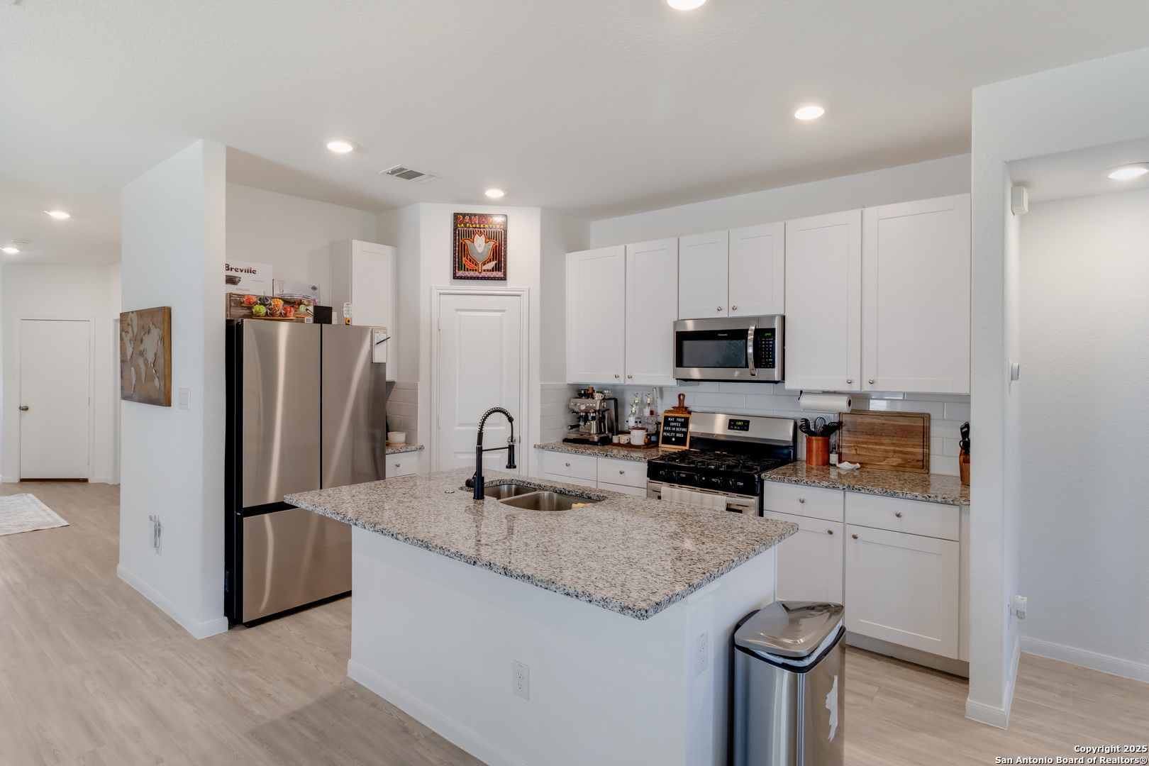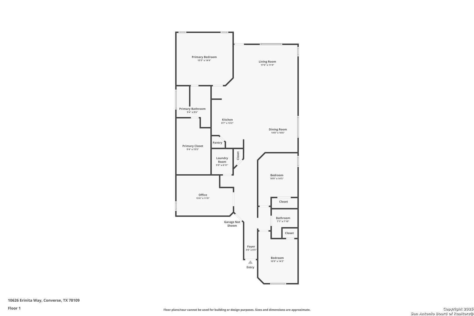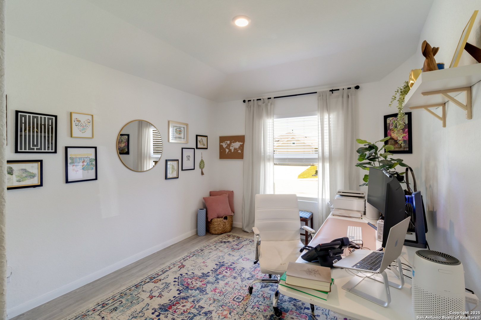 Beautiful 3 bedroom home with a dedicated office that could also be used as a 4th bedroom or media room, located close to Randolph AFB. Enjoy entertaining indoor and outdoors with an open floor plan inside, including granite countertops and stainless steel appliances & a covered patio in the backyard. The custom closet in the primary bedroom is huge! This property is VA assumable. Checkout all this one-story home has to offer, you might fall in love the moment you walk in.