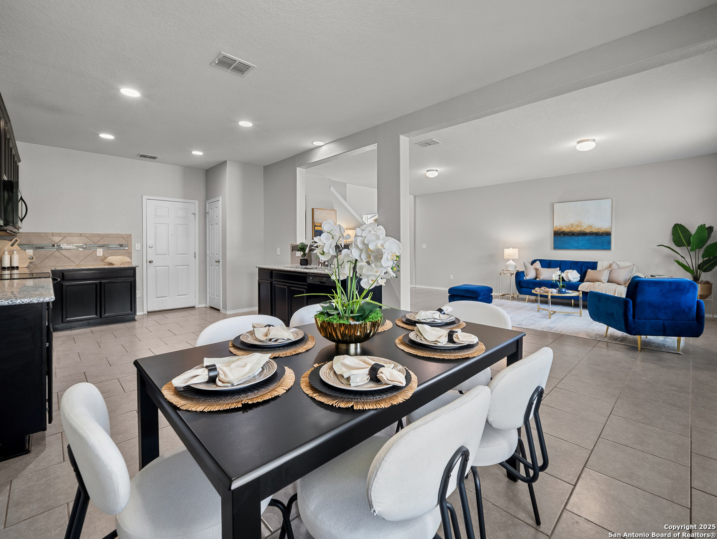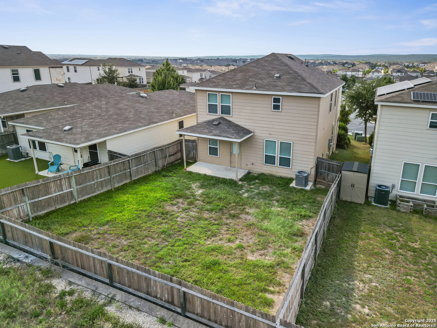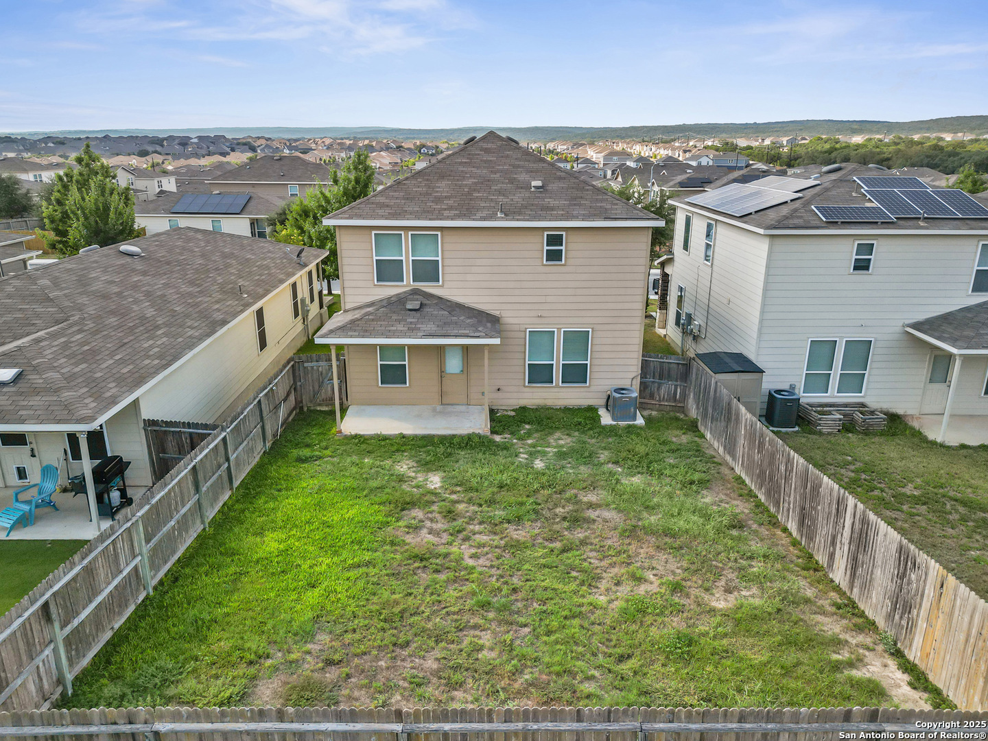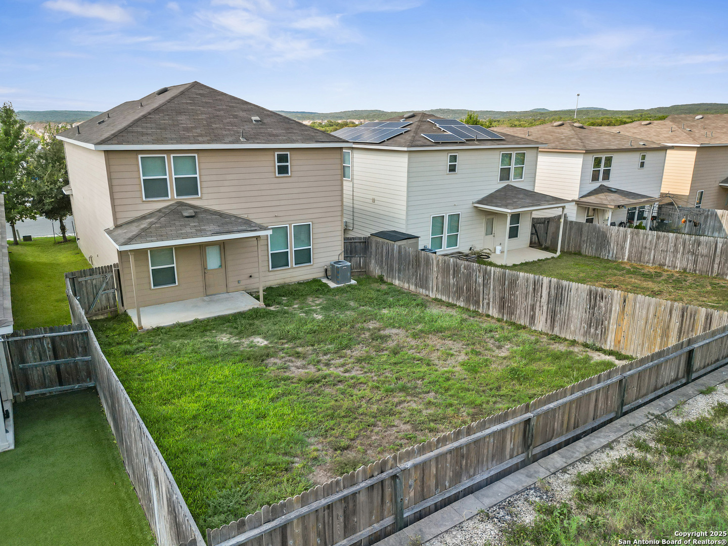 Step into stylish comfort in this thoughtfully designed Silver Canyon home, where modern finishes and a spacious layout make everyday living feel effortless. This two-story residence features 3 bedrooms, 2.5 bathrooms, and an upstairs game room perfect for entertaining or relaxing. The grand entryway with soaring ceilings welcomes you into a bright, open-concept living area that flows seamlessly into the kitchen and dining space. The kitchen offers granite countertops, a decorative tile backsplash, recessed lighting, and plenty of cabinetry-ideal for cooking and hosting. Upstairs, the private primary suite boasts a tray ceiling, dual vanities, a soaking tub, separate shower, and a large walk-in closet. Two additional bedrooms and a versatile game room complete the second floor, providing flexible space for family, guests, or a home office. Outside, enjoy a covered patio and spacious backyard with privacy fencing-perfect for outdoor gatherings. Conveniently located near shopping, dining, top-rated schools, and Government Canyon State Natural Area, this home offers the perfect blend of comfort, function, and location.