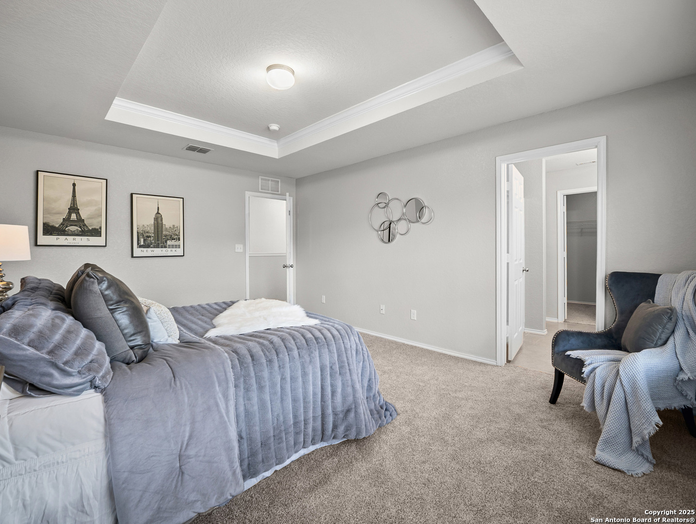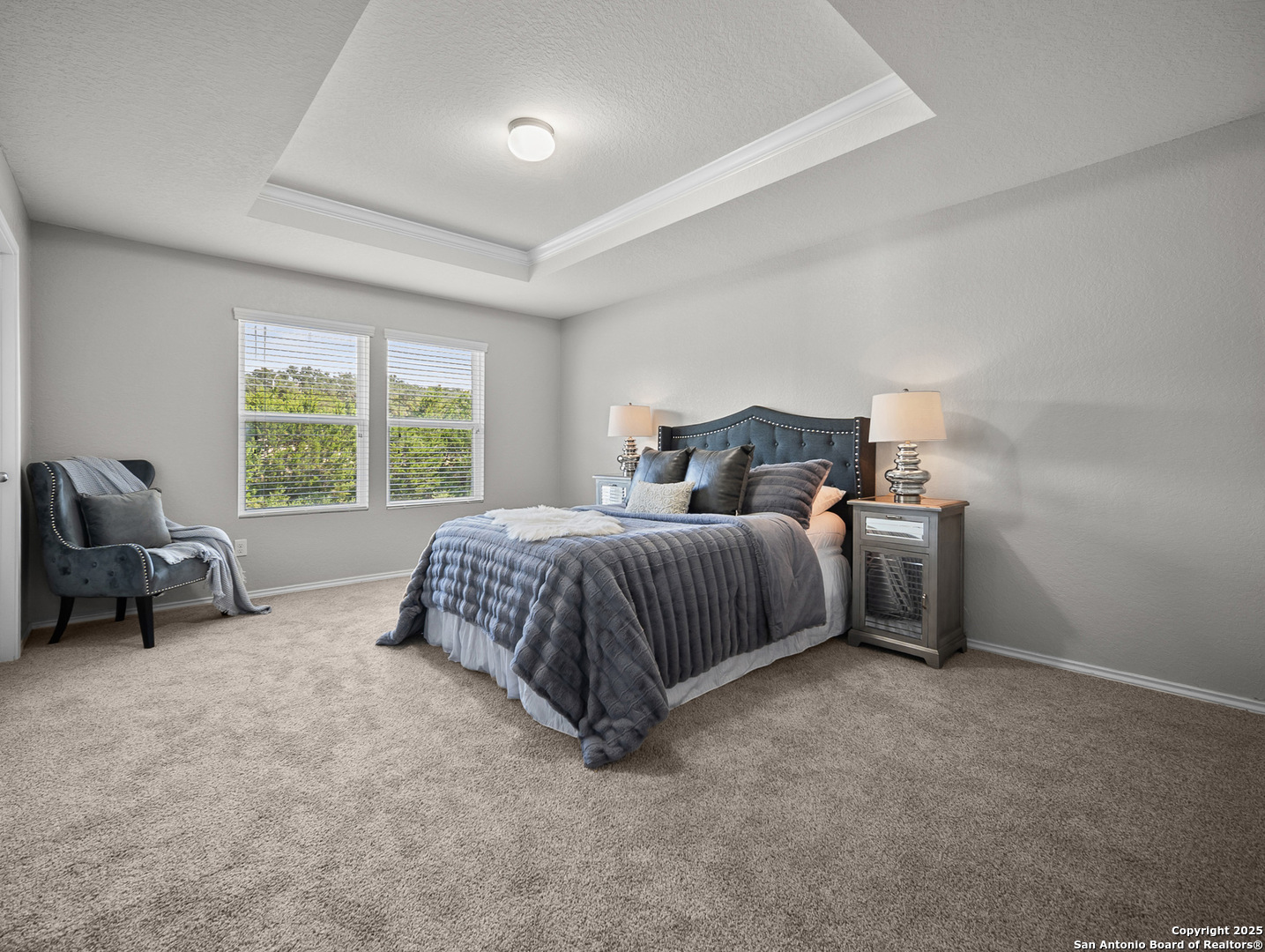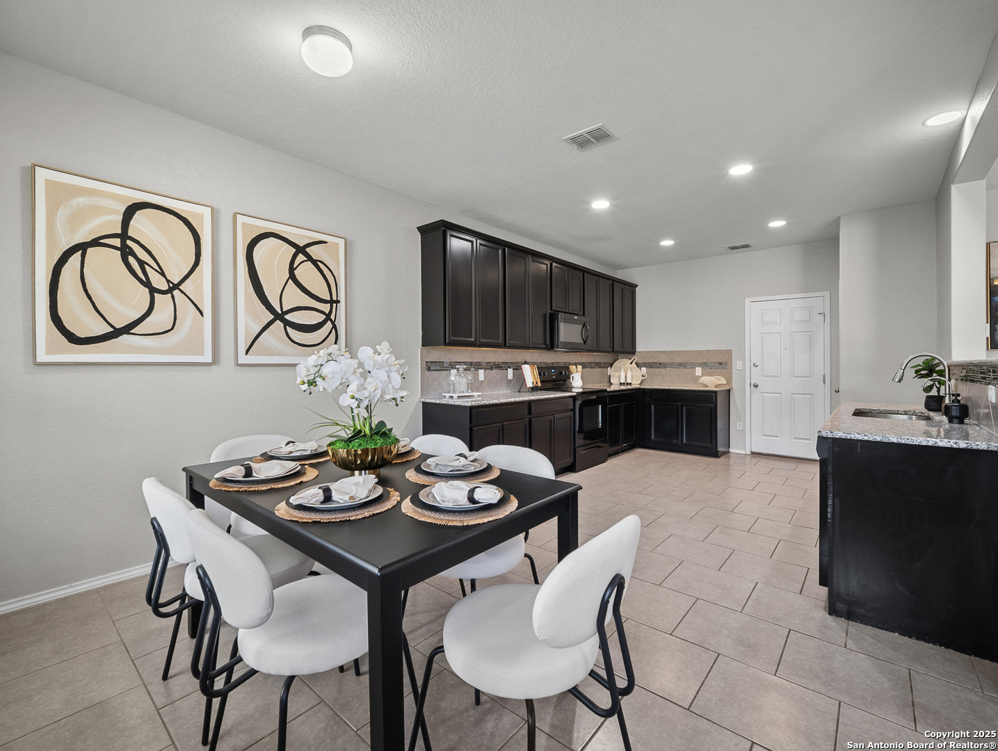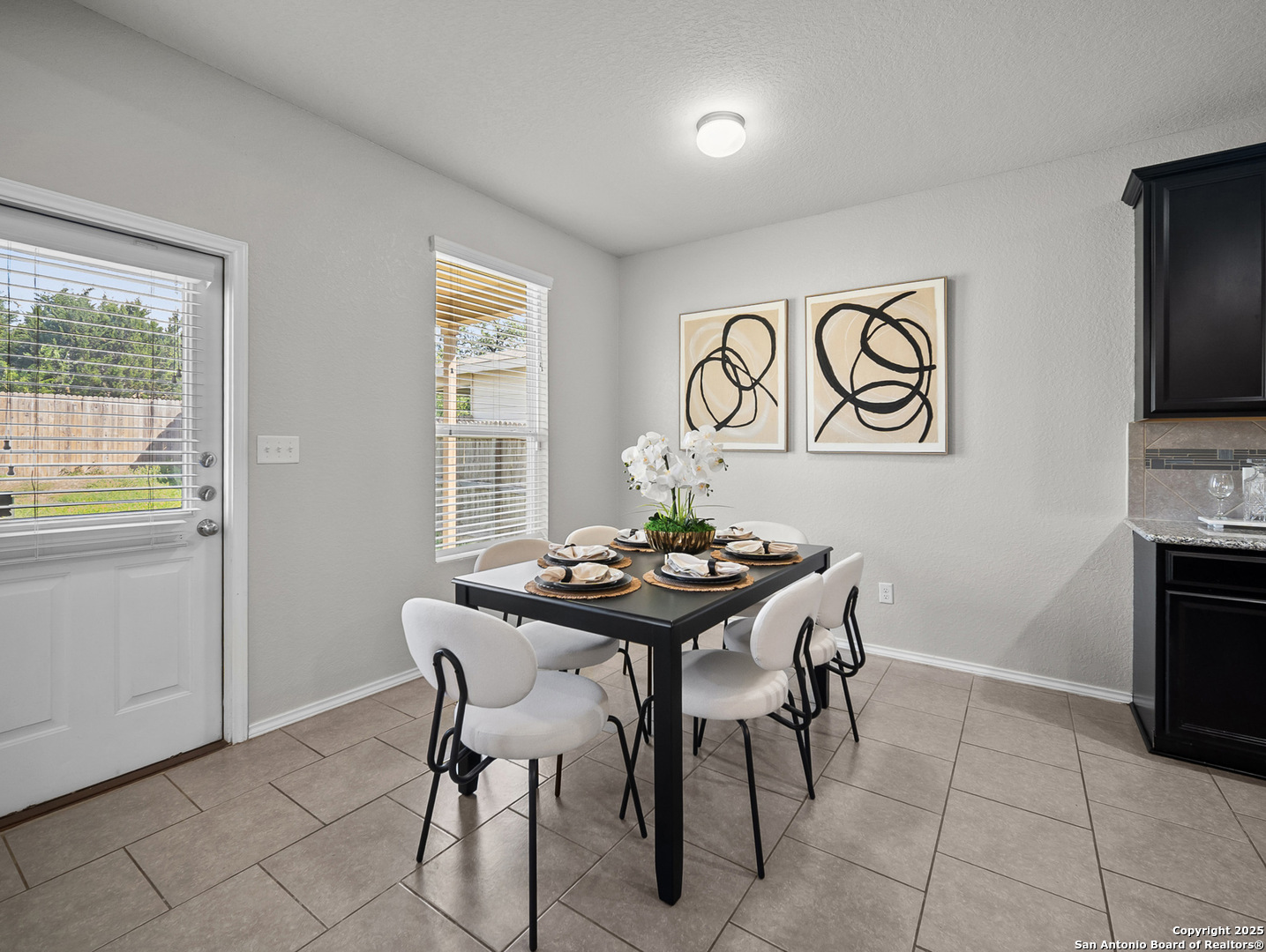 Step into stylish comfort in this thoughtfully designed Silver Canyon home, where modern finishes and a spacious layout make everyday living feel effortless. This two-story residence features 3 bedrooms, 2.5 bathrooms, and an upstairs game room perfect for entertaining or relaxing. The grand entryway with soaring ceilings welcomes you into a bright, open-concept living area that flows seamlessly into the kitchen and dining space. The kitchen offers granite countertops, a decorative tile backsplash, recessed lighting, and plenty of cabinetry-ideal for cooking and hosting. Upstairs, the private primary suite boasts a tray ceiling, dual vanities, a soaking tub, separate shower, and a large walk-in closet. Two additional bedrooms and a versatile game room complete the second floor, providing flexible space for family, guests, or a home office. Outside, enjoy a covered patio and spacious backyard with privacy fencing-perfect for outdoor gatherings. Conveniently located near shopping, dining, top-rated schools, and Government Canyon State Natural Area, this home offers the perfect blend of comfort, function, and location.