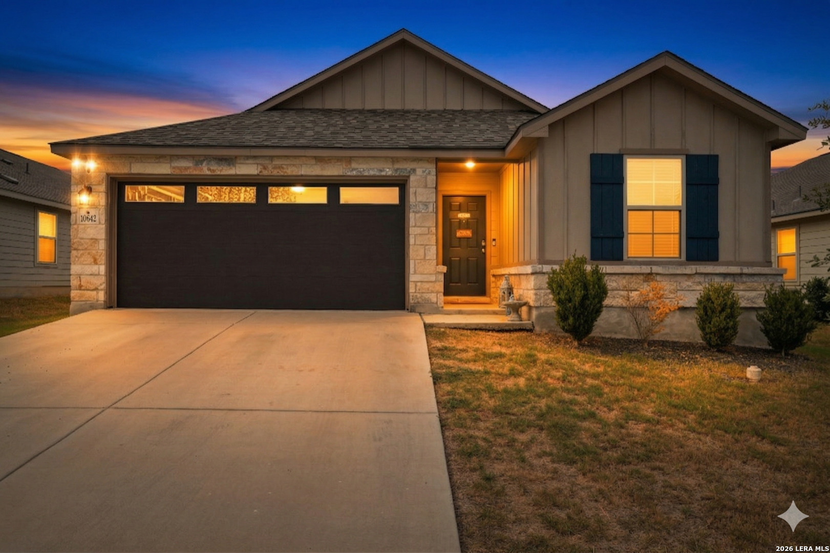 Not your typical cookie-cutter home in this neighborhood. Welcome to 10642 Penelope, where thoughtful upgrades and warm character make this home stand out the moment you arrive. From the curb, the stone-accented exterior, classic shutters, and inviting covered front porch immediately create a welcoming feel, the kind of place where morning coffee, seasonal decor, and friendly waves to neighbors just feel natural. Step inside and the home opens up into a bright, comfortable layout designed for real life. Whether you're relaxing at home, hosting friends, or enjoying everyday routines, the flow between the living, dining, and kitchen areas makes the space feel easy and connected. At the center of it all is the kitchen, truly the heart of the home. The large granite island becomes the natural gathering spot for conversation, meal prep, and casual dining. You'll also find 42" cabinets, a stainless steel 5-burner gas stove, stone backsplash, recessed lighting, and a deep sink with water filtration. Unique reclaimed wood accents in the breakfast nook and on the island add a touch of warmth and personality that you don't often find in homes like this. Durable wood-look tile flooring keeps the home stylish and easy to maintain, while upgraded lighting, raised-panel doors, and tall baseboards add subtle finishing touches throughout. The private owner's suite offers a comfortable retreat with a spacious walk-in closet, dual vanity, and a relaxing garden tub surrounded by tile, perfect for unwinding after a long day. Two additional bedrooms provide flexible space for guests, kids, a home office, or hobbies. You'll also appreciate the practical touches that make daily life easier, including a functional mudroom area off the garage and the washer and dryer already included. Located with convenient access to military bases, shopping, dining, and everyday essentials, this home offers both comfort and convenience in one inviting package. With a price of $265,000, this home offers a rare chance to own something with personality and warmth instead of just another cookie-cutter house. Come see it for yourself, you may just feel at home the moment you walk in.