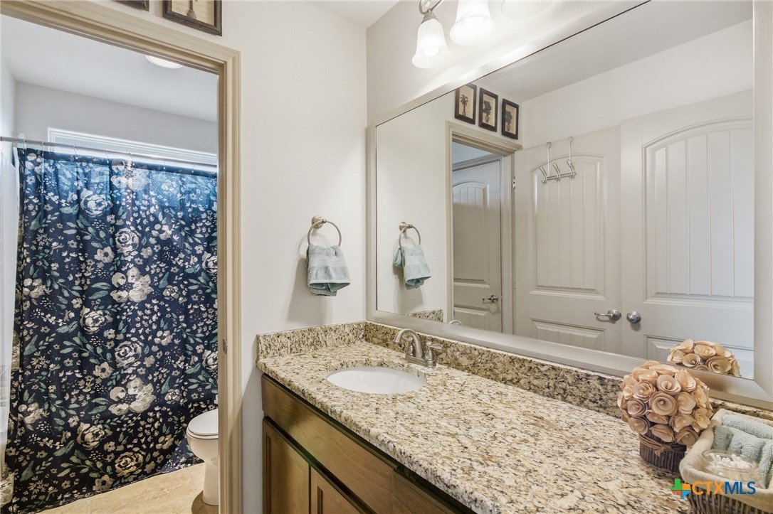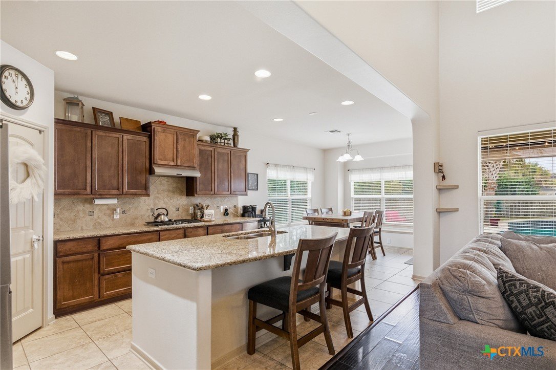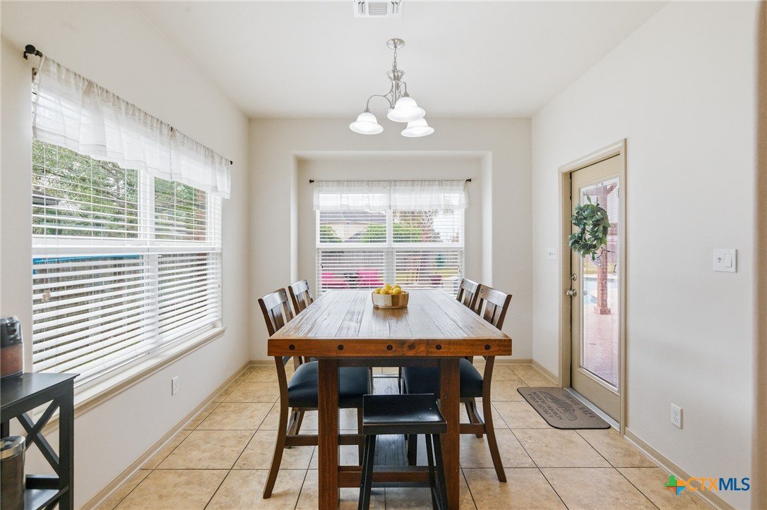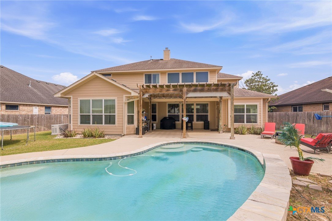 This gorgeous home blends space, comfort, and luxury and is nestled on a sprawling 0.32-acre lot in Victoria’s sought-after Terra Vista subdivision. This 4 bedroom, 3.5 bath gem spans over 3,100 sq. feet, offering an incredible floor plan designed for both entertaining and everyday living. Step inside to a welcoming main level featuring a spacious living area with soaring high ceilings and a stunning fireplace. The versatile formal dining area can also serve as an additional living space and is right across from the private study. For the chef, the gourmet kitchen is a dream, boasting a breakfast bar, ample counter and cabinet space, a walk-in pantry, and a separate casual dining area. Retreat to the private primary suite, a true sanctuary complete with a garden tub, separate shower, and an expansive walk-in closet. A dedicated laundry and mudroom provide seamless entry from the 3-car garage. Upstairs, the possibilities are endless. You'll find 3 bedrooms, 2 full bathrooms (including a Jack-and-Jill setup), a second living area, and a large flex space—perfect for a 5th bedroom, media room, or game room. One of the highlights to this property is the backyard oasis. Escape to the privacy-fenced yard to enjoy the sparkling in-ground pool, relax under the pergola and covered patio. With unparalleled space and a layout that adapts to your needs, this property is truly a rare find.