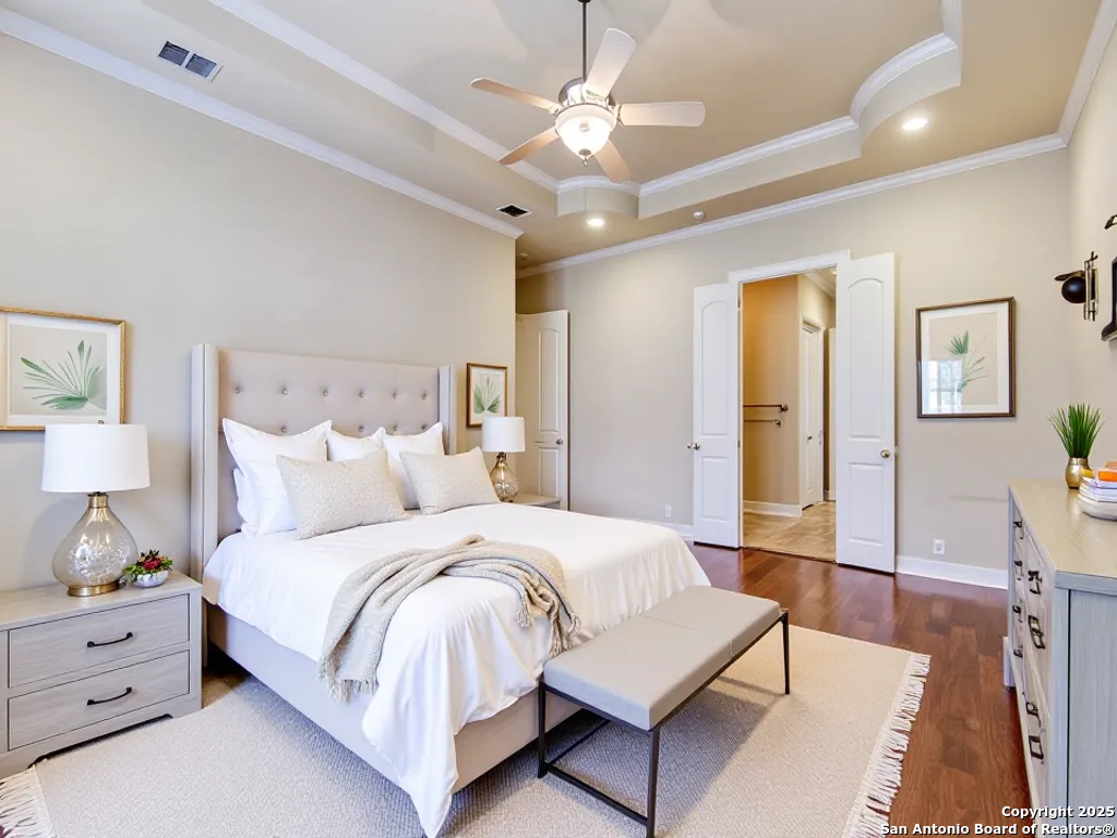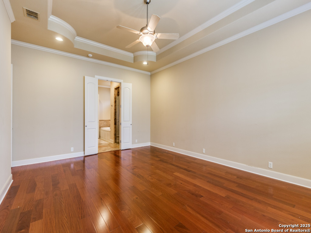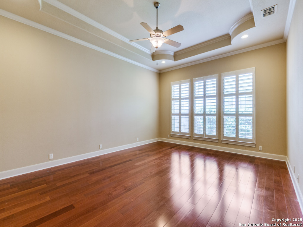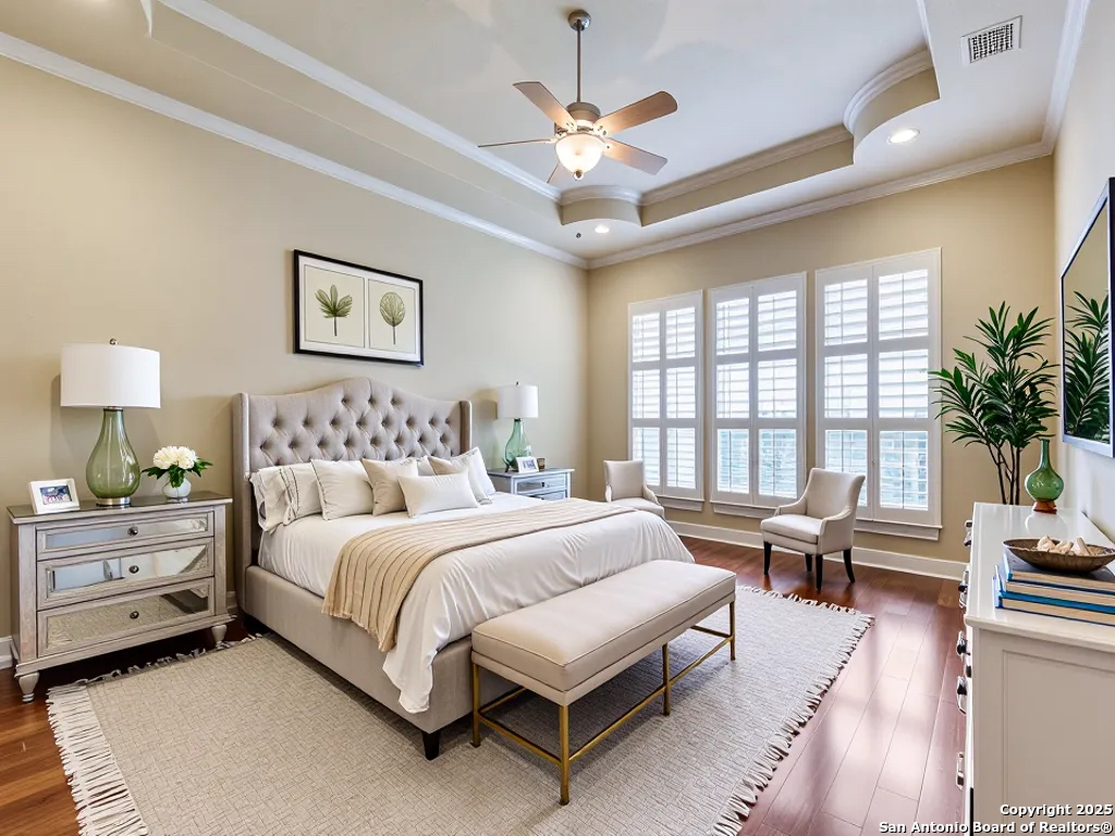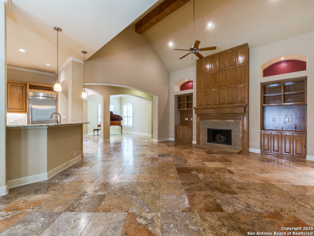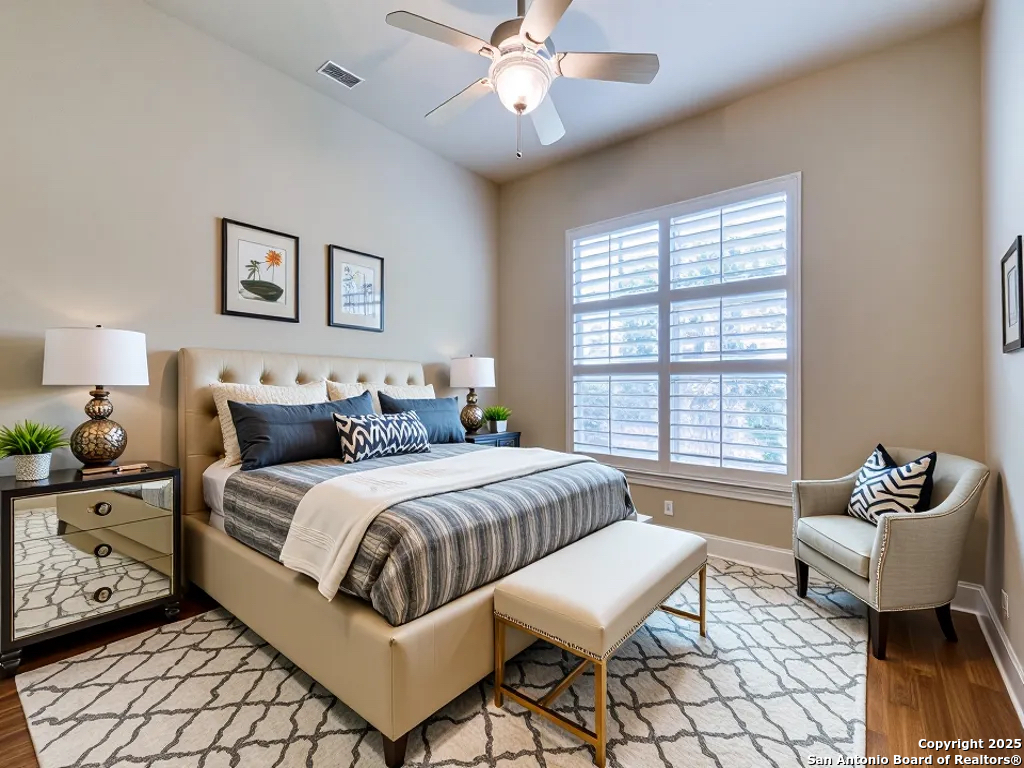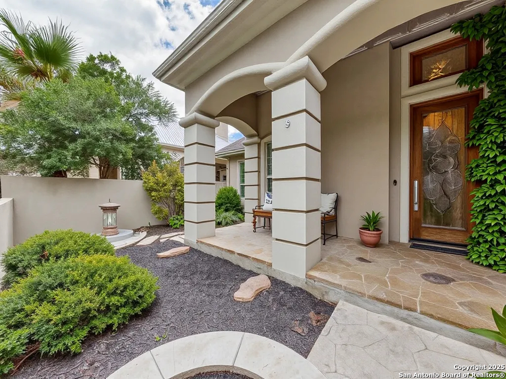 Refined Living in the Heart of Bentley Manor Welcome to 107 Calais Way, a beautifully updated 3-bedroom, 2.5-bath home with a dedicated office/study, located on a quiet street in the gated community of Bentley Manor - Cottage Estates. Surrounded by mature trees, this thoughtfully designed 2,820 sq ft residence offers a perfect blend of privacy, elegance, and low-maintenance living. Step inside to a light-filled, open-concept layout with soaring ceilings, stunning floors, and tasteful architectural details. The spacious living area features a cozy fireplace flanked by custom built-ins and flows seamlessly into the dining area and kitchen-ideal for entertaining or relaxing at home. The chef's kitchen is a showstopper, featuring granite countertops, showcase shelving, and premium stainless steel appliances, including a built-in refrigerator. Ample storage and prep space make it both functional and beautiful. All three generously sized bedrooms include walk-in closets, with the primary suite offering a luxurious retreat complete with a spa-style bath, soaking tub, and walk-in shower. The dedicated office/study provides a quiet, flexible space perfect for working from home or reading in peace. Additional highlights include: No carpet throughout-easy to maintain with a modern look Durable concrete tile roof Oversized garage with extra space for storage or hobbies Large covered patio-ideal for outdoor dining or quiet mornings Enjoy the comfort and security of gated living, along with quick access to I-10, Loop 1604, UTSA, The Rock at La Cantera, and upscale shopping and dining. Zoned to highly rated Northside ISD schools, this home offers the best of both convenience and refined living. Schedule your private showing today and experience Bentley Manor living at its finest.