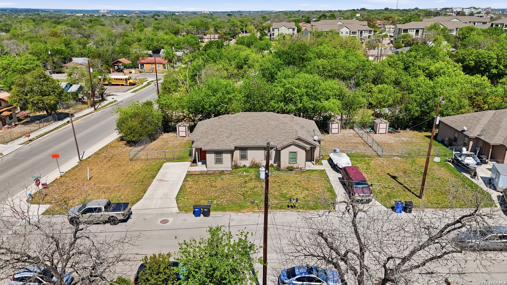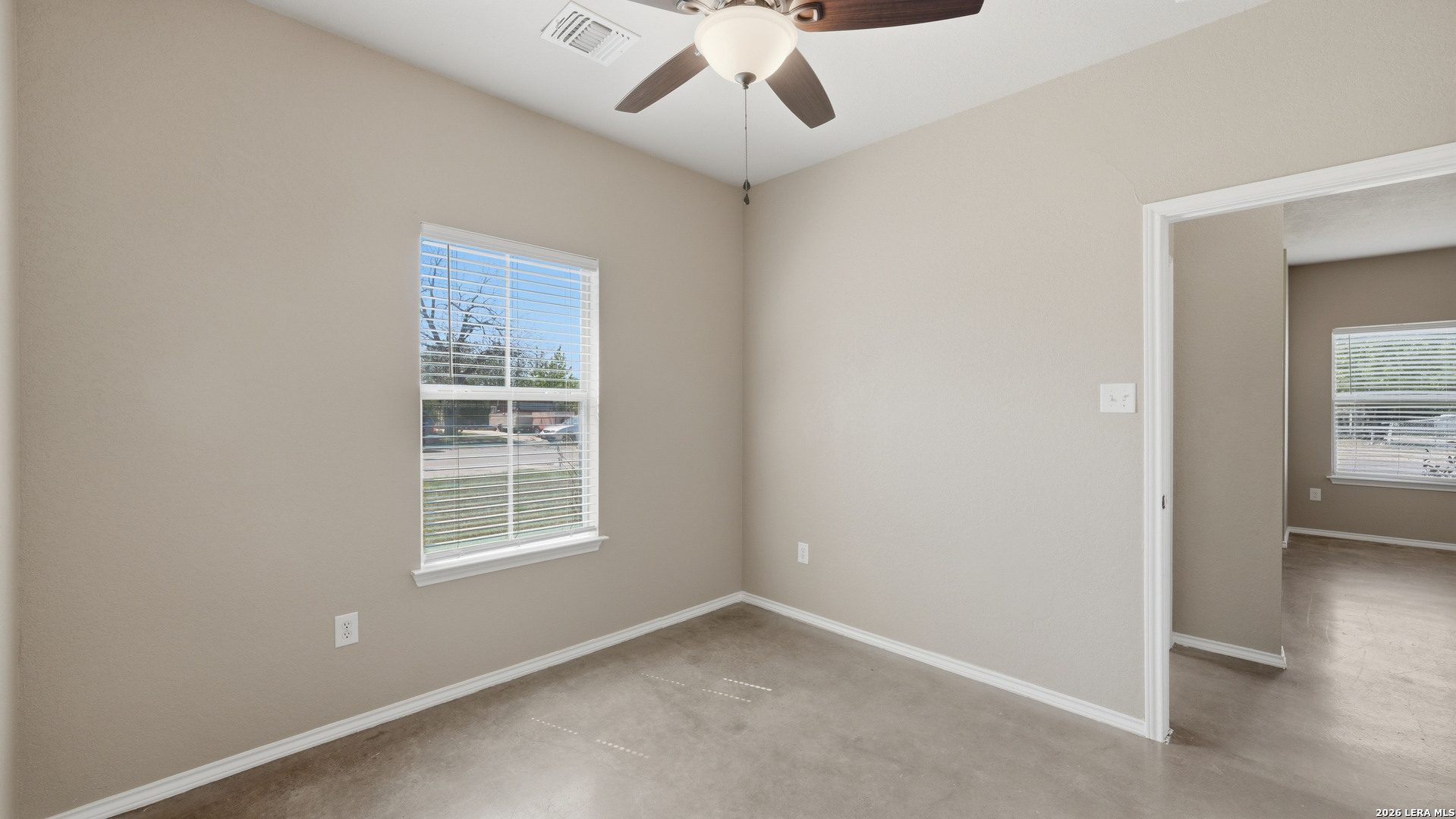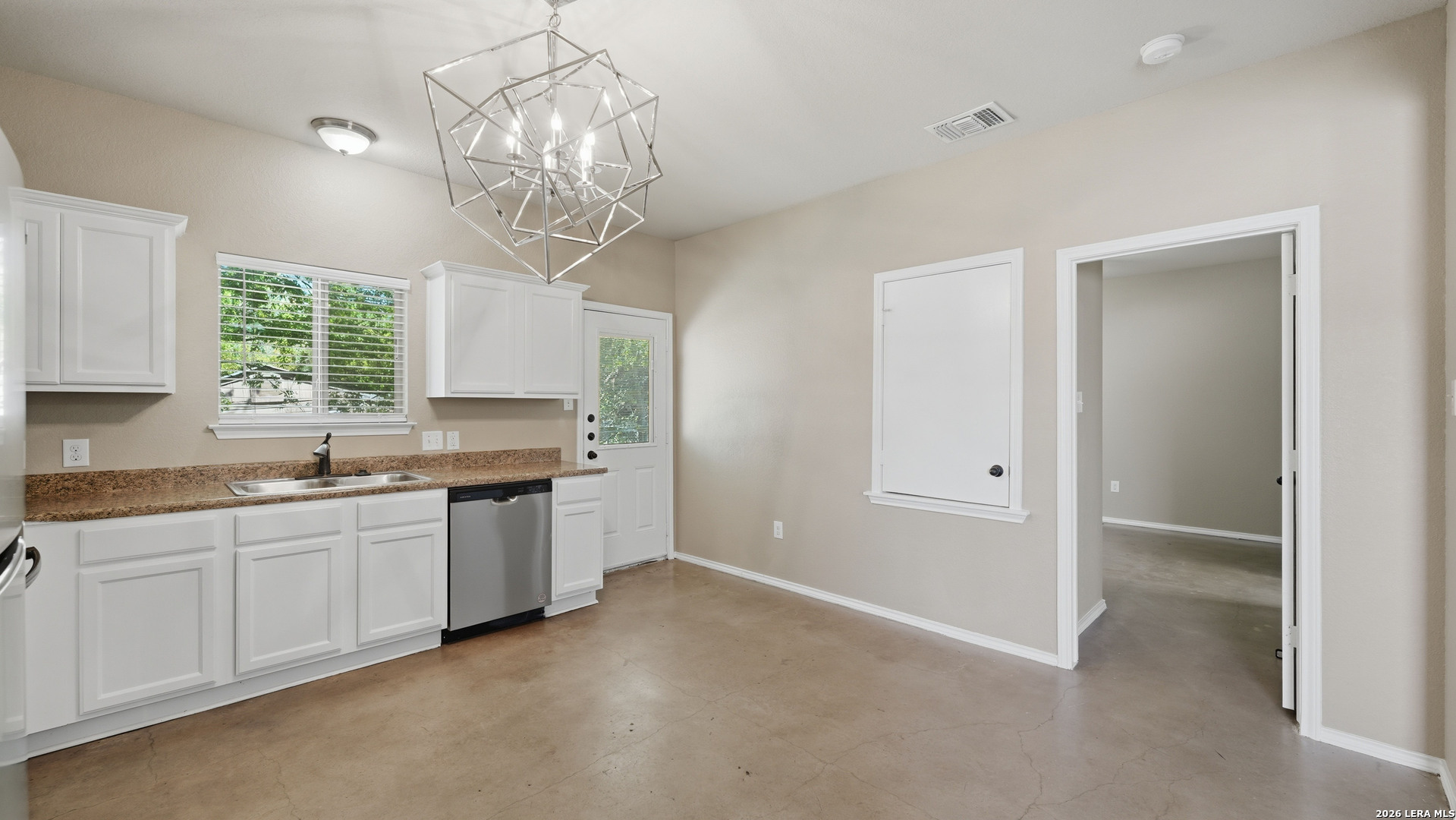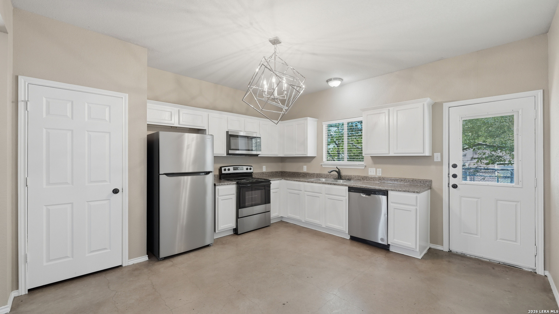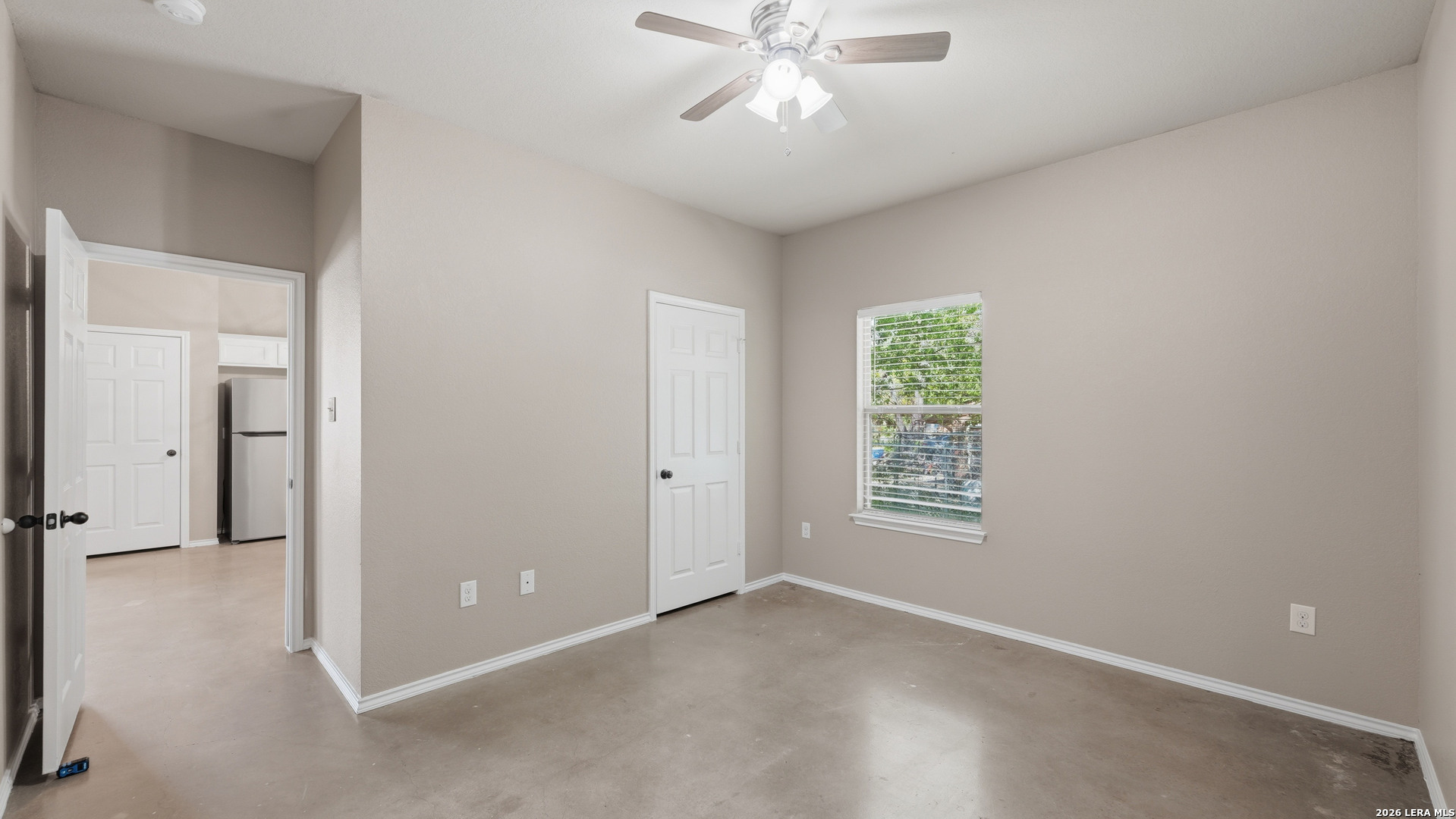Renovated duplex in New Braunfels with an open floor plan and stained concrete floors. The kitchen features updated shaker cabinets and stainless steel appliances, refrigerator and microwave included!! The primary suite includes a private shower and walk-in closet, with secondary bedrooms located on the opposite side of the home. A separate laundry room offers washer and dryer hookups with a convenient storage shelf above. Outside, the corner lot provides a large backyard with a storage shed. Conveniently located near the new library with quick access to I-35 for easy travel to San Antonio or Austin! Contact today for your private showing!
