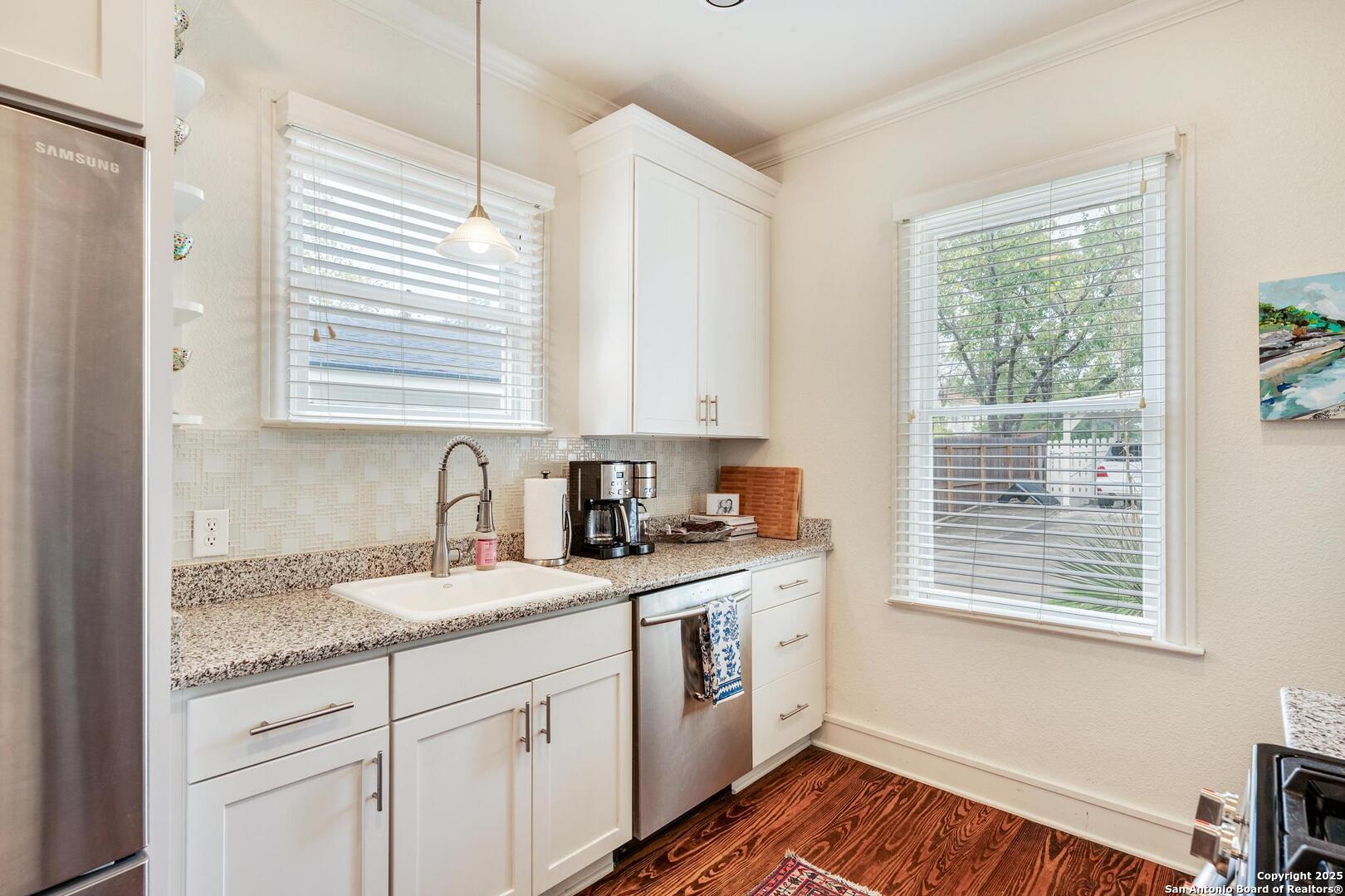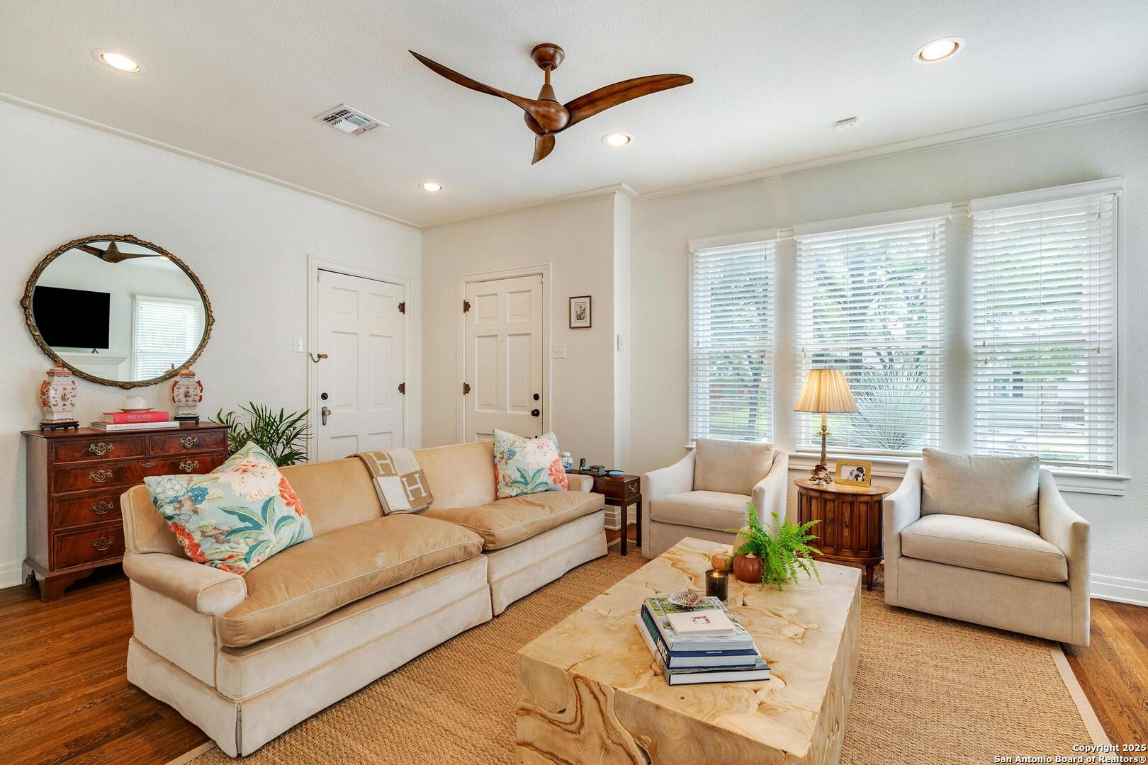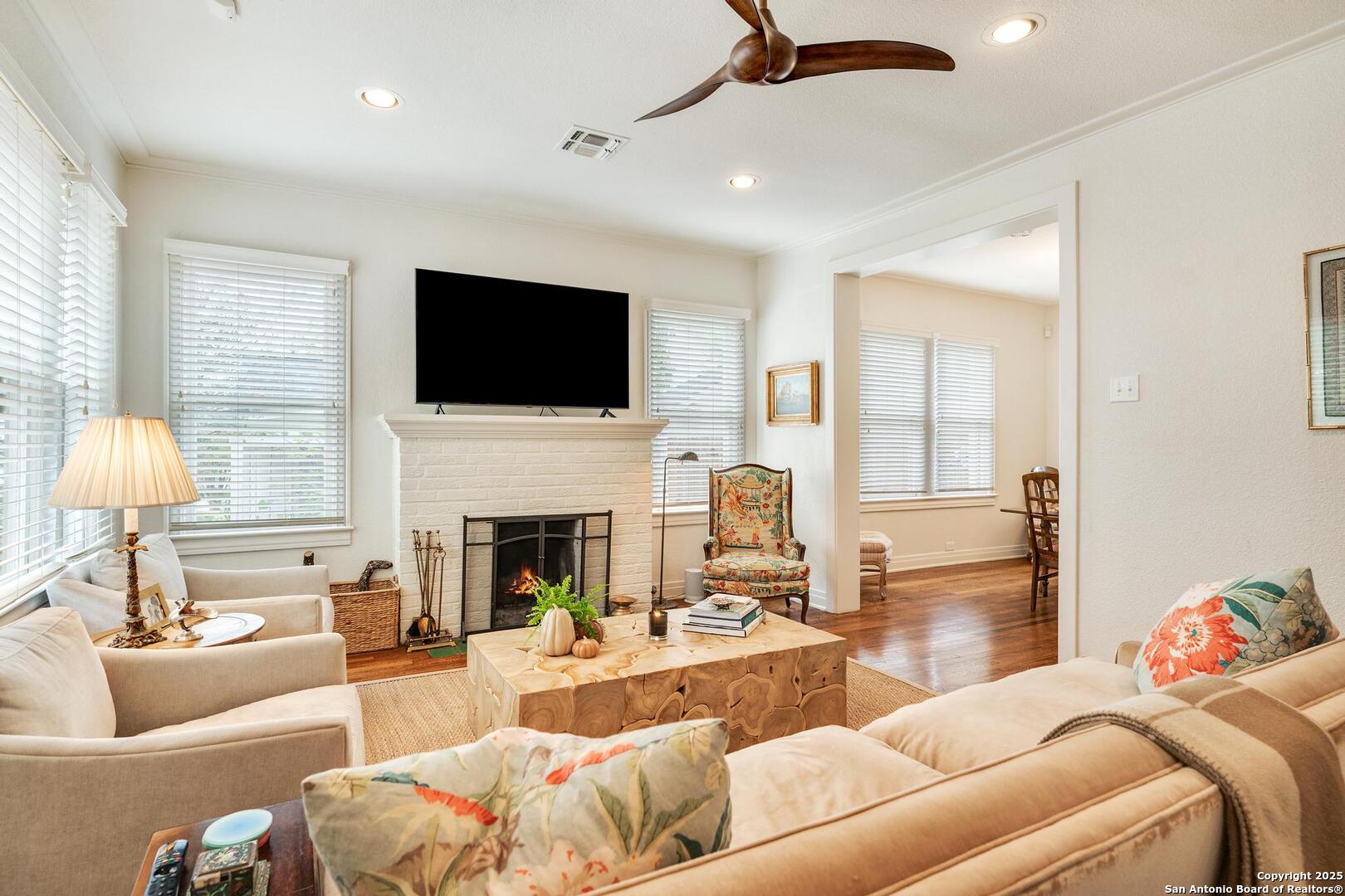 Showings begin Saturday 11/8/25. Charming Brick & Stone Home in Alamo Heights-Bluebonnet Hills This beautifully updated home offers a bright and welcoming atmosphere with a spacious living room, separate dining room, and a well-appointed kitchen. The home includes 3 bedrooms, 2 bathrooms, and a convenient laundry/mudroom. Additional features include a storage room and a carport located at the back of the property. The generous, well-landscaped yard is complemented by two patios, providing plenty of outdoor space. Large windows throughout fill the home with an abundance of natural light, creating a warm and inviting ambiance.