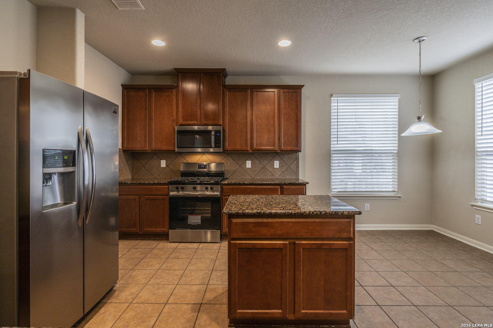 This stunning home combines style and functionality in a sought-after neighborhood. The kitchen boasts granite countertops, a kitchen island, and plenty of space for gathering. The generous primary suite features a walk-in closet, dual vanities, and a garden tub designed for relaxation. Secondary bedrooms share a convenient Jack and Jill bath, making this layout ideal for comfort and privacy. Located in a community with desirable amenities and easy access to shopping, dining, and entertainment. Just a short drive from Lackland Air Force Base.