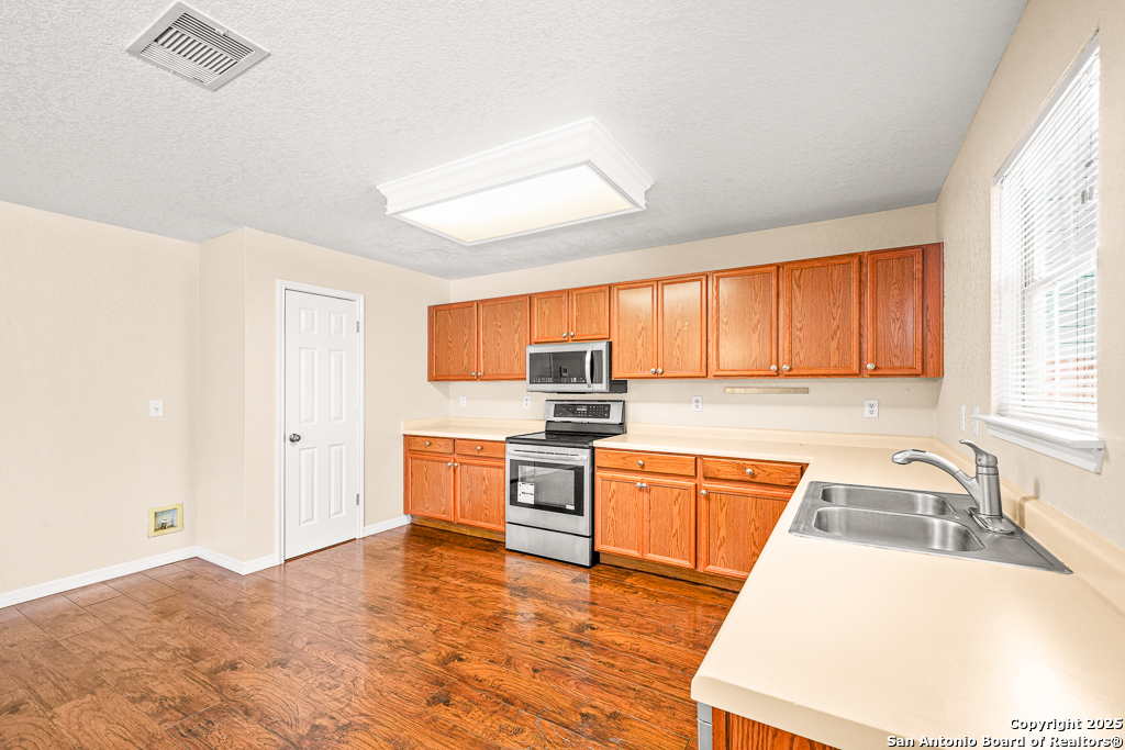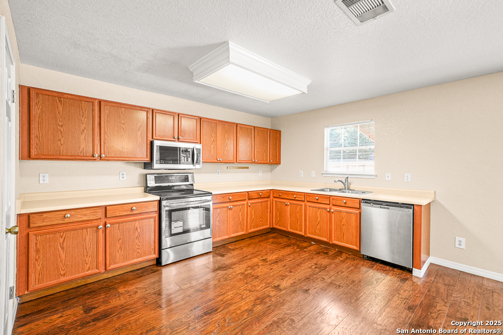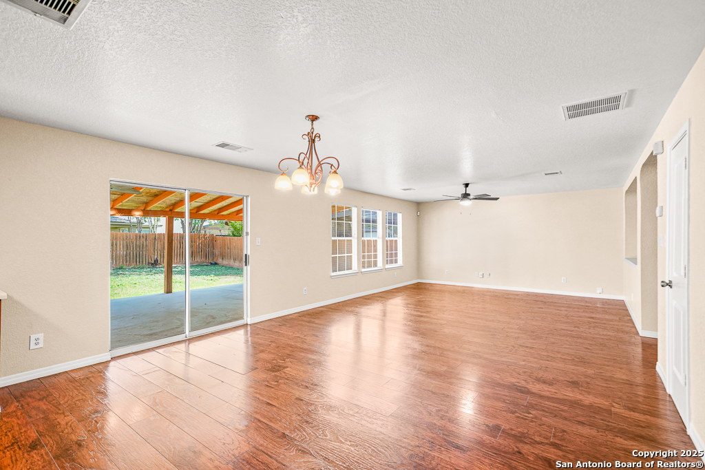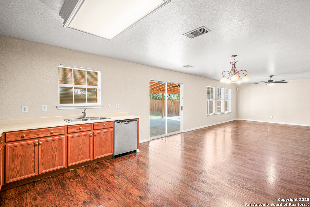 Beautiful open floor plan home on the NW side near shops and restaurants. New interior paint and flooring. Huge primary bedroom with large walk-in closet. Big covered entertainment area in the backyard.