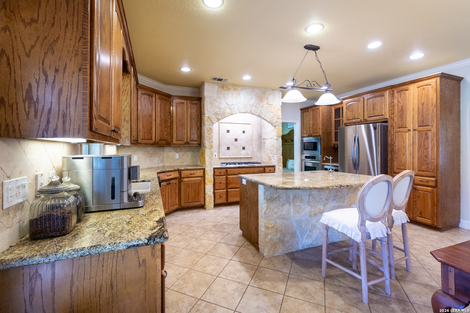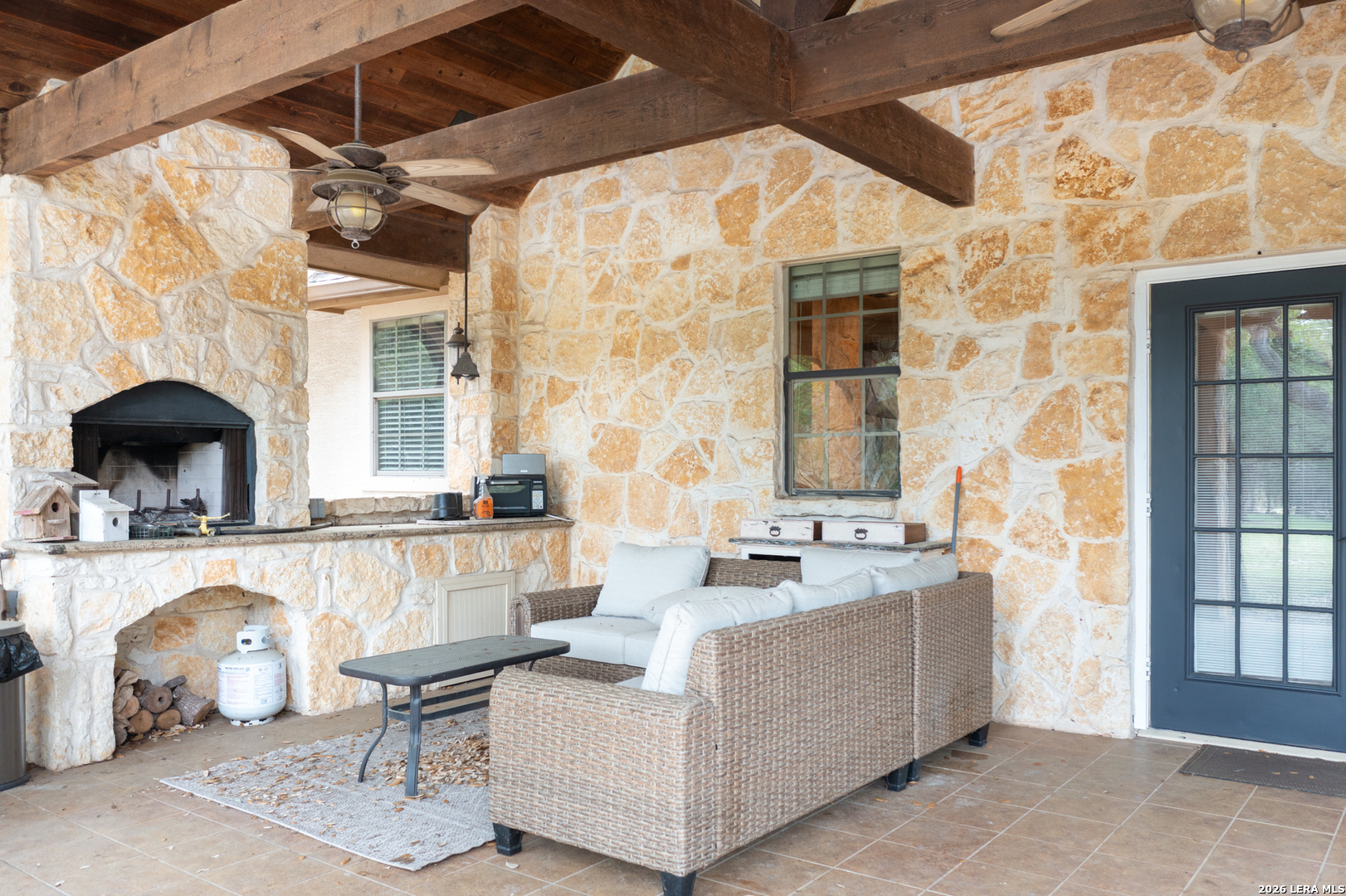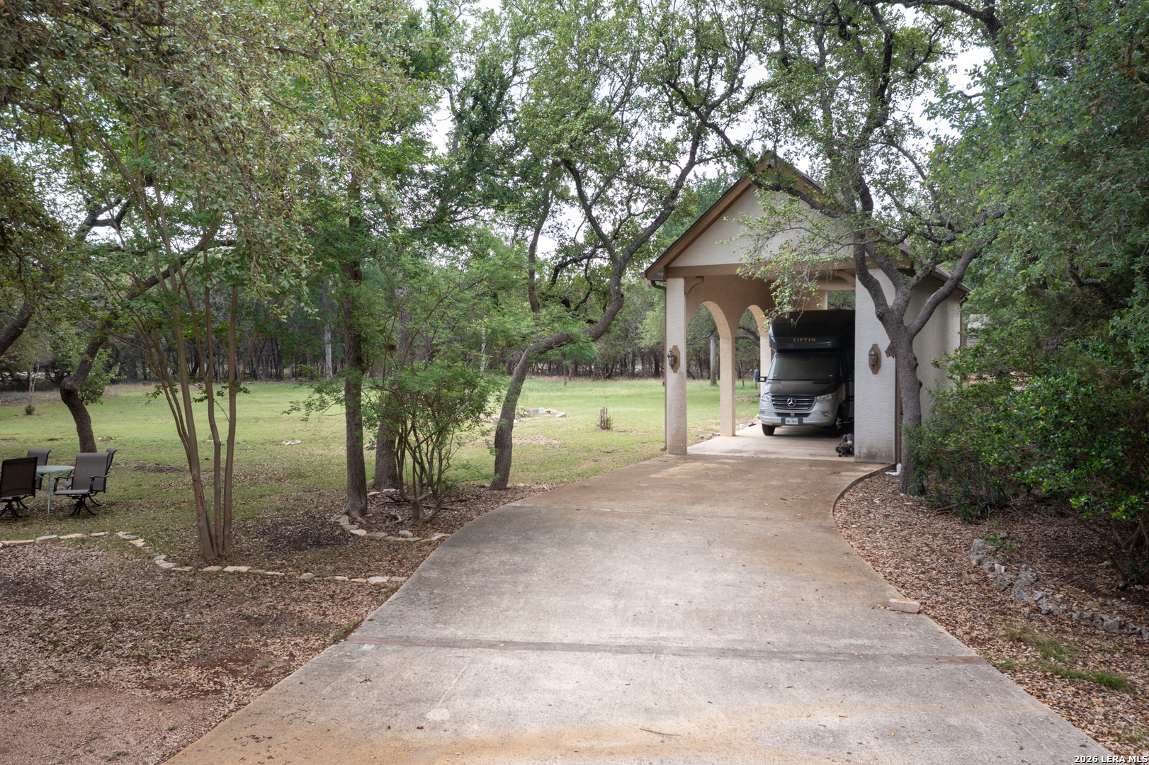 Don't miss out on this custom home on 2.04 acres in the desirable Glenwood gated neighborhood. This charming one-story home has crown molding, coffered ceilings, built in bookcases, a home office, and exquisite kitchen complete with 5-burner gas cooktop, built-in oven and microwave, wine fridge, and prep sink in the oversized island. Perfect for entertaining! The master bedroom has hardwood floors and the suite includes large shower, separate jetted tub, and walk in closet. A second bedroom boasts a built in desk/storage area perfect for a second office space or sewing/craft area and bedroom #3 has hardwood floors and ample closet space. The mud room/laundry room leads to a 3-car garage that includes a finished workshop space. Enjoy views from either of the large covered porches complete with porch swing out front or outdoor rock fireplace from the back patio. There's room for the RV in a 16x50 RV carport with full hookups and storage closets. Enjoy summer days just across the street at the refreshing community pool and community center. Experience the perfect blend of sophisticated living and rural tranquility in this sought-after neighborhood. This perfect Hill Country setting is near local shopping and just minutes from San Antonio, Boerne, and New Braunfels.