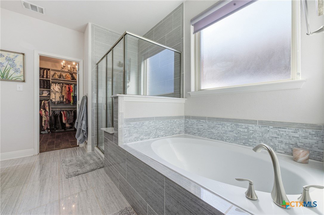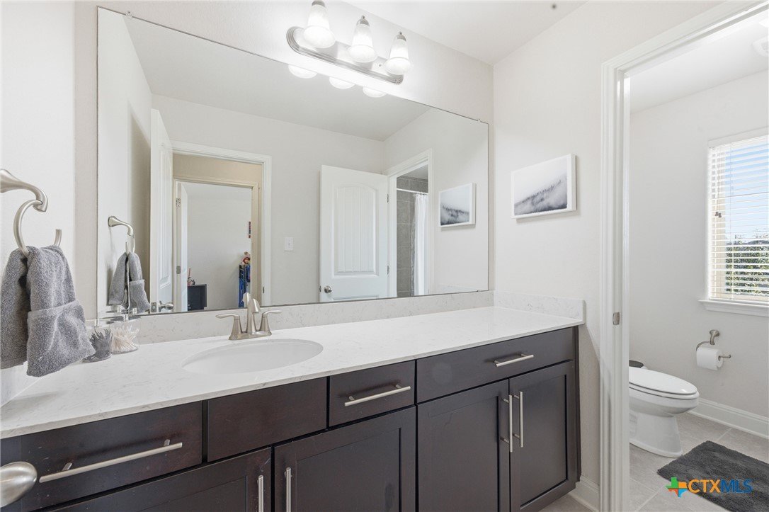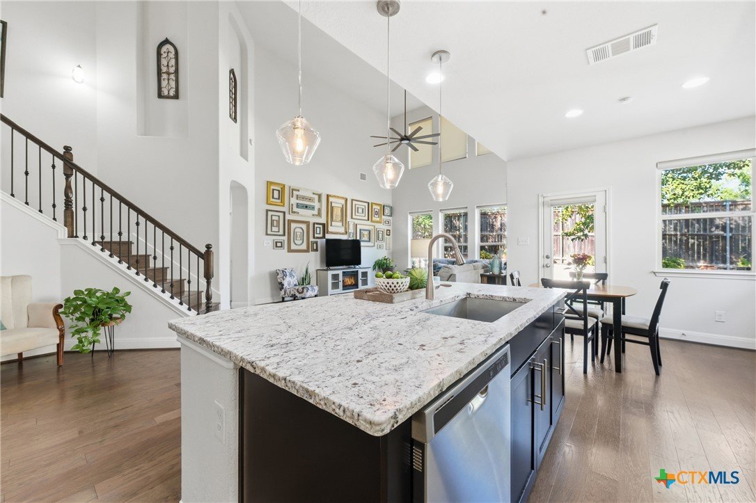 ASK AGENT ABOUT ASSUMABLE LOAN OPPORTUNITY WITH A 3.25% INTEREST RATE!! Located in the heart of San Antonio’s desirable gated community The Preserve Castle Hills, this stunning home combines modern comfort with timeless style. Step inside to a grand entry with soaring ceilings and natural light that fills the open floor plan. The thoughtfully designed layout places all your essentials on the first floor—including the spacious primary suite, private home office, and elegant formal dining room. The kitchen stands out with a large granite island offering extra seating, a striking tile backsplash, and a sunny eat-in area perfect for casual dining. Upstairs, a generous loft offers the ideal space for family game nights or movie marathons. The primary suite features a custom closet system, providing organization and luxury. Energy-efficient solar panels add value and sustainability, helping reduce monthly utility costs. Centrally located near major highways, shopping, and dining, this Castle Hills gem offers the best of San Antonio living!