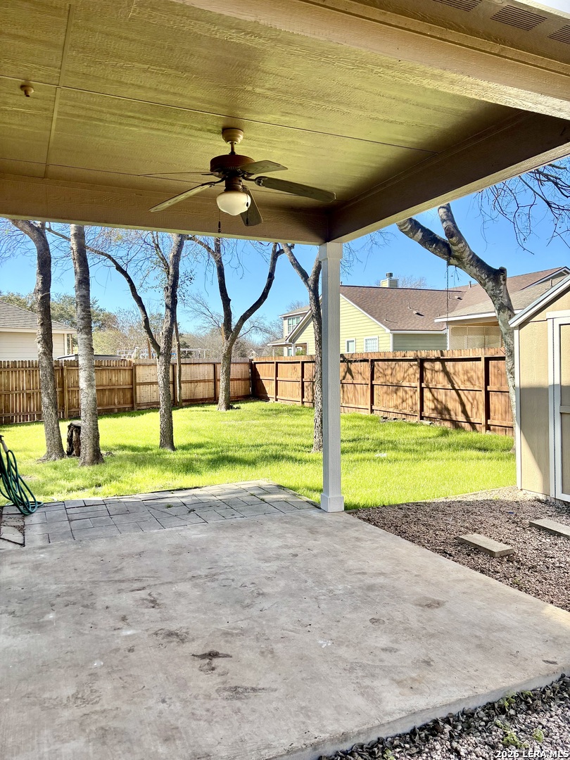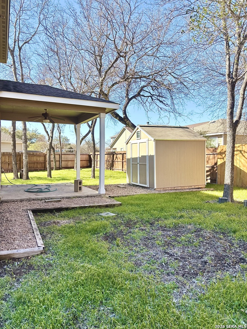 Welcome Home! This Beautiful and spacious 4-bedroom, 2-bath home located in the desirable Sable Range community! Featuring approximately 2,048 sq ft, this home offers an open floorplan with a bright living area, functional kitchen, and comfortable dining space perfect for everyday living and entertaining. The primary suite provides a relaxing retreat, while additional bedrooms offer flexibility for guests, office space, or growing households. Step outside to a beautiful backyard featuring mature trees, a small storage shed, and plenty of space for family gatherings, outdoor activities, or simply relaxing. Conveniently located near shopping, dining, schools, and major highways for easy commuting. A wonderful opportunity to own a well-designed home in a great San Antonio location!