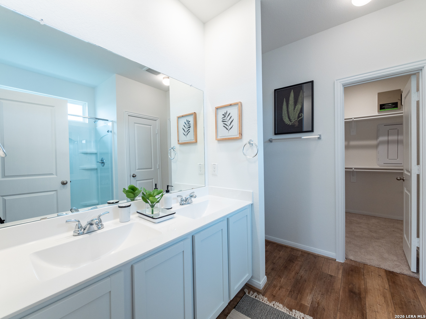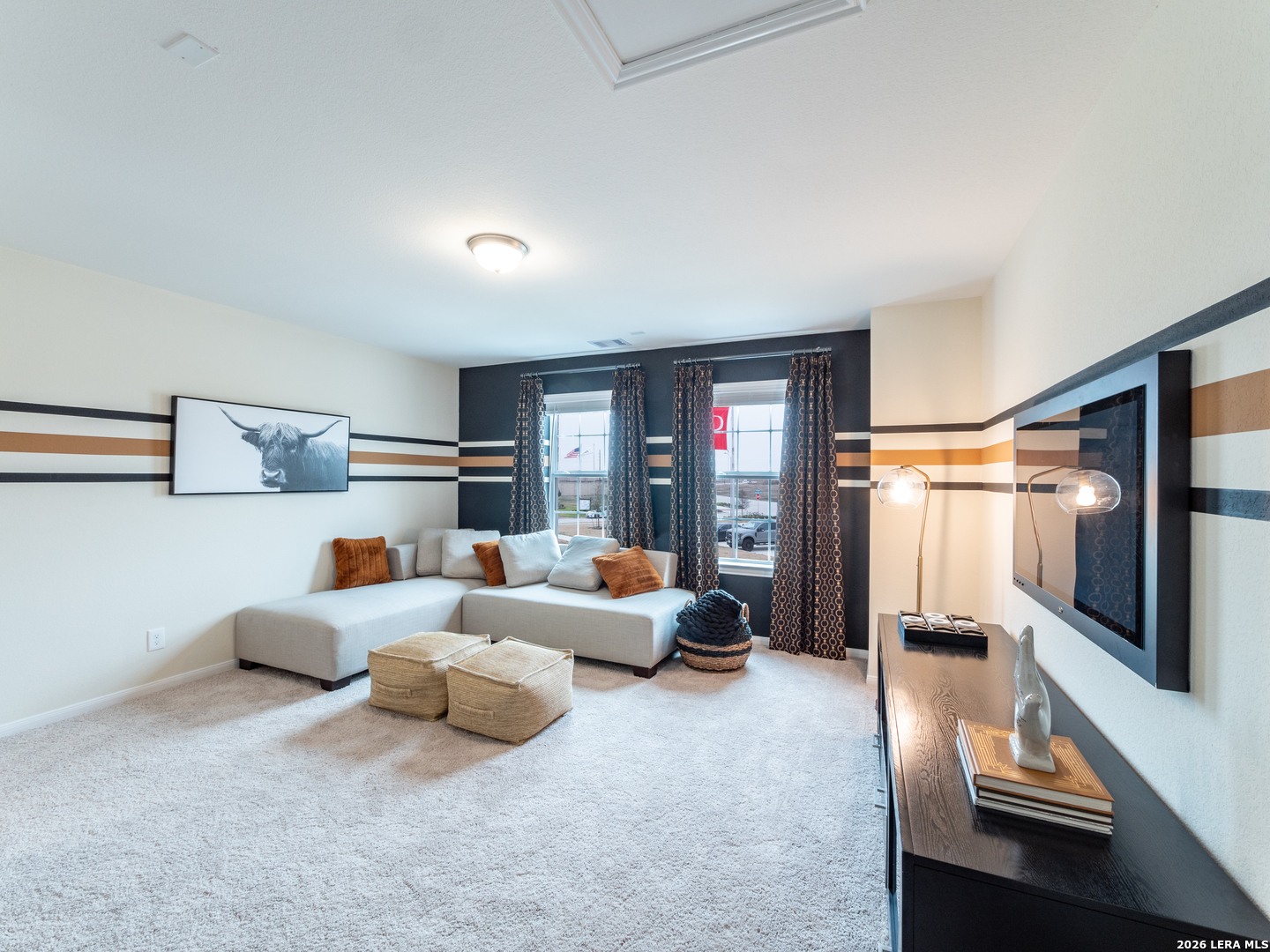 The delightful Ash floor plan is a sprawling, two-story design that is full of character. The exterior of the home is just as beautiful as the interior since the home will have a two-tone paint selection, and an exclusive landscaping package including shrubs, a caliper oak tree, and a yard that is fully sodded. Entering from your front porch, you are greeted by an elegant foyer with vinyl plank flooring that your two-car garage lies beside. Across the foyer is your convenient powder bathroom featuring a white pedestal sink and decorative mirror that flows right into your open-concept family room. The massive family room is perfect for entertaining guests and is boasting with ample amount of space. The smell of fresh cookies baking can be experienced from the family room, since the kitchen is opened up facing the living area. The expansive kitchen area is completed with granite countertops, beautiful flat-panel birch cabinets, designer light fixtures, and industry-leading appliances. You will love having the ability to install a kitchen island in the center of the kitchen, if you are needing more counter space. Speaking of more space, your oversized walk-in pantry will come in handy when you need to store all your food, spices, and dog treats. Integrating with your kitchen is your welcoming formal dining space with entry to your backyard in the corner of the room. Giving your backyard added value, you have the option of including a sizable covered patio! Adjacent to your formal dining room is the large Master Bedroom. Leading off the bedroom is your gorgeous master bathroom complete with cabinetry that matches your kitchen selections, cultured marble bath countertops, LED down lighting, and a super shower. Up the stairs, you will come across a large gameroom that is ideal for family game nights, as well as three additional bedrooms, and a secondary full bathroom. The Ash floor plan is sure to fit most any family lifestyle.