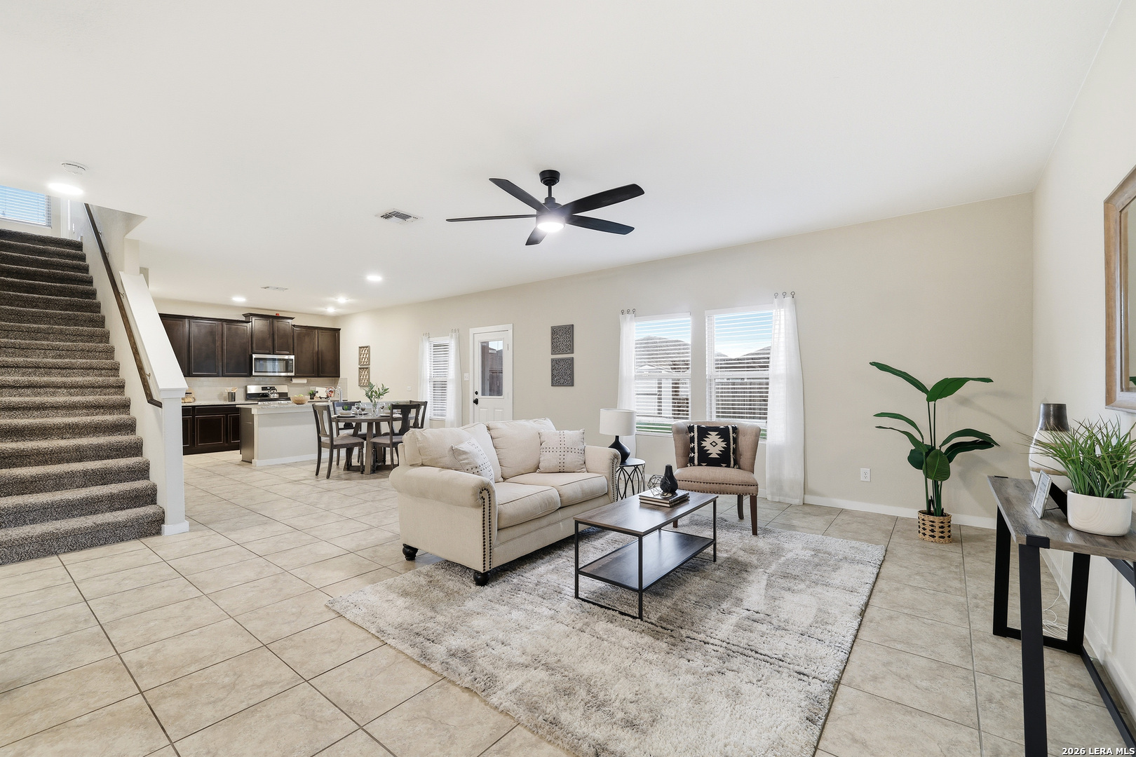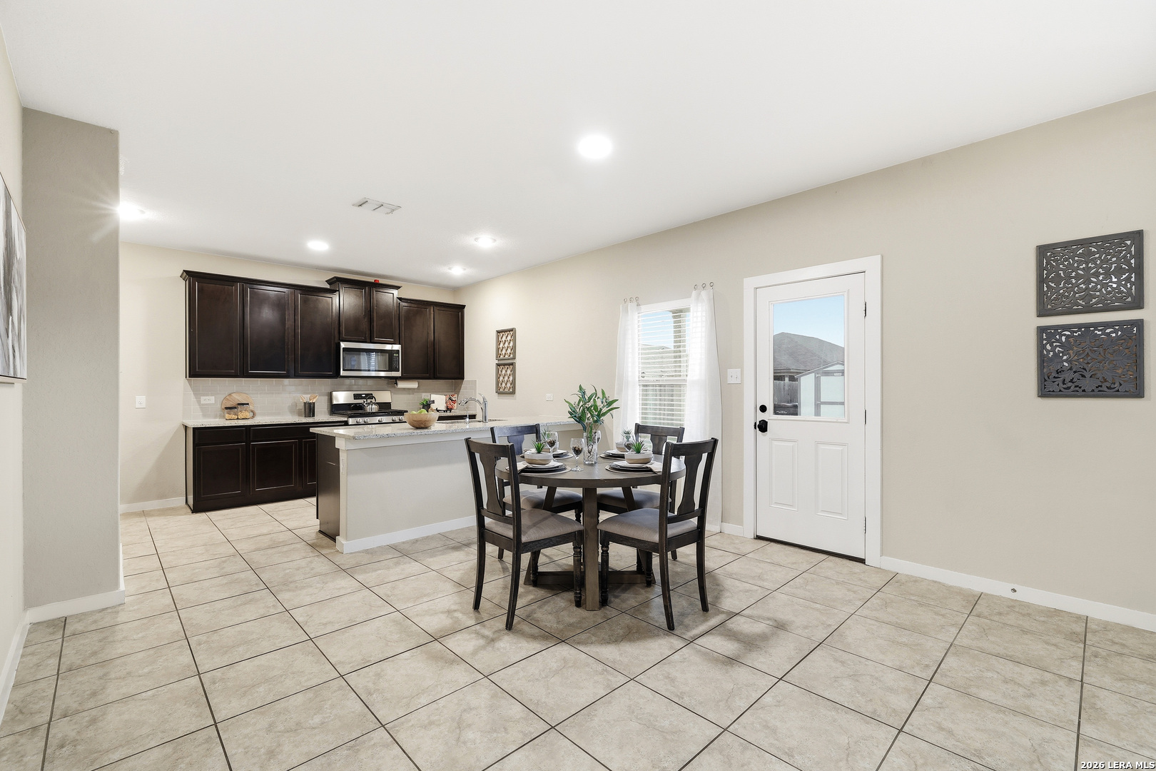 Welcome to 10734 Francisco Way, a beautifully designed home that offers a warm and inviting atmosphere with a layout that flows effortlessly for both everyday living and entertaining. The main level features a formal dining space perfect for gathering with family and friends, while the spacious living room opens seamlessly to the kitchen, creating a comfortable and connected setting. The kitchen is thoughtfully finished with 42-inch cabinetry, upgraded tile flooring, a stylish backsplash, and an additional dining area for casual meals. Upstairs, all bedrooms are tucked away for added privacy, along with a conveniently located laundry room that keeps daily routines out of sight from guests. The primary suite provides a relaxing retreat with a generously sized layout and a well-appointed bathroom featuring a walk-in shower, dual vanities, and a large walk-in closet. Step outside to a backyard designed for enjoyment, complete with a covered patio, a dedicated grilling area on a slab, and a well-maintained storage building, offering the perfect space to unwind or entertain.