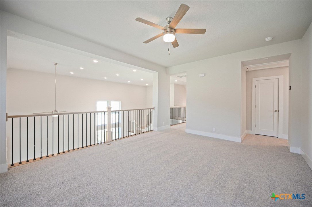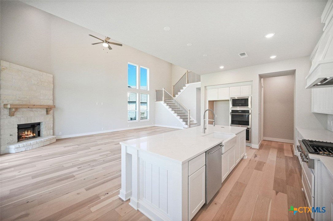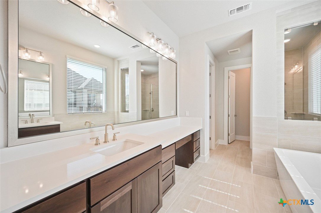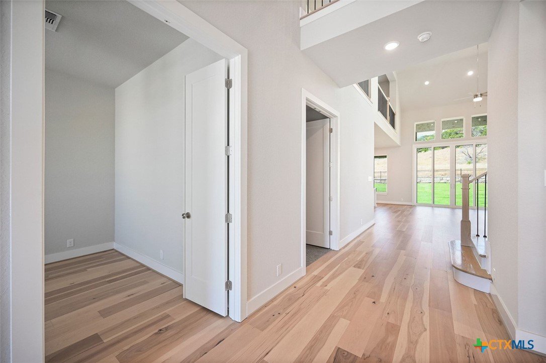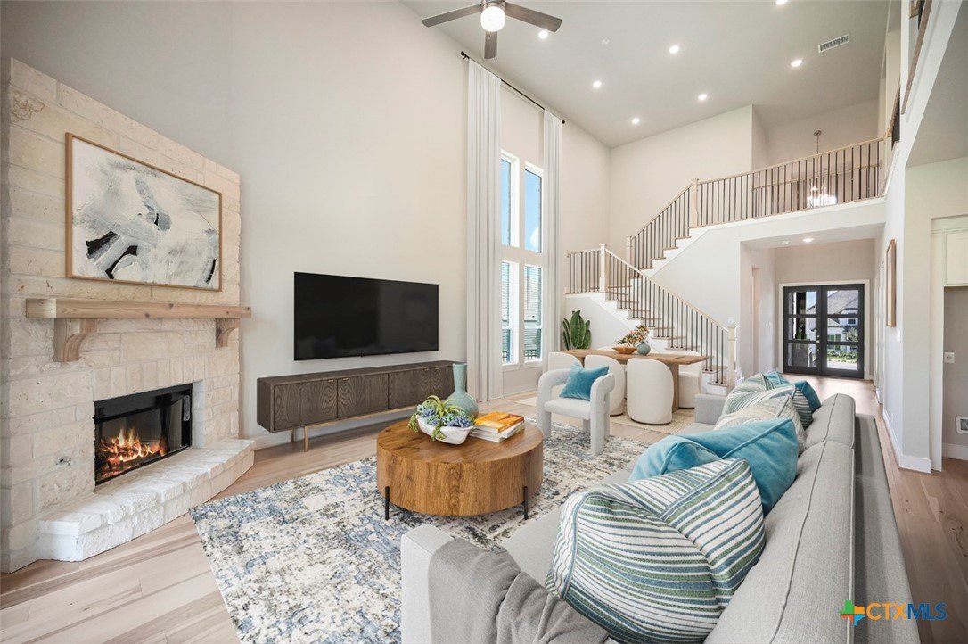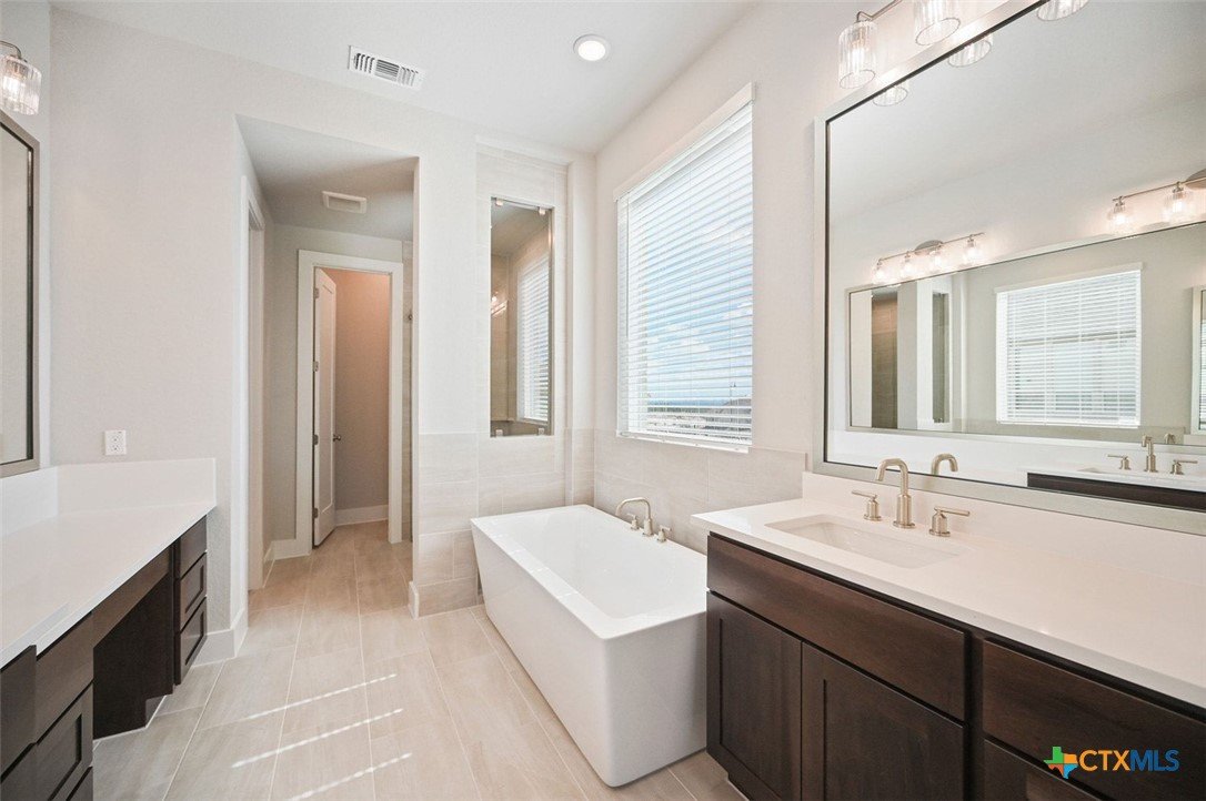 Open plan with 2 bedrooms/bath down, Study and Entertainment room. Soaring ceilings in family/dining. Backs to open space. Fireplace (at Family Room), Powder, Private Bath, Exterior Stone, Bedroom w/Bath, Exp Bedrooms w/Full Baths ilo Lifestyle, Sliding Glass Doors (at Patio), 16' Garage Door ilo (2) 8' Doors, Shower ilo Tub-Secondary - Dropped Pan, Freestanding Tub (67" rectangular)