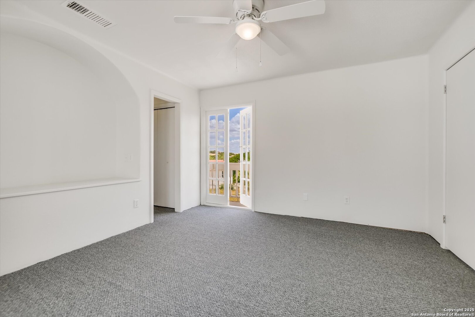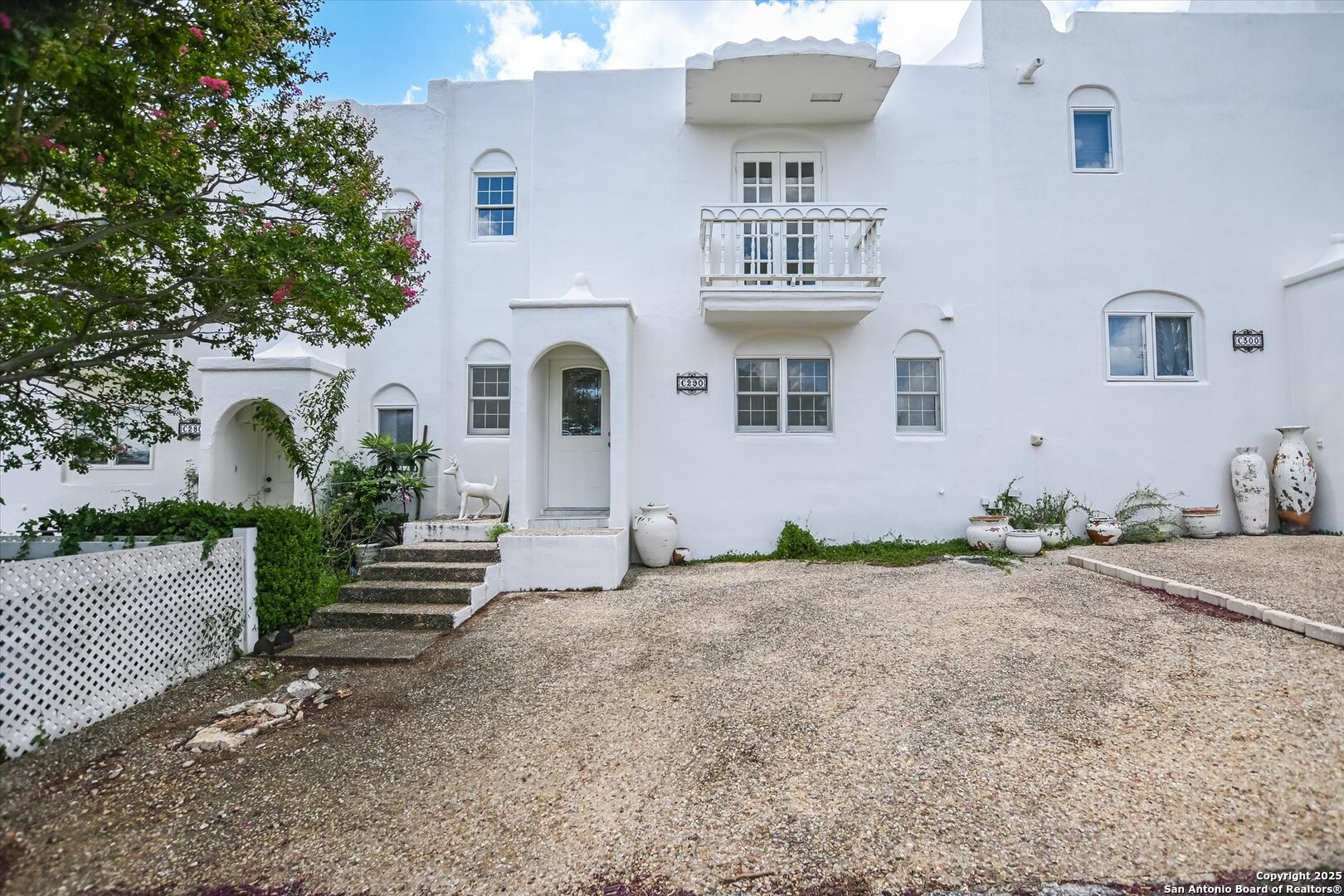 Tucked along the lush fairways of Ram Rock Golf Course, this 2-bedroom, 2.5 bath townhome in the distinctive Villas Albanas community delivers comfort, style and resort-style amenities. With dedicated parking spaces right out front and overflow parking for guests, it's easy to welcome friends and family. Residents also enjoy access to a community pool, ideal for relaxing after a day on the golf course. Step inside to discover fresh updates, including new vinyl flooring and carpet. The main level features a powder bath, a well-equipped kitchen with stove, microwave, and dishwasher, plus a laundry room with space for a washer and dryer. The dining area flows seamlessly into the sunken living room, complete with a decorative niche, cozy fireplace, and patio access for enjoying the outdoors. A domed-ceiling bedroom on this level offers a private en-suite bath, creating a comfortable guest or owner's suite. Upstairs, the second bedroom boasts a Juliette balcony, a private patio with lush golf course views, and its own en-suite bath. Whether sipping morning coffee while overlooking the greens or cooling off in the community pool, this home is made for relaxation. Perfect for full-time living or a lock-and-leave getaway, this townhome offers the ideal Horseshoe Bay lifestyle-golf, leisure, and comfort all in one.