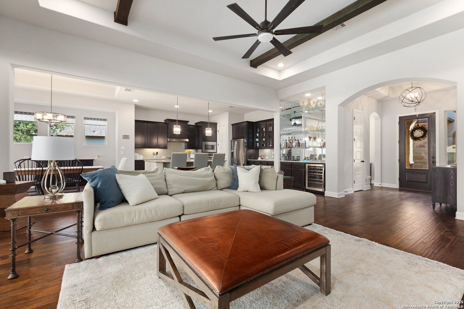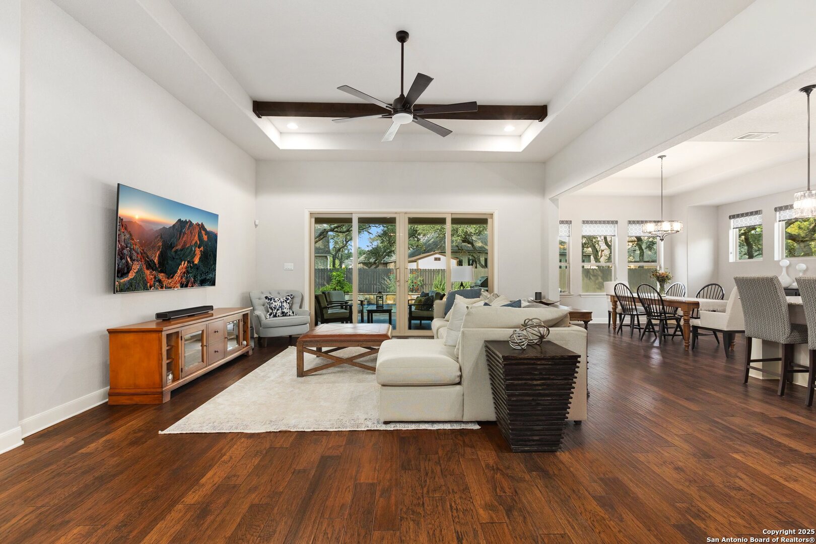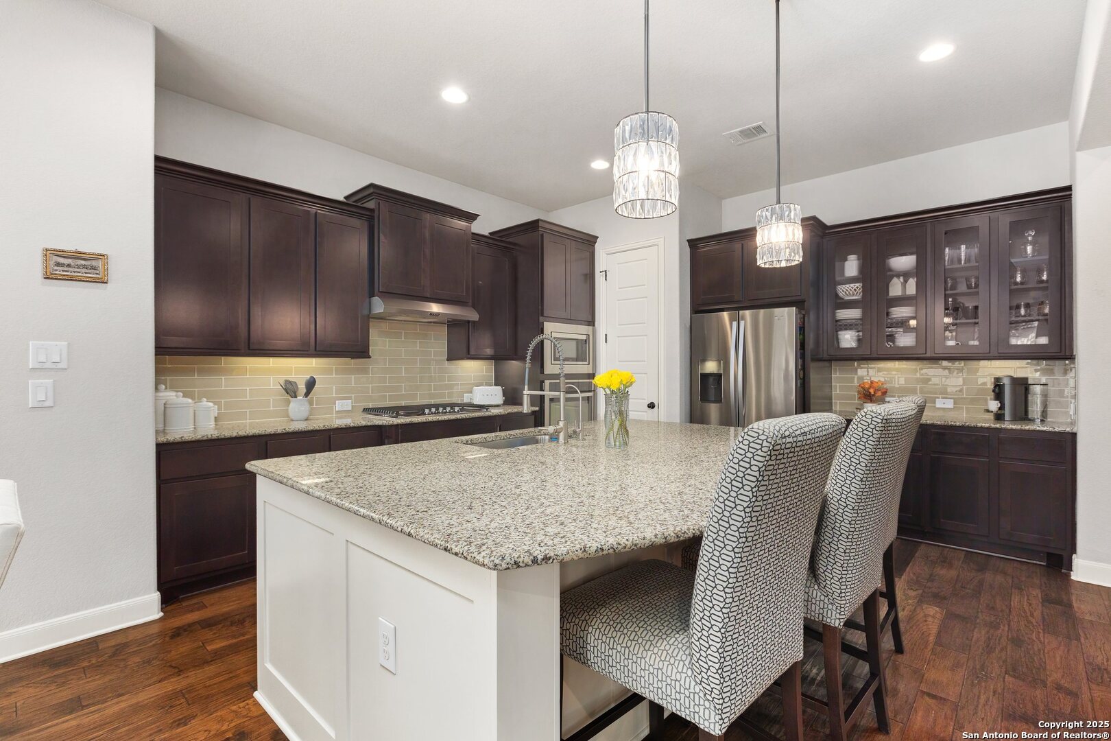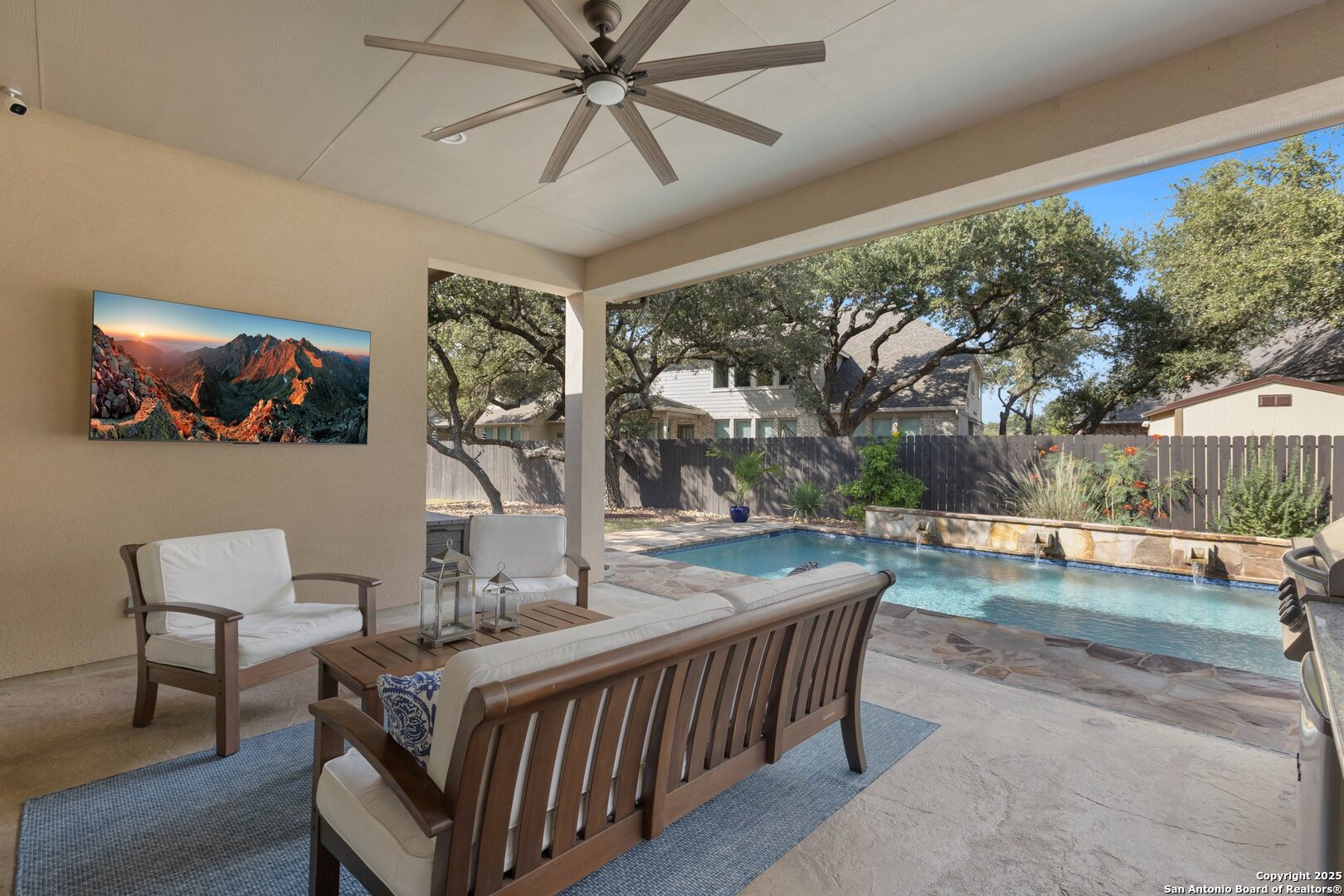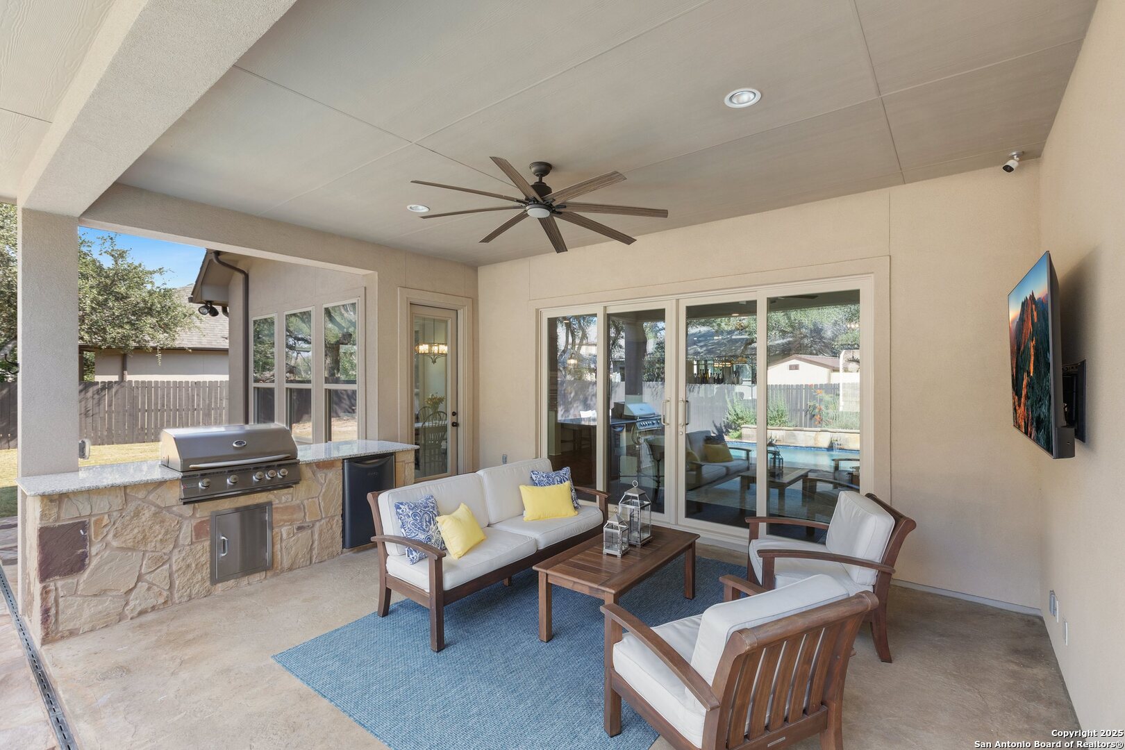 Welcome to this beautifully maintained single-story home in Boerne, TX! This 4-bedroom, 3-bathroom gem offers effortless living with exceptional outdoor amenities. Step outside to your private backyard oasis featuring a sparkling Keith Zars pool, complete with an outdoor kitchen perfect for entertaining. Multiple sitting areas throughout the professionally landscaped yard provide ideal spots to relax under the shade of mature oak trees. A charming corner sitting area adds to the outdoor appeal, while a convenient storage shed offers extra space for all your needs. Inside, you'll appreciate the thoughtful upgrades including custom California Closets built-in desk and storage cabinets, epoxy-coated garage floors with overhead storage, two 220V/EV chargers in the garage, and an Alamo Water Systems water softener for comfort and convenience. The front of the home welcomes you with a gated private courtyard-a charming space perfect for morning coffee or evening relaxation. The professional landscaping creates wonderful curb appeal and a welcoming first impression. This easy-to-maintain home is nestled in a friendly neighborhood with wonderful neighbors. It's truly a special property that's ready for you to create your own memories. Don't miss this opportunity to own a home that combines comfort, style, and effortless living!