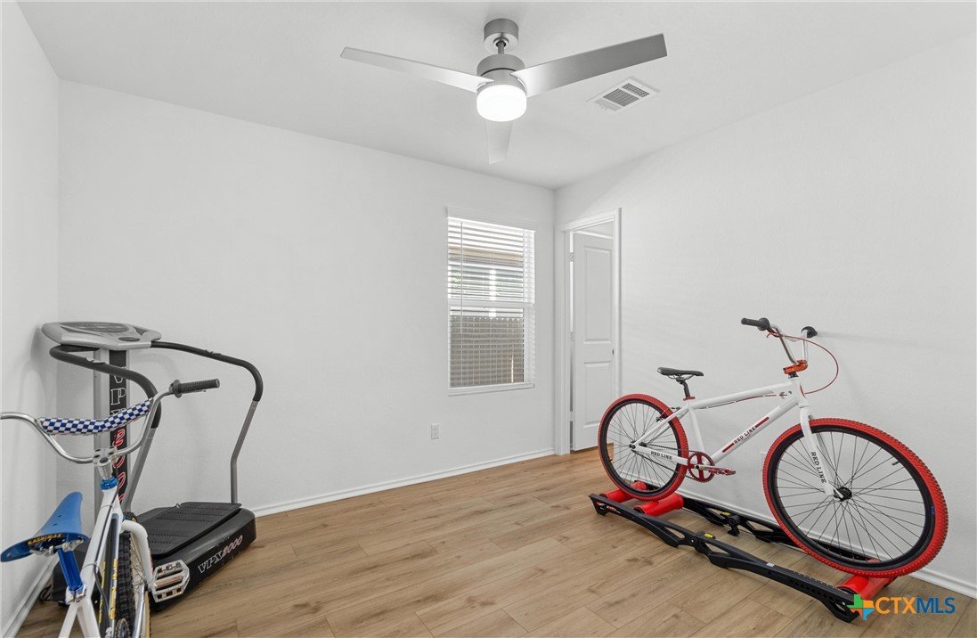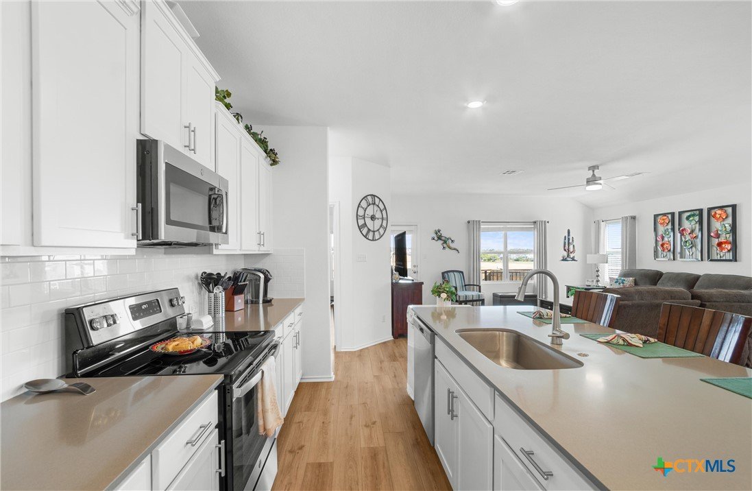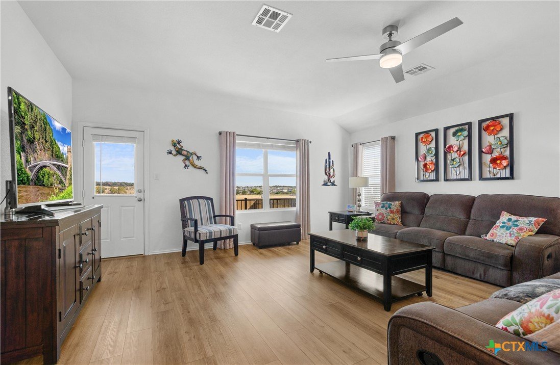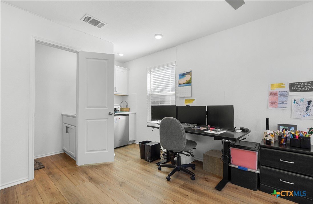 Boasting it's location among streets named after Clint Eastwood movies, this immaculately maintained 1,918 sq. ft. home—featuring an assumable loan at only 4.62 for qualified buyers—plus a rare private office/flex suite with its own entrance, half bath amd mini fridge/kitchen area. Smart-updated throughout with fiber optic internet (direct to home), dual routers, owned security system, owned water softener, keyless entry, and MOEN wireless water monitor. Interior upgrades include a new walk-in shower, upgraded sink and hardware, granite laundry cabinetry, stainless steel appliances, and ceiling fans in all bedrooms. Exterior features offer a 3-year-old roof, fully finished garage with 220V EV power, and a beautifully stained privacy fence. This elegant home is enriched with no backyard neighbors for added privacy and tranquility. HOA has minimal restrictions but great amenities such as the community pool and park. This is a move-in-ready home blending quality, efficiency, and versatility!