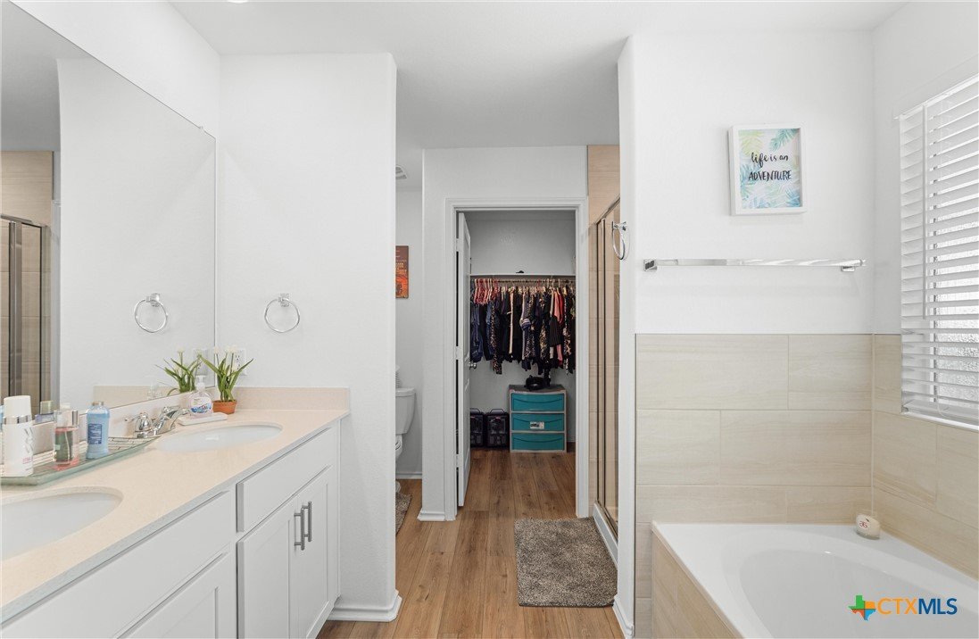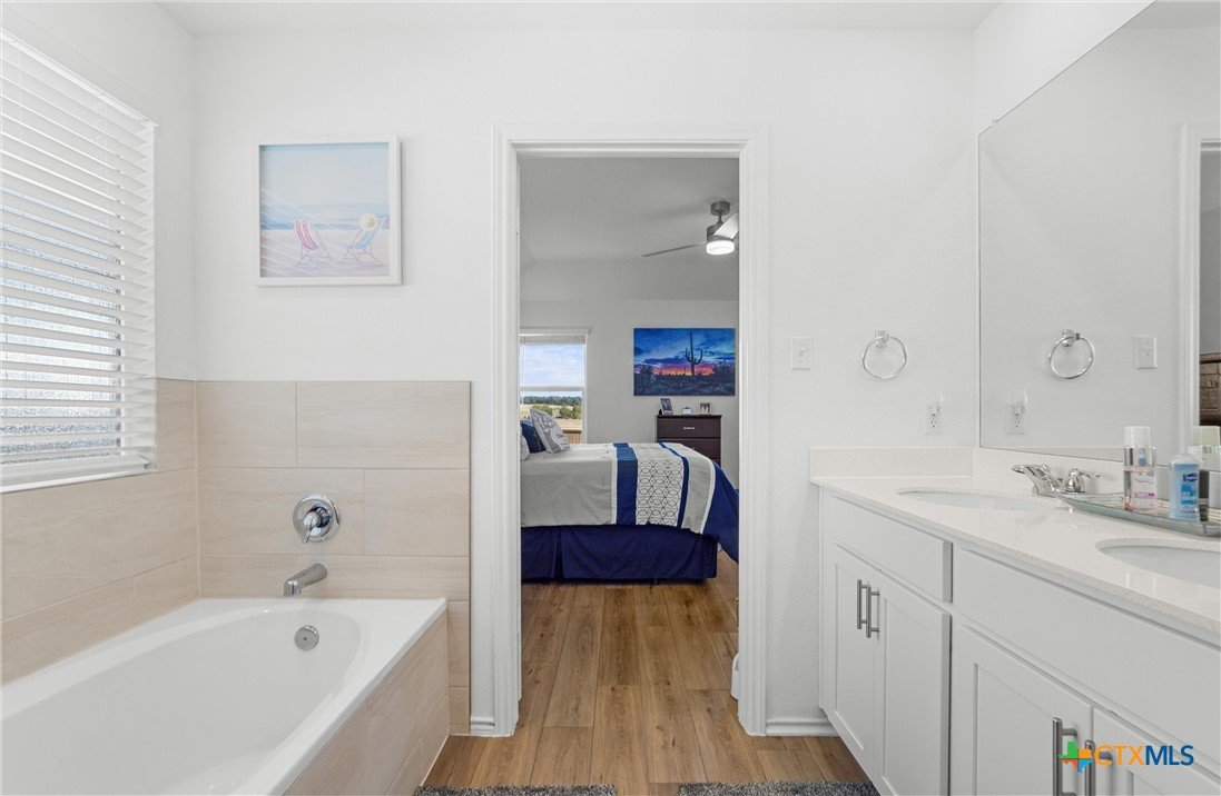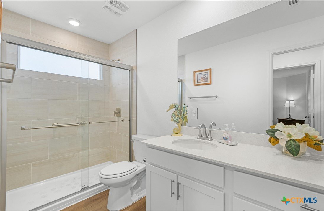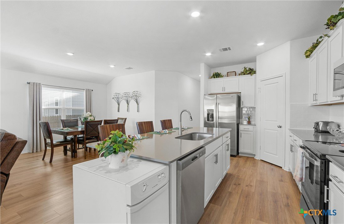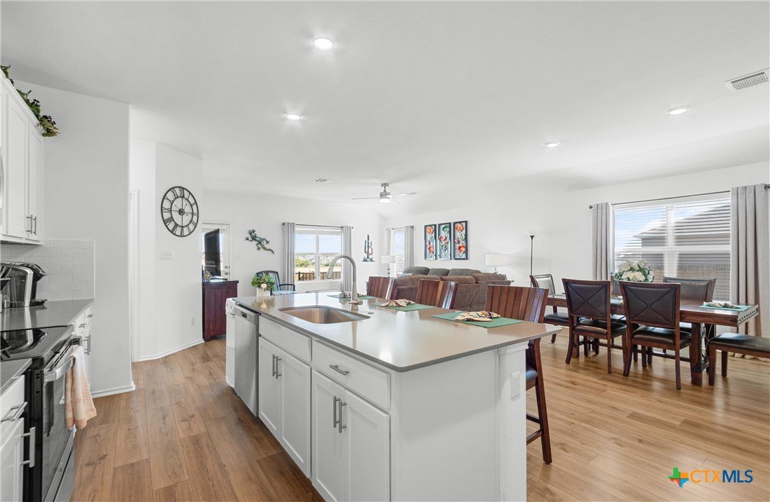 Boasting it's location among streets named after Clint Eastwood movies, this immaculately maintained 1,918 sq. ft. home—featuring an assumable loan at only 4.62 for qualified buyers—plus a rare private office/flex suite with its own entrance, half bath amd mini fridge/kitchen area. Smart-updated throughout with fiber optic internet (direct to home), dual routers, owned security system, owned water softener, keyless entry, and MOEN wireless water monitor. Interior upgrades include a new walk-in shower, upgraded sink and hardware, granite laundry cabinetry, stainless steel appliances, and ceiling fans in all bedrooms. Exterior features offer a 3-year-old roof, fully finished garage with 220V EV power, and a beautifully stained privacy fence. This elegant home is enriched with no backyard neighbors for added privacy and tranquility. HOA has minimal restrictions but great amenities such as the community pool and park. This is a move-in-ready home blending quality, efficiency, and versatility!