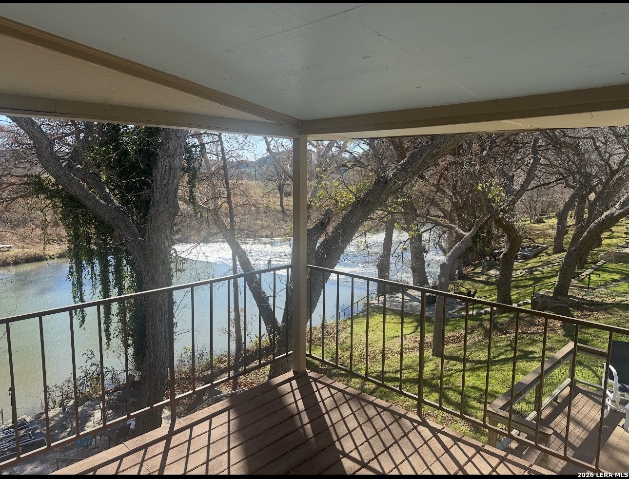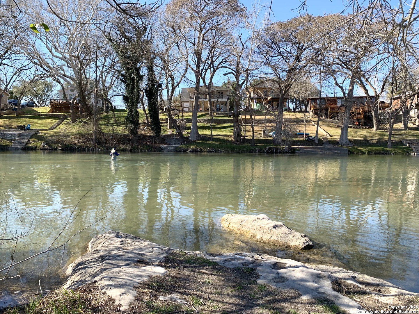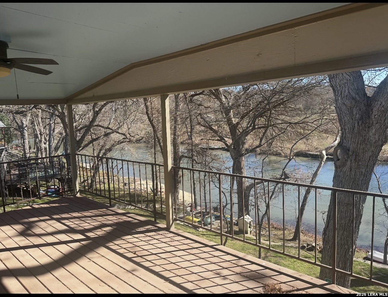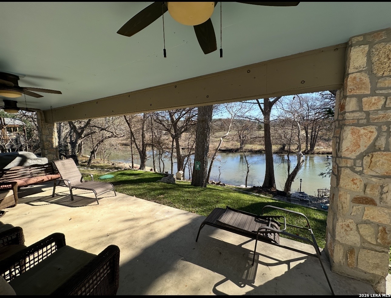 Here Is Your Riverfront Dream Home Escape! Nestled along 56 feet of pristine Guadalupe River frontage, this fully furnished and turnkey Airbnb is the ultimate getaway! This charming 4-bedroom, 3 bath home comfortably sleeps up to 10 guests and is designed for relaxation and fun. ***Inside the Home *** Main Floor: A fully equipped kitchen with a breakfast bar (seating for 3) and a dining table (seating for 6) ensures you'll have all the comforts of home. Family room has a fireplace and double door access to covered porch. The extra large primary bedroom, located on the second floor, boasts a king bed with a grand covered porch with river views, and an ensuite bathroom along with a fireplace and huge walk in closet. Two additional bedrooms upstairs include: Bedroom 2: Two twin beds and one single bed. Bedroom 3: King bed. Downstairs Bedroom 4: Queen bed with a guest bathroom down hall and has wheel chair access to it downstairs. ***Outdoor Highlights*** Two huge covered patios are perfect for enjoying stunning river views. The fairy-tale backyard, shaded by mature pecan and cypress trees, offers ample space for family and friends. A concrete pad by the river's edge, with seating and a fire pit, makes riverside gatherings unforgettable. Small dam 100' down river with 1-3' constant water level year round. Large ranch on other side of river provides added privacy. Direct river access that is next to the floating drop off, making it fantastic for trout fishing that is stocked yearly. Tons of wildlife are always visible to enjoy watching. A tube rental company that is right down the street ensure endless water adventures. If that's not enough, there is a huge detached 3 car garage that can store all your water toys. Location, Location, Location! Situated at the 4th crossing of River Road, this home is: 2 miles from Whitewater Amphitheater 17 miles from historic Gruene, downtown New Braunfels, and Schlitterbahn Water Park 19 miles from the San Marcos Outlet Malls 46 miles from San Antonio attractions, including the Alamo and River Walk 54 miles from Austin, the state capital Whether you're seeking a serene riverside retreat or an action-packed vacation, this property offers it all. Schedule your showing today to experience this enchanting riverfront home!