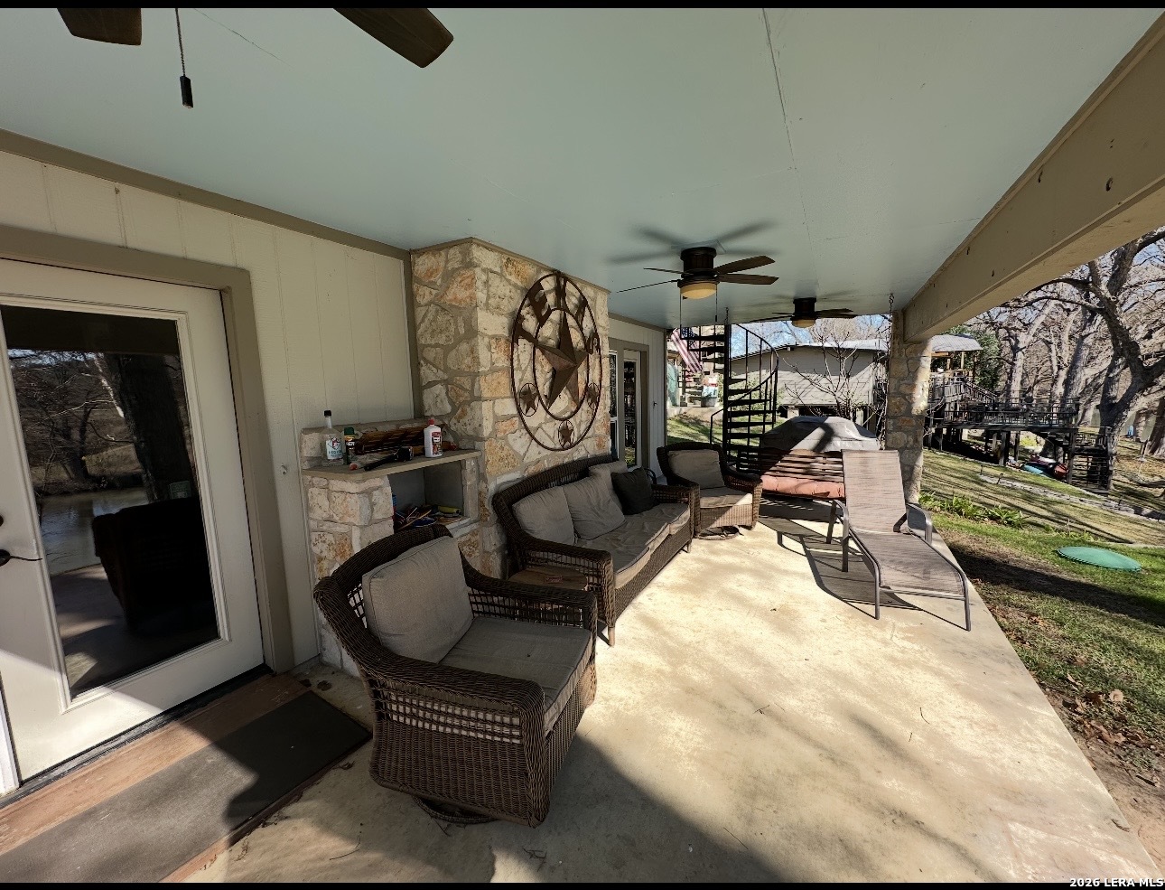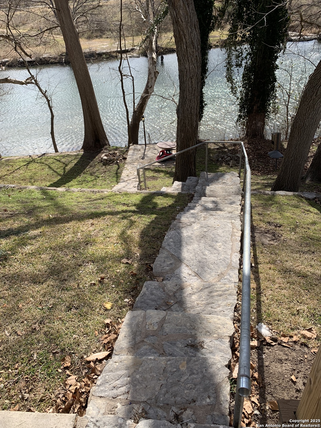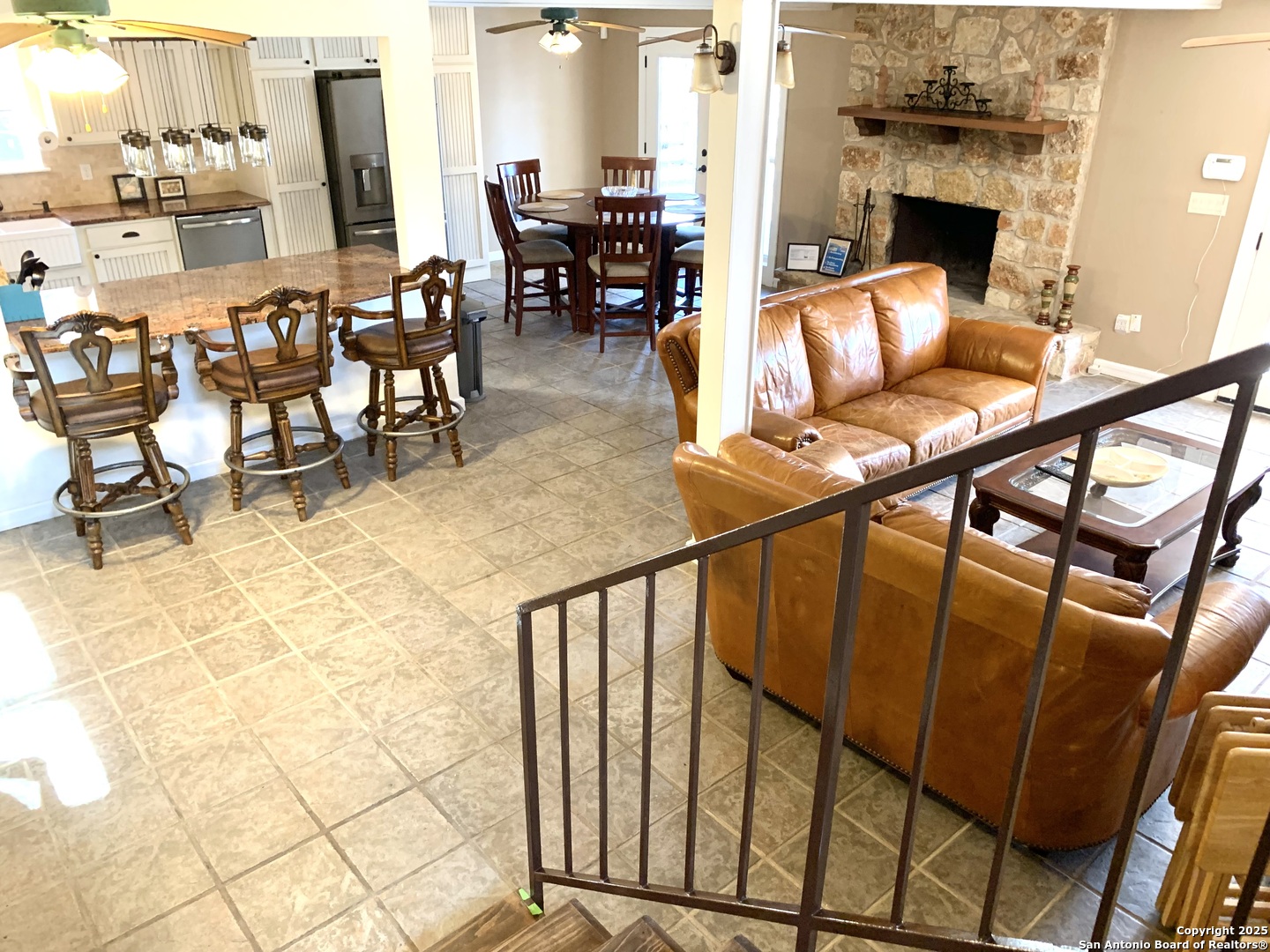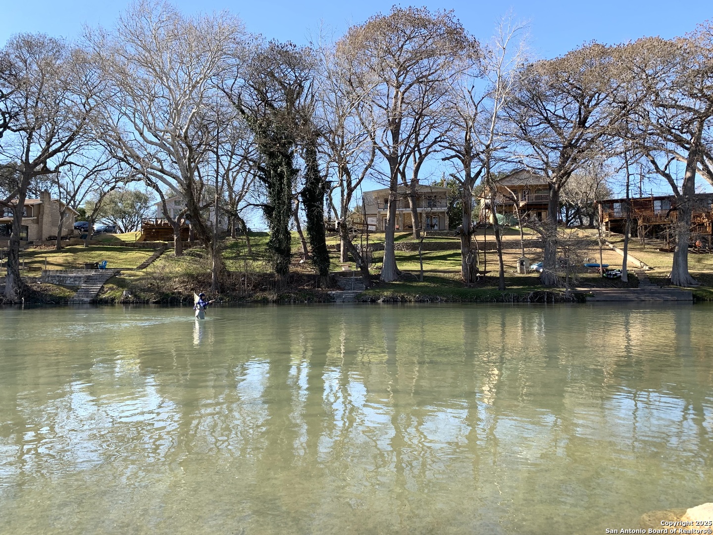 Here Is Your Riverfront Dream Home Escape! Nestled along 56 feet of pristine Guadalupe River frontage, this fully furnished and turnkey Airbnb is the ultimate getaway! This charming 4-bedroom, 3 bath home comfortably sleeps up to 10 guests and is designed for relaxation and fun. ***Inside the Home *** Main Floor: A fully equipped kitchen with a breakfast bar (seating for 3) and a dining table (seating for 6) ensures you'll have all the comforts of home. Family room has a fireplace and double door access to covered porch. The extra large primary bedroom, located on the second floor, boasts a king bed with a grand covered porch with river views, and an ensuite bathroom along with a fireplace and huge walk in closet. Two additional bedrooms upstairs include: Bedroom 2: Two twin beds and one single bed. Bedroom 3: King bed. Downstairs Bedroom 4: Queen bed with a guest bathroom down hall and has wheel chair access to it downstairs. ***Outdoor Highlights*** Two huge covered patios are perfect for enjoying stunning river views. The fairy-tale backyard, shaded by mature pecan and cypress trees, offers ample space for family and friends. A concrete pad by the river's edge, with seating and a fire pit, makes riverside gatherings unforgettable. Small dam 100' down river with 1-3' constant water level year round. Large ranch on other side of river provides added privacy. Direct river access that is next to the floating drop off, making it fantastic for trout fishing that is stocked yearly. Tons of wildlife are always visible to enjoy watching. A tube rental company that is right down the street ensure endless water adventures. If that's not enough, there is a huge detached 3 car garage that can store all your water toys. Location, Location, Location! Situated at the 4th crossing of River Road, this home is: 2 miles from Whitewater Amphitheater 17 miles from historic Gruene, downtown New Braunfels, and Schlitterbahn Water Park 19 miles from the San Marcos Outlet Malls 46 miles from San Antonio attractions, including the Alamo and River Walk 54 miles from Austin, the state capital Whether you're seeking a serene riverside retreat or an action-packed vacation, this property offers it all. Schedule your showing today to experience this enchanting riverfront home!