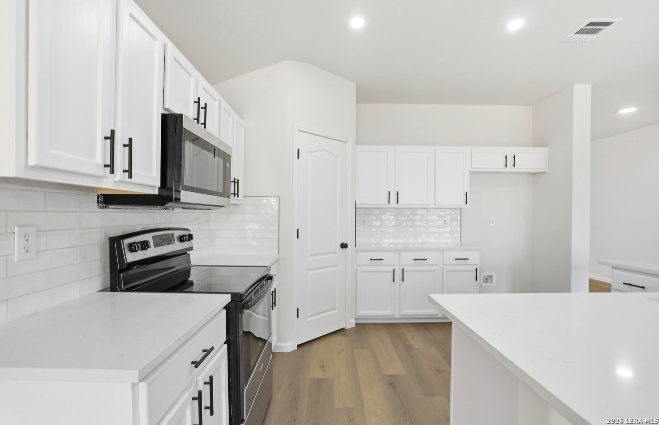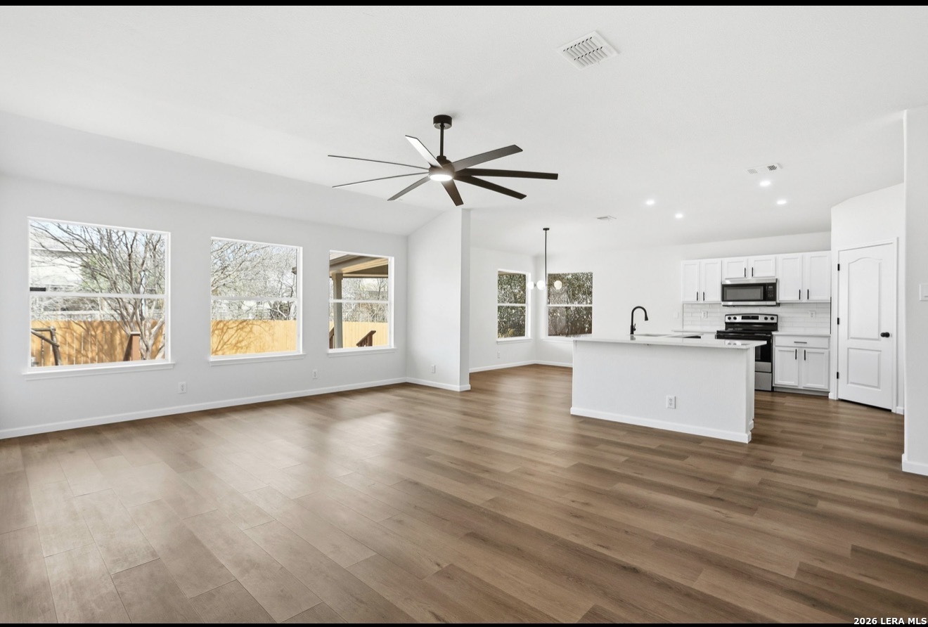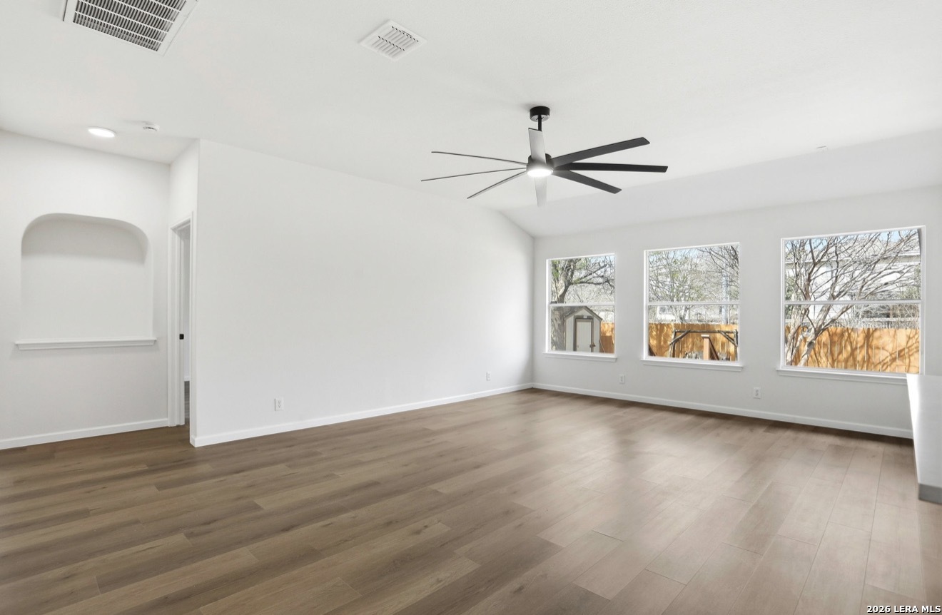 Welcome to this charming spacious renovated home that offers an open floor plan with an office/study big enough to be used for an additional bedroom if desired. This property features a formal dining area with an updated kitchen to include new quartz countertops an eat in kitchen nook making this great for entertaining.The main living area is designed for comfort featuring luxury vinyl plank flooring throughout the main areas of the home. The master retreat offers a peaceful escape with a dual quartz vanity a frameless shower glass and garden tub bath with a large walk-in closet, while two additional bedrooms provide flexibility for family/guest needs. Outside you will find a nice covered patio with mature trees on a greenbelt. This property is conveniently located near Loop 1604 minuets away from shopping schools and entertainment. Come tour this beauty today