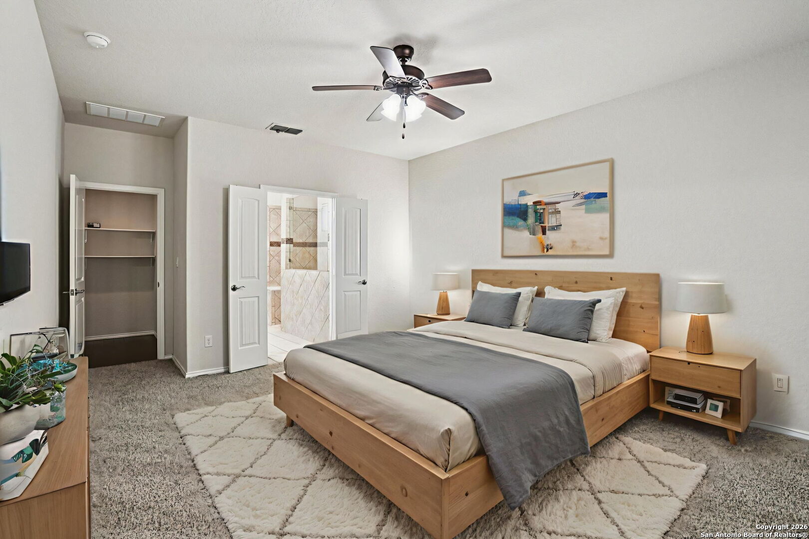 This well-appointed two-story home features 5 spacious bedrooms and 4 full bathrooms, offering a flexible layout designed to suit a variety of lifestyles. The open-concept floorplan connects the living, dining, and kitchen areas, creating a seamless space ideal for everyday living and entertaining. With two bedrooms conveniently located on the main level, including the primary suite, the layout offers both accessibility and privacy. A flex room just off the living area provides endless possibilities, ideal for a home office, lounge, or creative space. Upstairs, a generous loft adds even more room to work, relax, or play. Situated in a community known for its well-maintained park, playground, and scenic jogging trails, this home combines comfort with access to outdoor amenities.