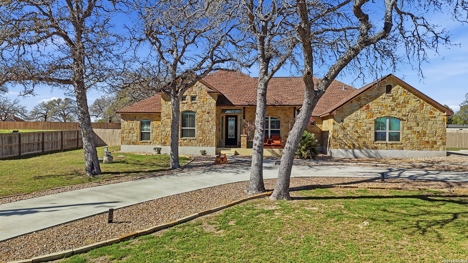 Step into the home you've been waiting for. This home offers a single story 4 bedroom 2 and a half bath with open layout perfect for family gatherings. From the unique wagon-wheel ceiling in the kitchen to lounging by the pool on warm summer days or gathering around the outdoor fireplace on cool evenings, this property offers comfort in every season. The home has a beautiful covered patio which makes a great space for entertaining and also includes a second wood burning fireplace. Inside, you'll find impressive 12-foot ceilings, a spacious kitchen with custom cabinetry and a large pantry, and a relaxing primary suite complete with a jacuzzi tub. The beautifully landscaped front yard and expansive backyard create the perfect setting for unwinding at home. Sits on a large 1.09 acre lot and offers privacy and a beautiful circular driveway. This is a property you truly need to see in person-once you do, you'll understand why it won't be on the market long.
