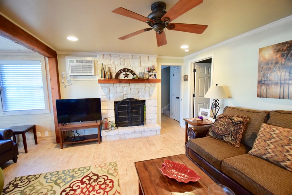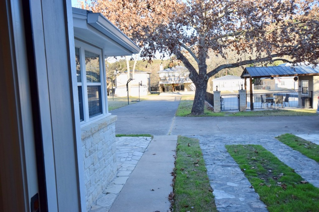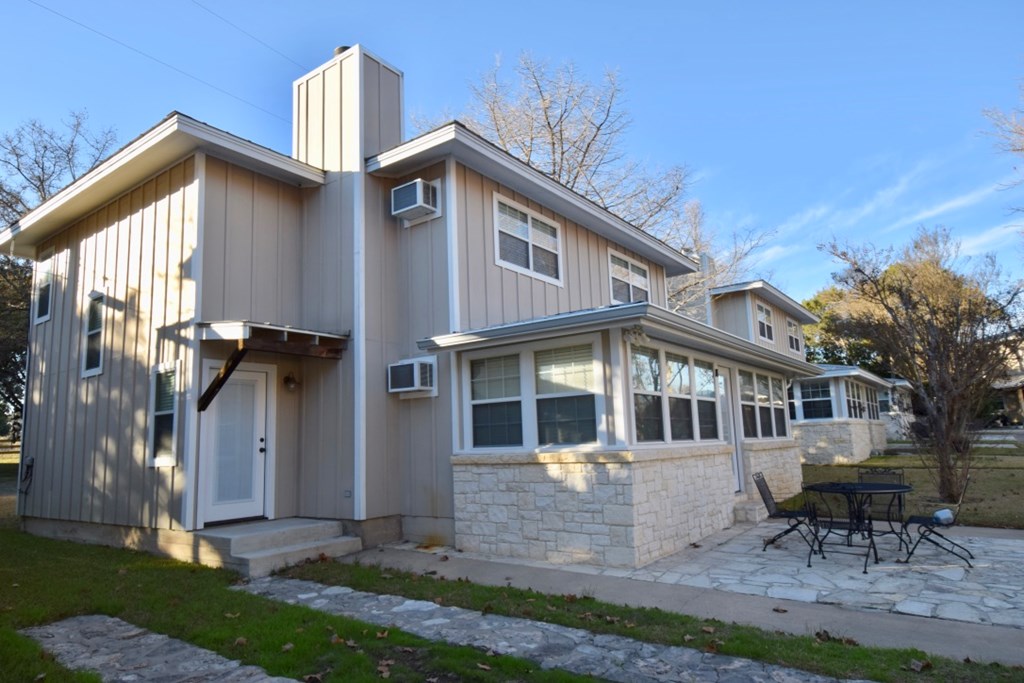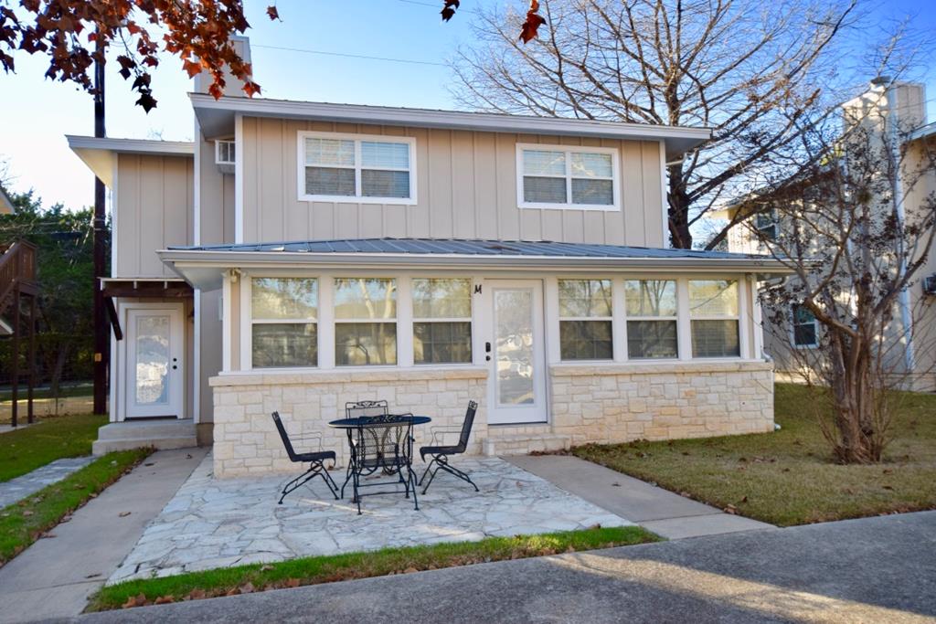 Charming two-story cottage in the gated community of Casa Bonita has 3 bedrooms, 2 baths, and two living areas. Guadalupe riverfront and all its amenities make it a perfect place to enjoy life in the Hill Country. Common areas include beautifully maintained grounds with mature shade trees, outdoor pavilions, BBQ area, swimming pool, and play areas which include basketball and volleyball. House was remodeled in 2013-2014. It has five separate wall/window units for AC/HEAT making it easy to control temperatures in each area. Whether you choose to make it your full-time home or a vacation getaway it is a wonderful place to relax and enjoy with family and friends. Each cottage owns an undivided interest in the common area and is part of the Casa Bonita HOA. Onsite manager and community laundry. Most furnishings will convey.