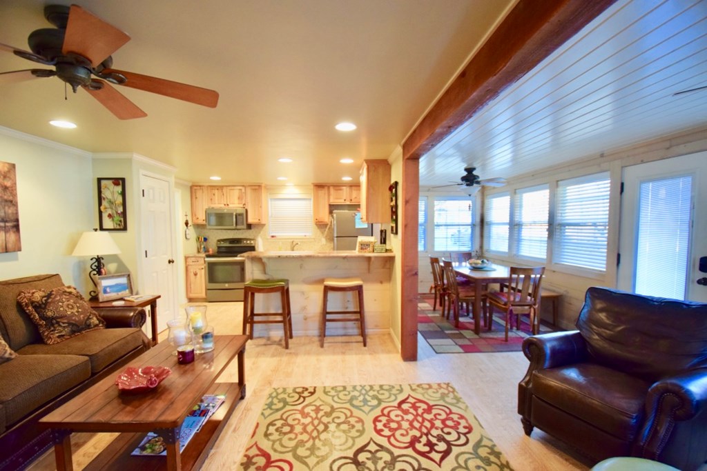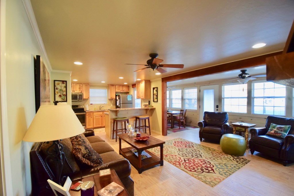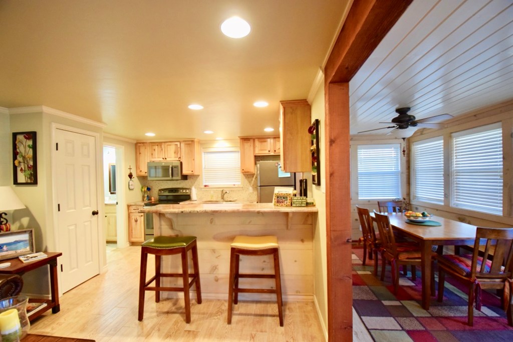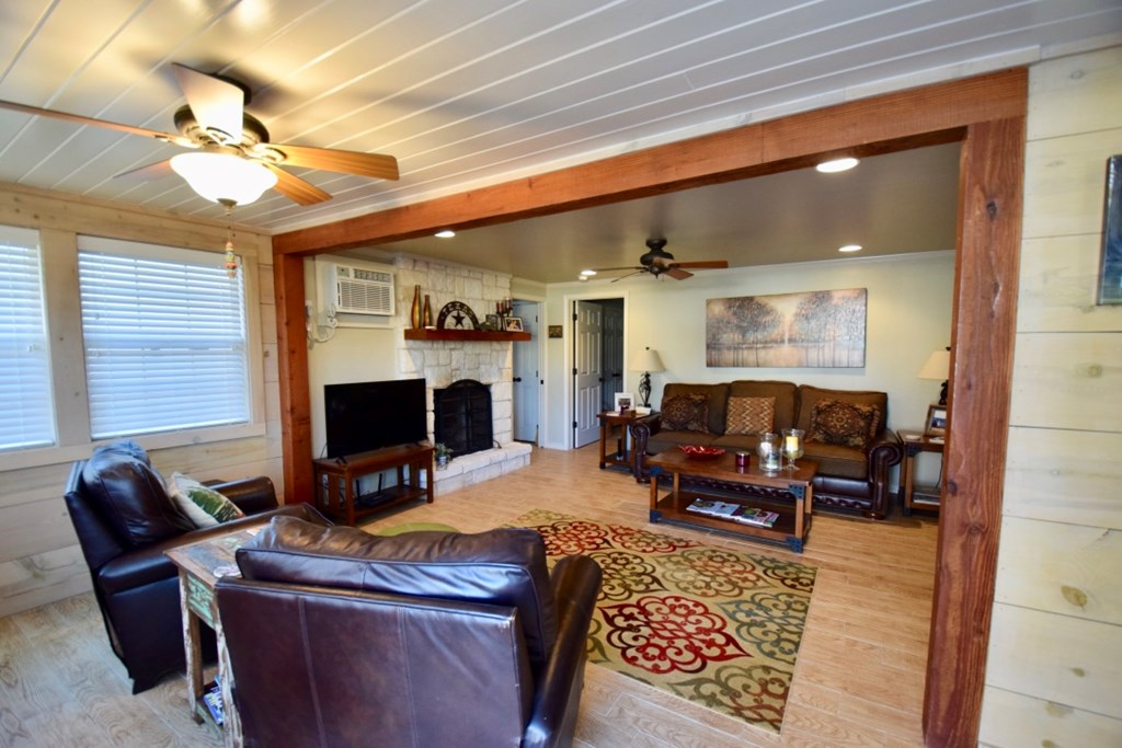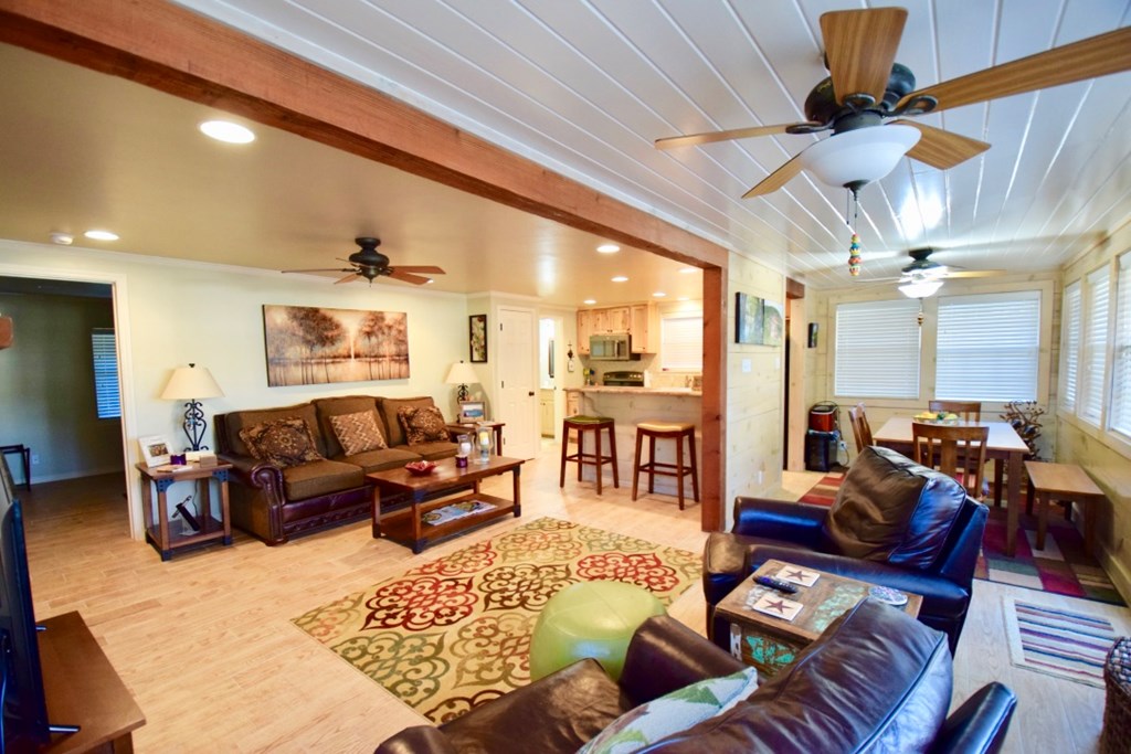 Charming two-story cottage in the gated community of Casa Bonita has 3 bedrooms, 2 baths, and two living areas. Guadalupe riverfront and all its amenities make it a perfect place to enjoy life in the Hill Country. Common areas include beautifully maintained grounds with mature shade trees, outdoor pavilions, BBQ area, swimming pool, and play areas which include basketball and volleyball. House was remodeled in 2013-2014. It has five separate wall/window units for AC/HEAT making it easy to control temperatures in each area. Whether you choose to make it your full-time home or a vacation getaway it is a wonderful place to relax and enjoy with family and friends. Each cottage owns an undivided interest in the common area and is part of the Casa Bonita HOA. Onsite manager and community laundry. Most furnishings will convey.