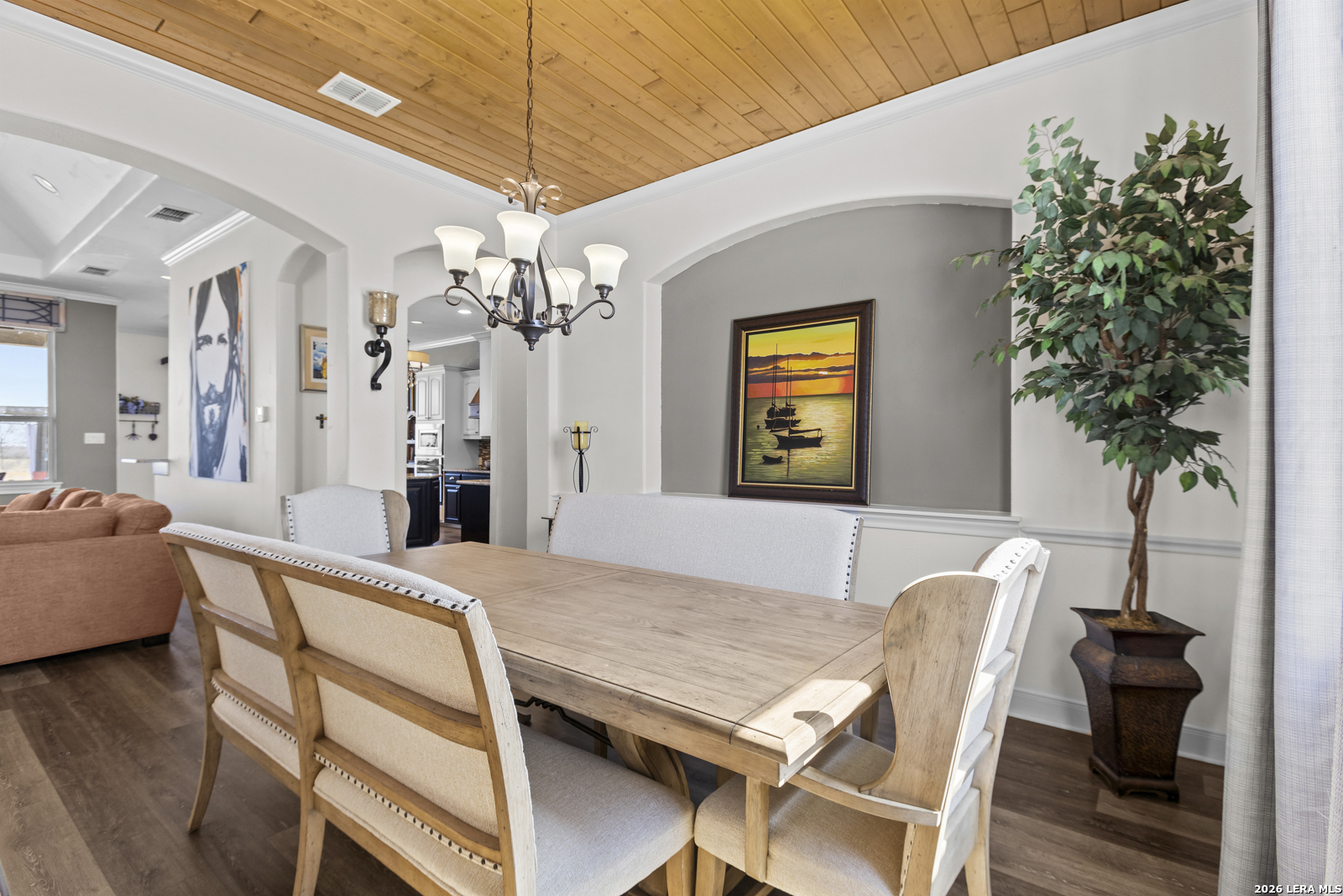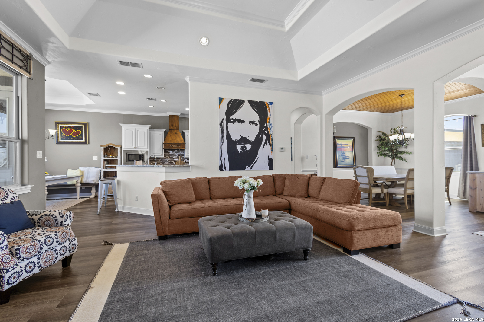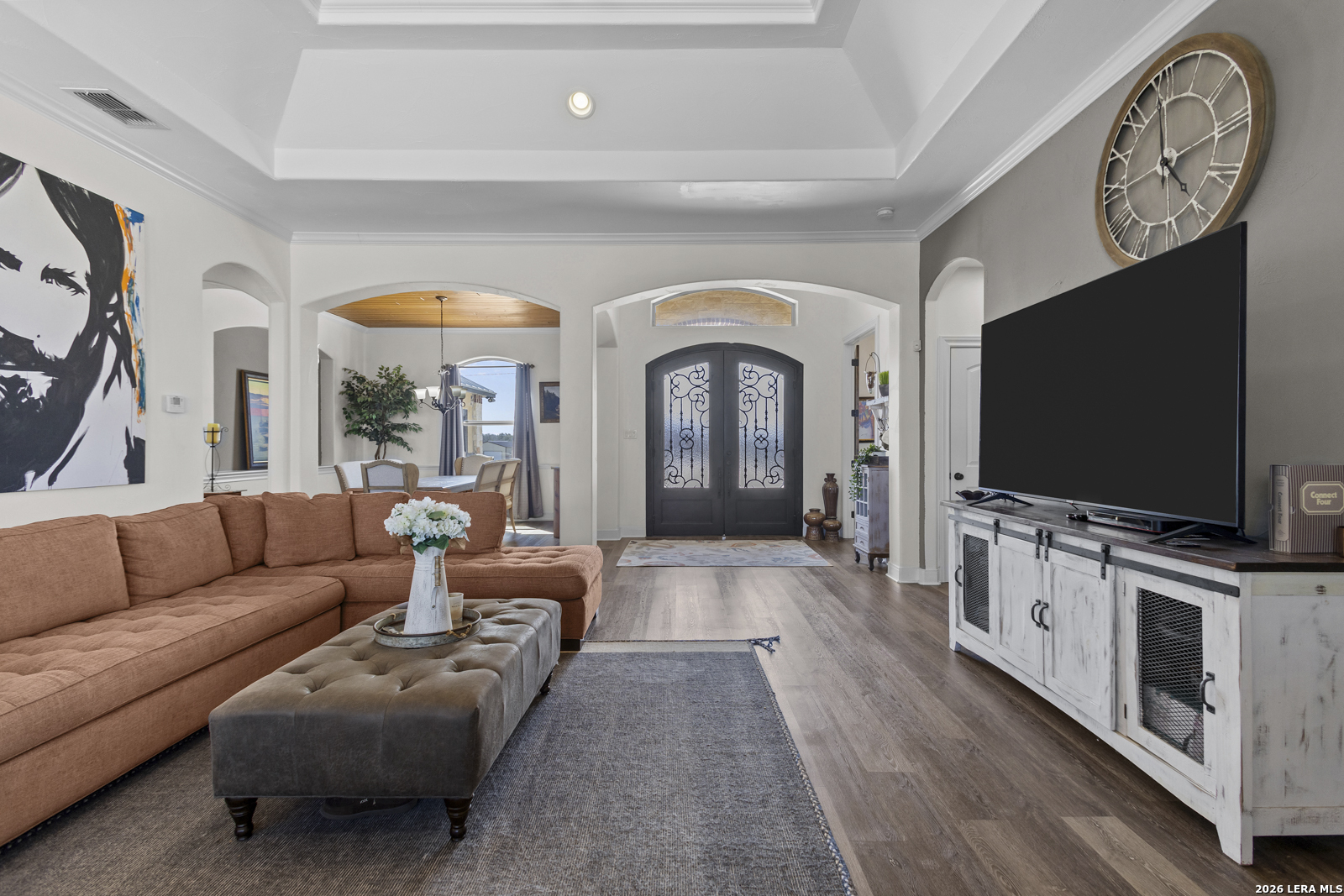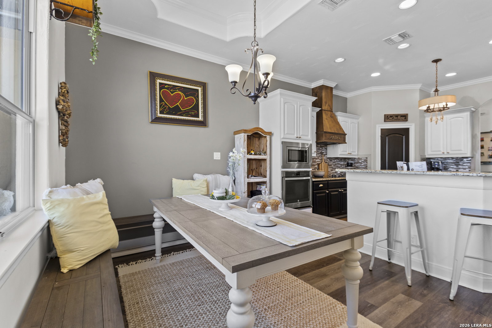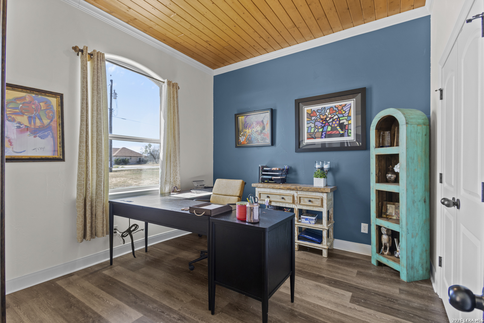 Welcome to 109 Colibro Creek in La Vernia, TX 78121. This absolutely gorgeous single story home sits on a full acre in a quiet one street community with only 12 homes. Offering over 2,700 square feet, this 4 bedroom, 3.5 bath residence is filled with quality details throughout. From the moment you arrive, the oversized metal front doors make a stunning first impression. Inside, you will find an open floor plan with LVP flooring and hand textured walls. The spacious living room features a beautiful fireplace and flows seamlessly into the large kitchen, creating the perfect space for everyday living and entertaining. The kitchen offers a generous island, stainless steel appliances, abundant cabinet space, and plenty of room to gather. The primary suite is a true retreat with a large bedroom and a luxurious bathroom that includes a whirlpool tub, separate shower, dual vanities, and his and hers walk in closets. One secondary bedroom has its own full bath, while two additional bedrooms share a convenient Jack and Jill bathroom. There is also an additional half bath for guests. At the front of the home, you will find a dedicated office space. A large utility room and an extra wide two car garage provide added functionality. This all electric home is built for efficiency with spray foam insulation and a durable metal roof to help keep energy costs down. Step outside to enjoy the covered back patio overlooking a beautiful in ground pool and a spacious backyard with plenty of room to relax or entertain. If you are looking for space, privacy, and quality craftsmanship in La Vernia, this home has it all.