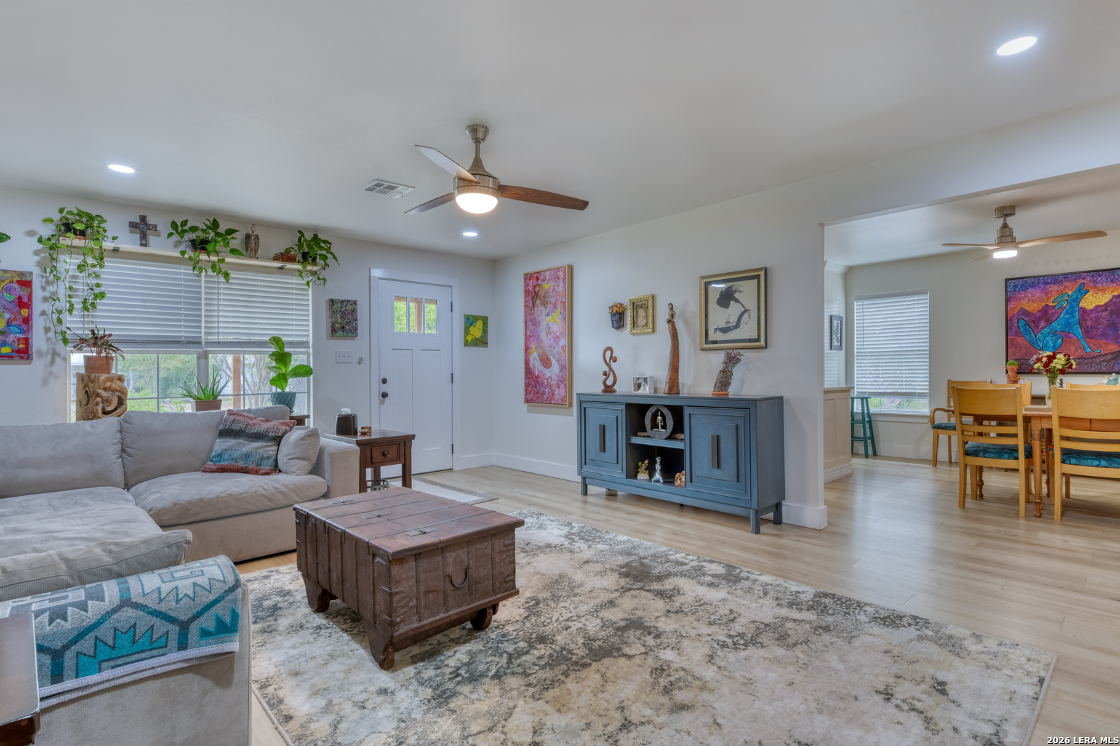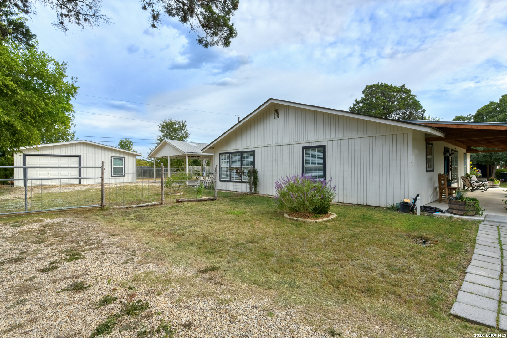 Welcome! This West Texas-meet-the-Hill Country ranchette is infused with the "ahhhh" factor of an inspired artist. Peaceful and serene, you are swept away at the top of Guadalupe Heights in Kerrville. There is sooo much more than meets the eye- please read! This Hill Country cottage is just a short walk to the banks of the Guadalupe River (situated high above the river, not in the floodway)! A homestead compound, fully fenced in w/ 4 autonomous structures- a single story home, an oversized, detached /oversized 2 car garage with improvements(see photos), and another detached workshop/art studio/laundry room, and 2 car carport. Each of the structures are in impeccable condition, loaded with value, with opportunities to add even more value. The main house was completely renovated 4 years ago and has been lovingly enhanced and appointed by the current owner artist. She totally transformed the front exterior with the added West Texas covered front porch. The small detached converted shed would make a perfect home office or play room, it is large enough for the utility of washer/dryer and is fully sheetrocked with ambient air. The oversized garage is framed and wired for an apartment or another studio with plenty of space for a full workshop. The 2-car carport could also be another covered play area. Your slice of Hill Country heaven is located high above the flood plain, close to the Kerrville Airport, the Guadalupe River Park with a 6 mile paved river trail, and over 14 miles of natural-surface trails at Schreiner Park.(7 minute walk on a trail to the river is just around the corner of the house) 10 minutes by car to all things downtown Kerrville, and just outside of the city limits. You are surrounded by great neighborly company, so go ahead and borrow that cup of sugar! Kerrville is a cultural hub with an historic downtown center, performing arts theatre, Kerrville Folk Festival, river activities, Schreiner University, the Kerrville VA Medical Center. The magic is inside- come visit!