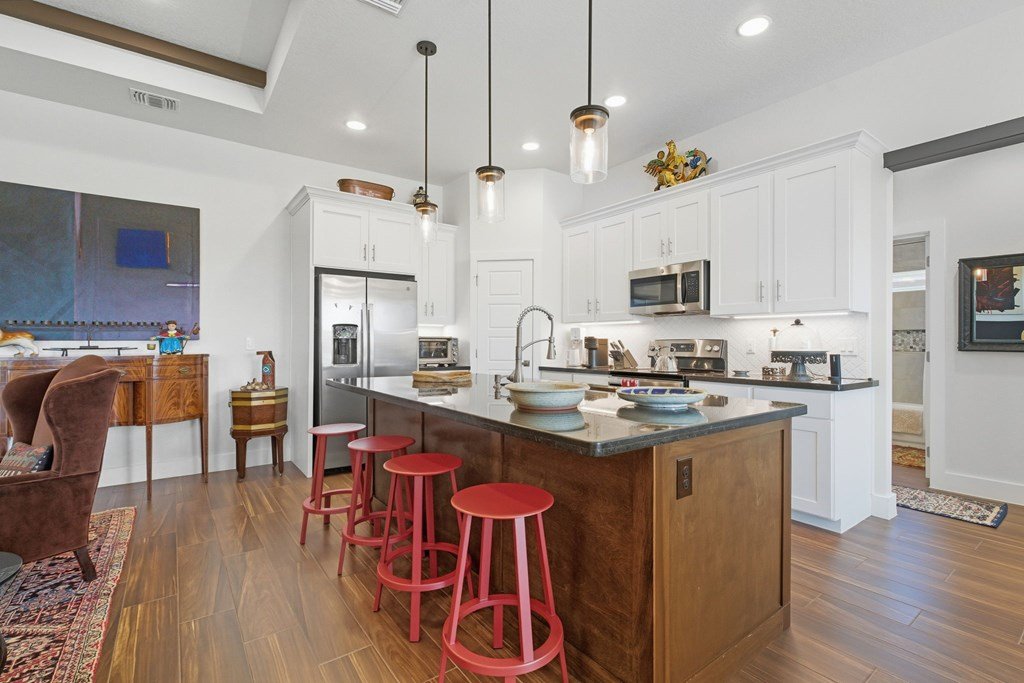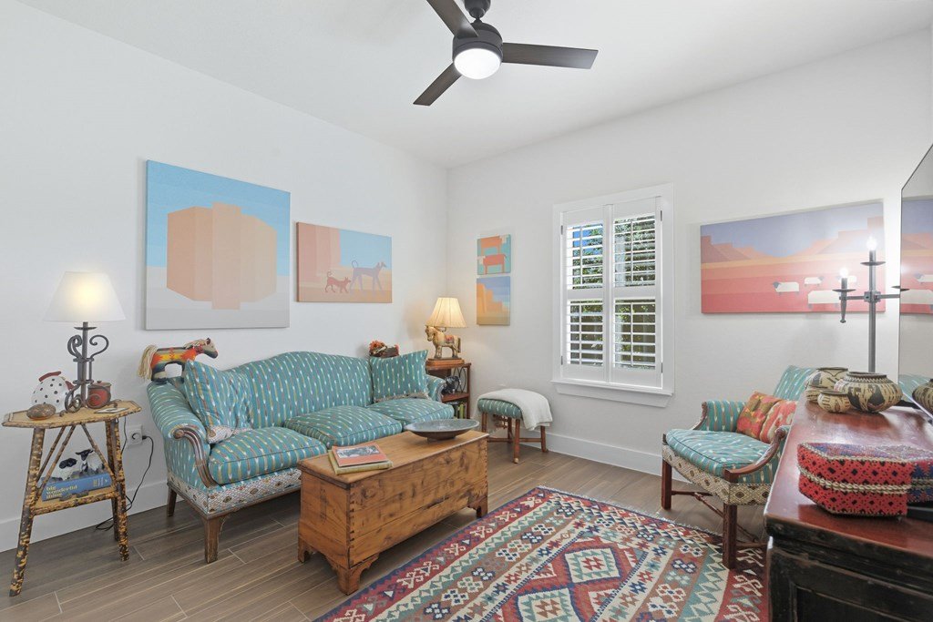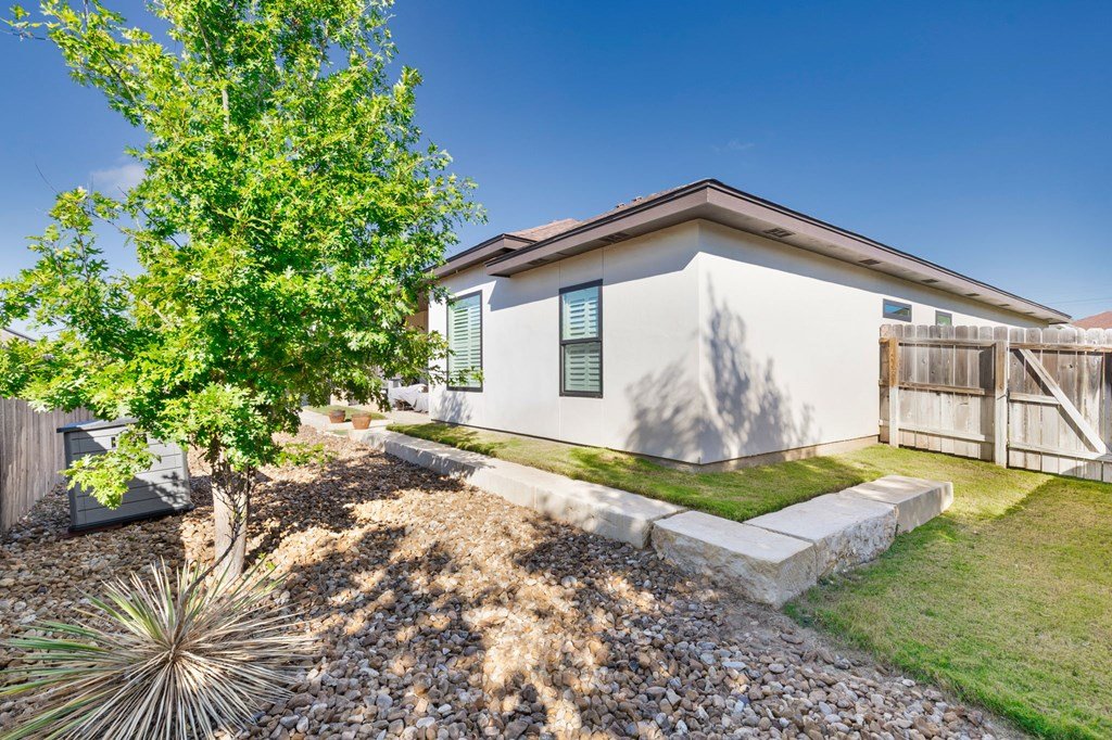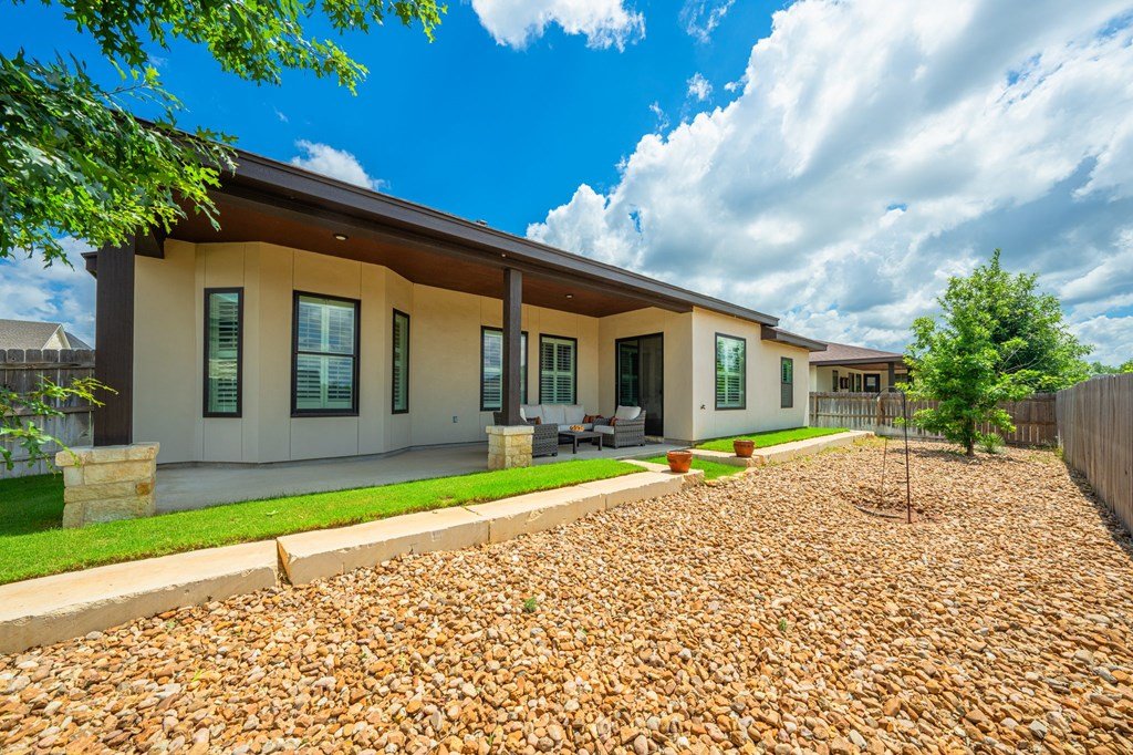 Meticulously maintained and perfectly positioned in an established neighborhood; located in the Madrona subdivision this property is close to all Fredericksburg private & public school campuses, medical facilities, and grocery shopping - the essentials ! The home combines practical design with a light-filled, welcoming atmosphere and is absolutely move in ready ! This 4 bed, 2 &1/2 bath home has an open floor plan with an abundance of natural light flowing in through the over-sized windows. Wood-like tile floors and plantation shutters throughout, large open kitchen, walk in pantry, high ceilings with exposed beams in the living room. Primary bedroom with en-suite bathroom, large walk-in shower, double vanity & generous walk-in closet space. The 4th bedroom can be office/study with access to 1/2 bathroom. The home has a separate laundry off the 2 car attached garage. Both the front yard and back garden have thoughtfully designed beds with lovely landscaping and a sprinkler system for easy maintenance. Bordering the Heritage School campus, this home enjoys a uniquely convenient setting in a quiet, welcoming neighborhood.