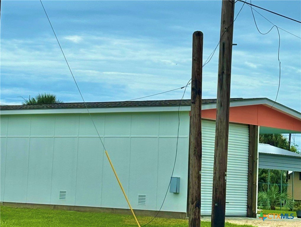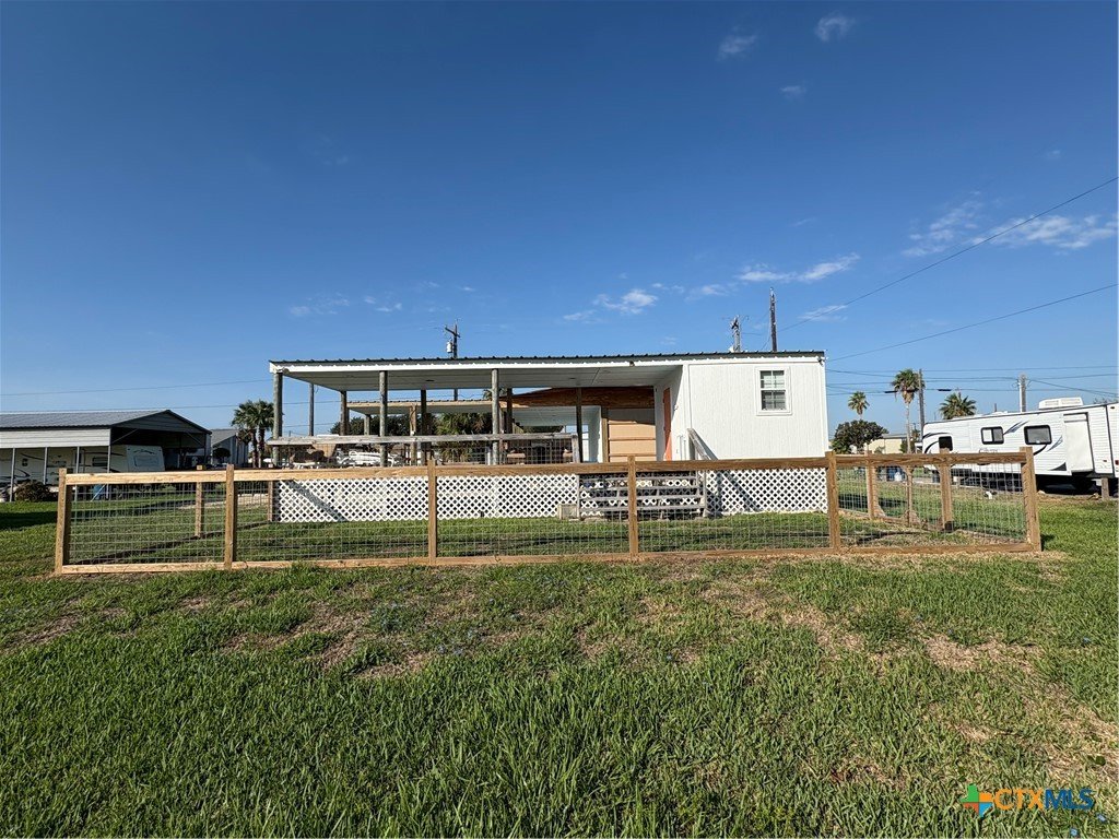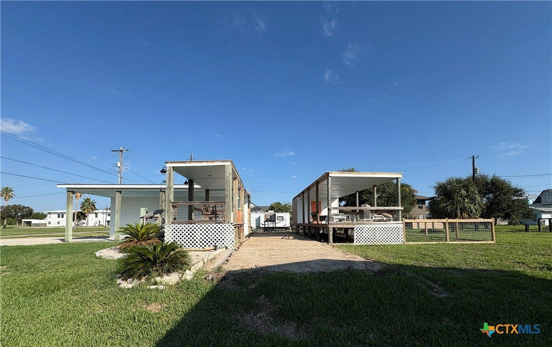 Water Views! One block from Kingfisher Beach, this lot is ready for your RV with porches for enjoying the water views! Boat barn and fenced backyard. The back patio has a bedroom and bathroom for a great additional space.