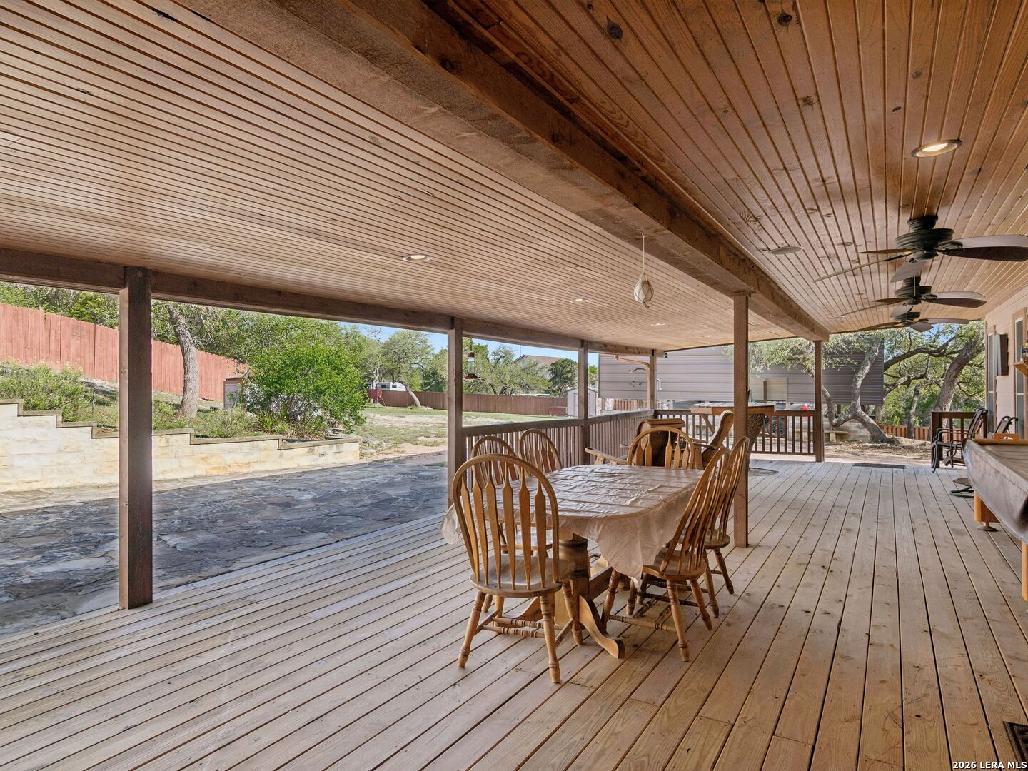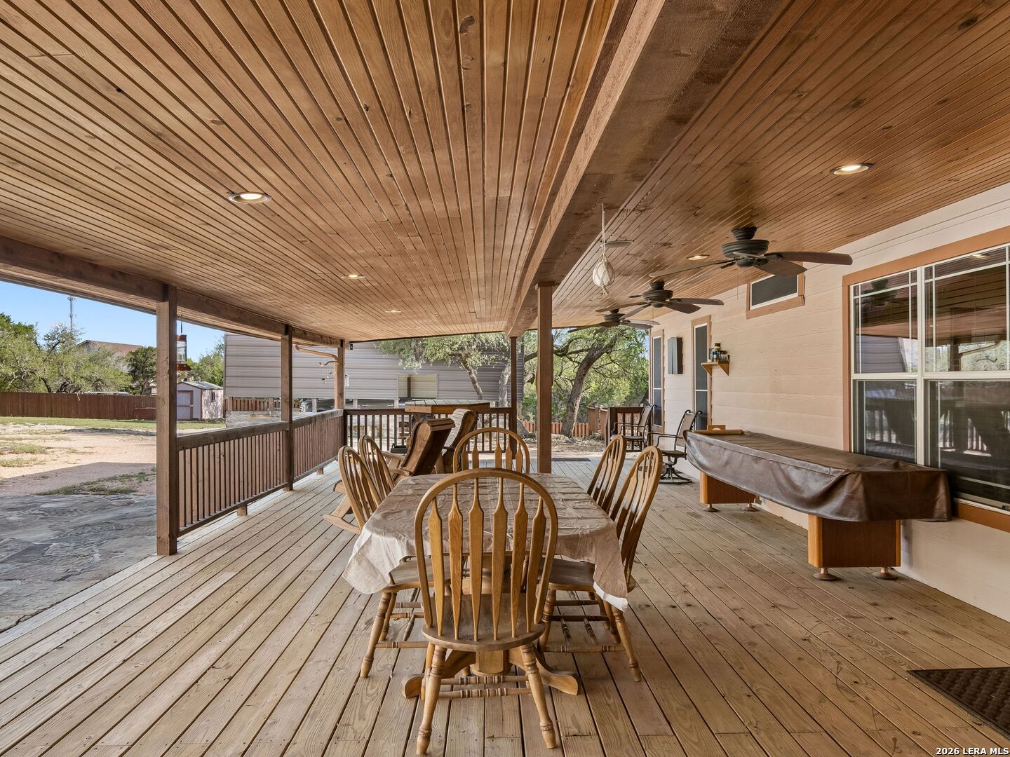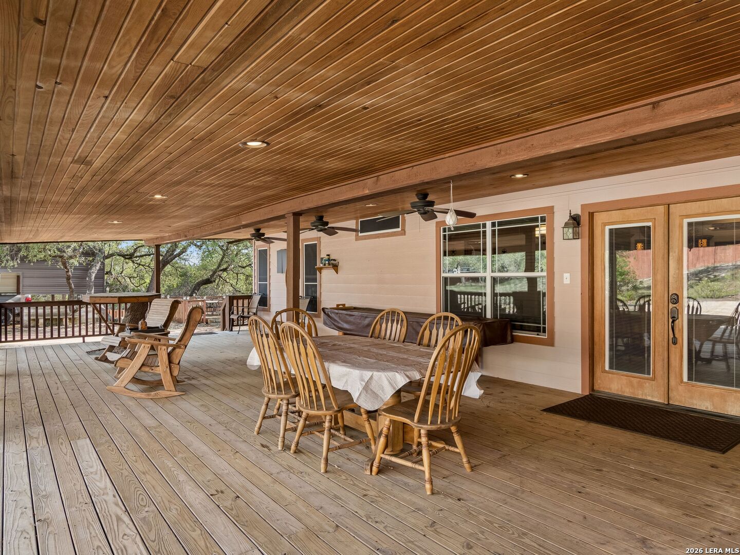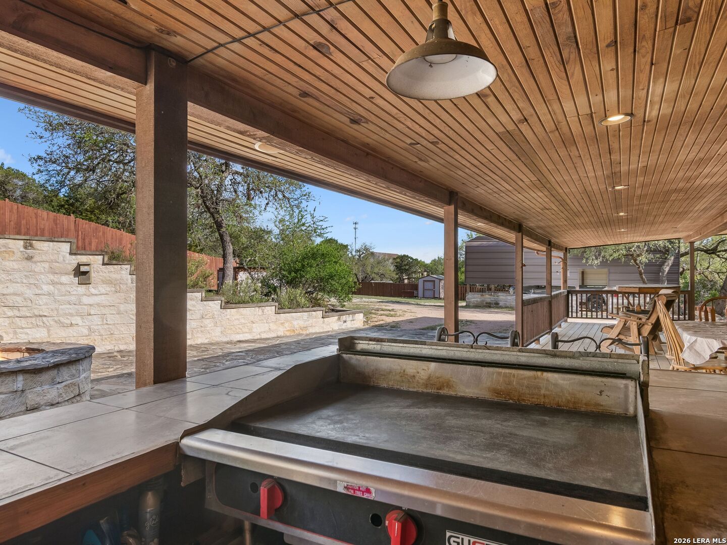 Nestled in the scenic Texas Hill Country, this inviting property at 1090 Grand Pass in Canyon Lake offers the perfect blend of tranquility and convenience. Surrounded by mature trees and natural beauty, the home provides a peaceful retreat while still being just minutes from Canyon Lake, local parks, and popular dining spots. Inside, you'll find a thoughtfully designed layout creating a warm and welcoming atmosphere. The kitchen is well-equipped for everyday living and entertaining, featuring gas cooking, ample cabinetry, and generous workspace. Comfortable bedrooms provide restful retreats, while the primary suite offers privacy and functionality. Significant updates add peace of mind, including a roof replaced in June 2021 and an HVAC system updated in April 2022. Step outside to truly appreciate everything this property has to offer. The outdoor living space is a standout feature, complete with a fully equipped outdoor kitchen featuring a commercial-grade griddle-perfect for hosting gatherings. A convenient half bathroom is located near the outdoor kitchen, making entertaining even easier. The expansive space also includes covered RV or boat parking, ideal for those looking to enjoy nearby Canyon Lake to the fullest. Whether you're relaxing with your morning coffee, entertaining guests, or enjoying the serene Hill Country surroundings, this property offers a versatile lifestyle. Conveniently located with easy access to highways, shopping, and recreation, this home is a fantastic opportunity to experience the best of Canyon Lake living.