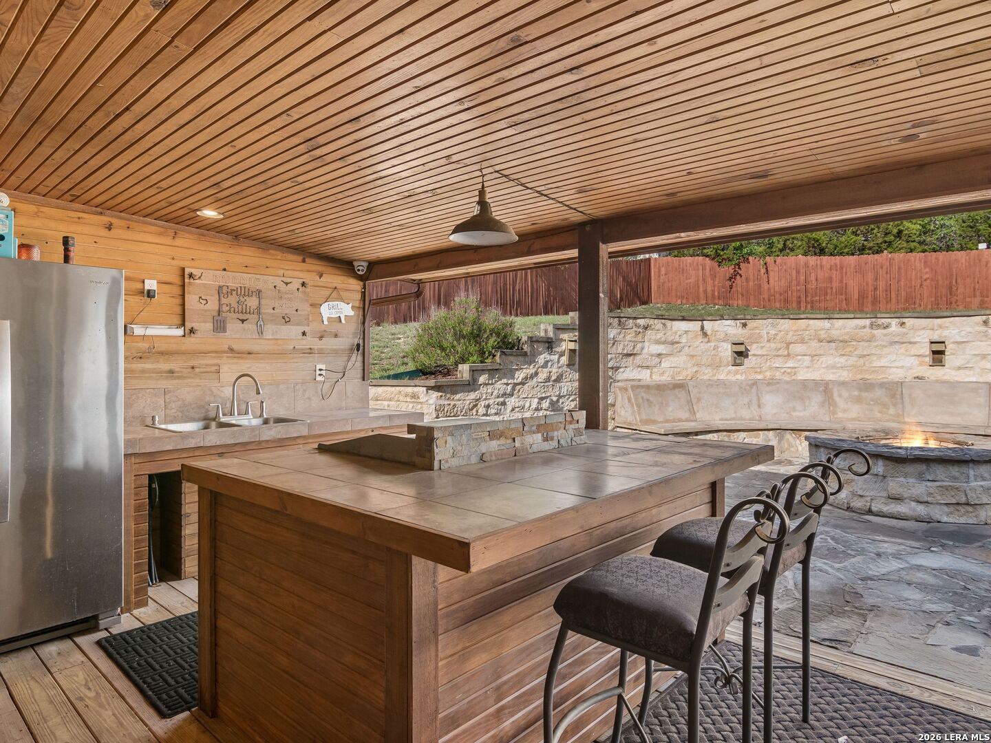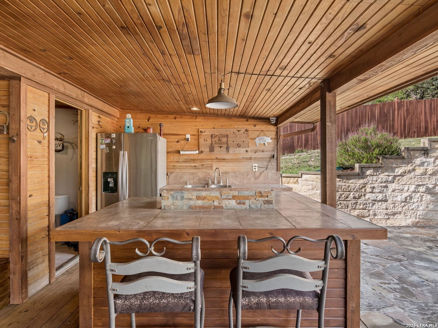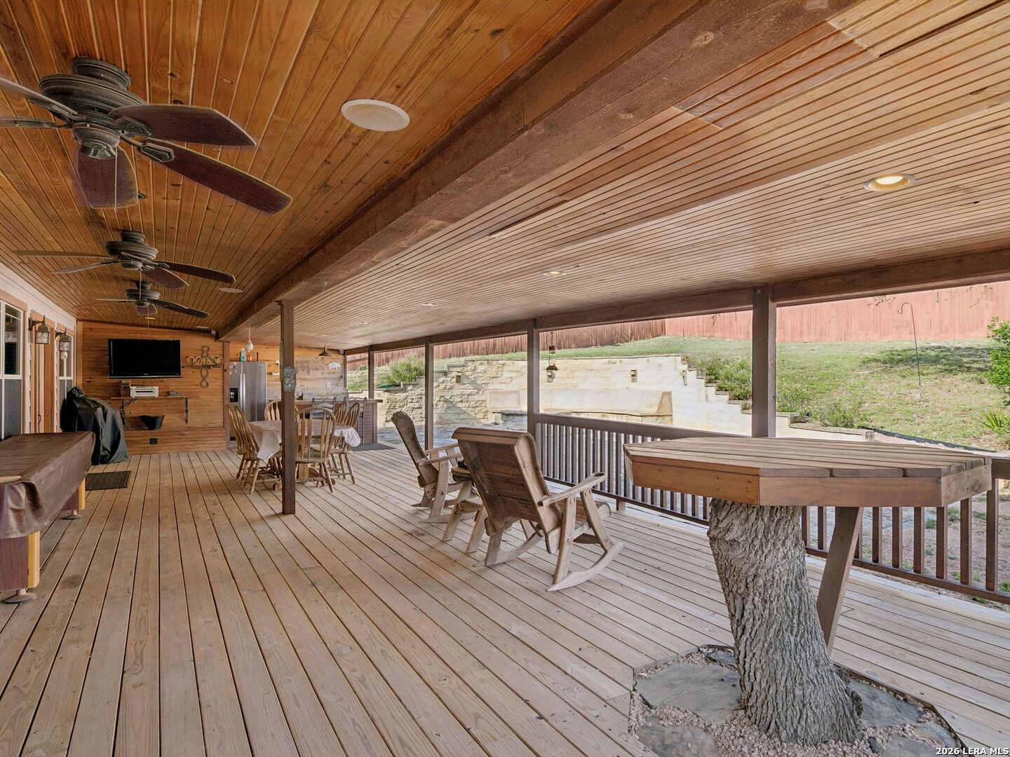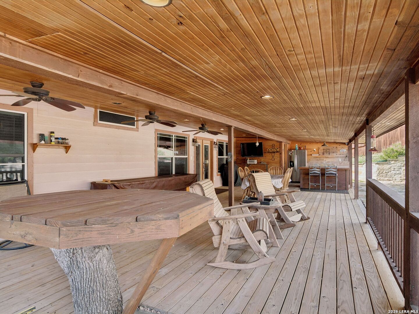 Nestled in the scenic Texas Hill Country, this inviting property at 1090 Grand Pass in Canyon Lake offers the perfect blend of tranquility and convenience. Surrounded by mature trees and natural beauty, the home provides a peaceful retreat while still being just minutes from Canyon Lake, local parks, and popular dining spots. Inside, you'll find a thoughtfully designed layout creating a warm and welcoming atmosphere. The kitchen is well-equipped for everyday living and entertaining, featuring gas cooking, ample cabinetry, and generous workspace. Comfortable bedrooms provide restful retreats, while the primary suite offers privacy and functionality. Significant updates add peace of mind, including a roof replaced in June 2021 and an HVAC system updated in April 2022. Step outside to truly appreciate everything this property has to offer. The outdoor living space is a standout feature, complete with a fully equipped outdoor kitchen featuring a commercial-grade griddle-perfect for hosting gatherings. A convenient half bathroom is located near the outdoor kitchen, making entertaining even easier. The expansive space also includes covered RV or boat parking, ideal for those looking to enjoy nearby Canyon Lake to the fullest. Whether you're relaxing with your morning coffee, entertaining guests, or enjoying the serene Hill Country surroundings, this property offers a versatile lifestyle. Conveniently located with easy access to highways, shopping, and recreation, this home is a fantastic opportunity to experience the best of Canyon Lake living.