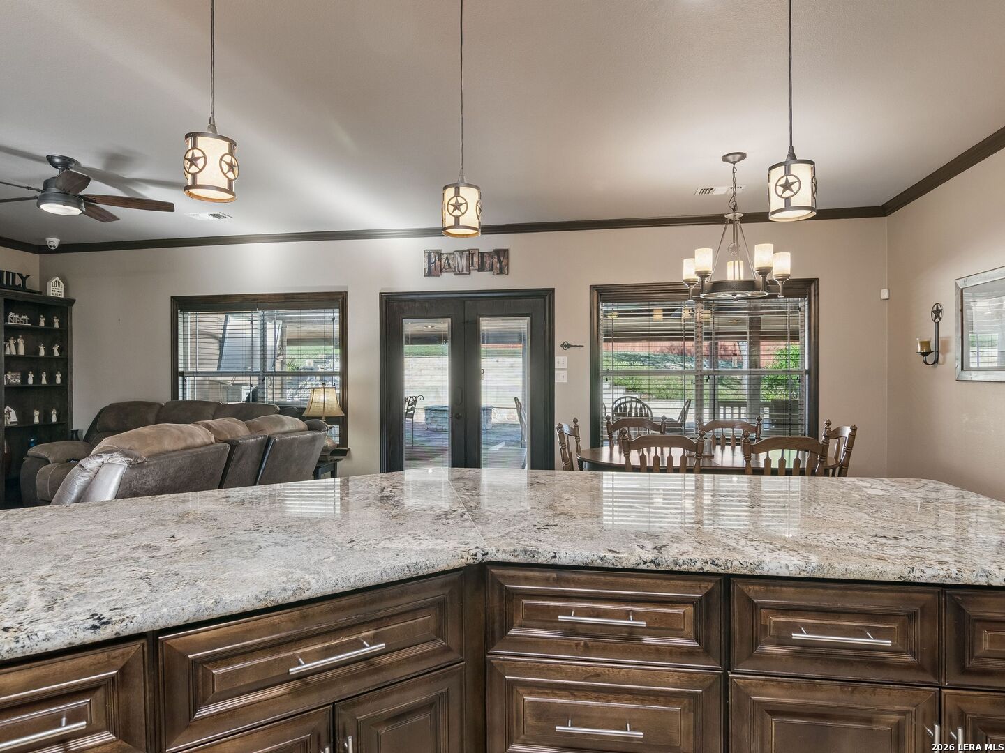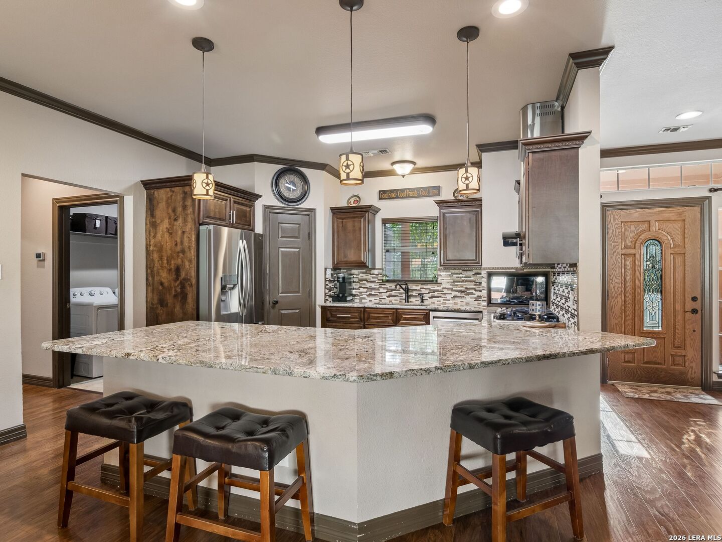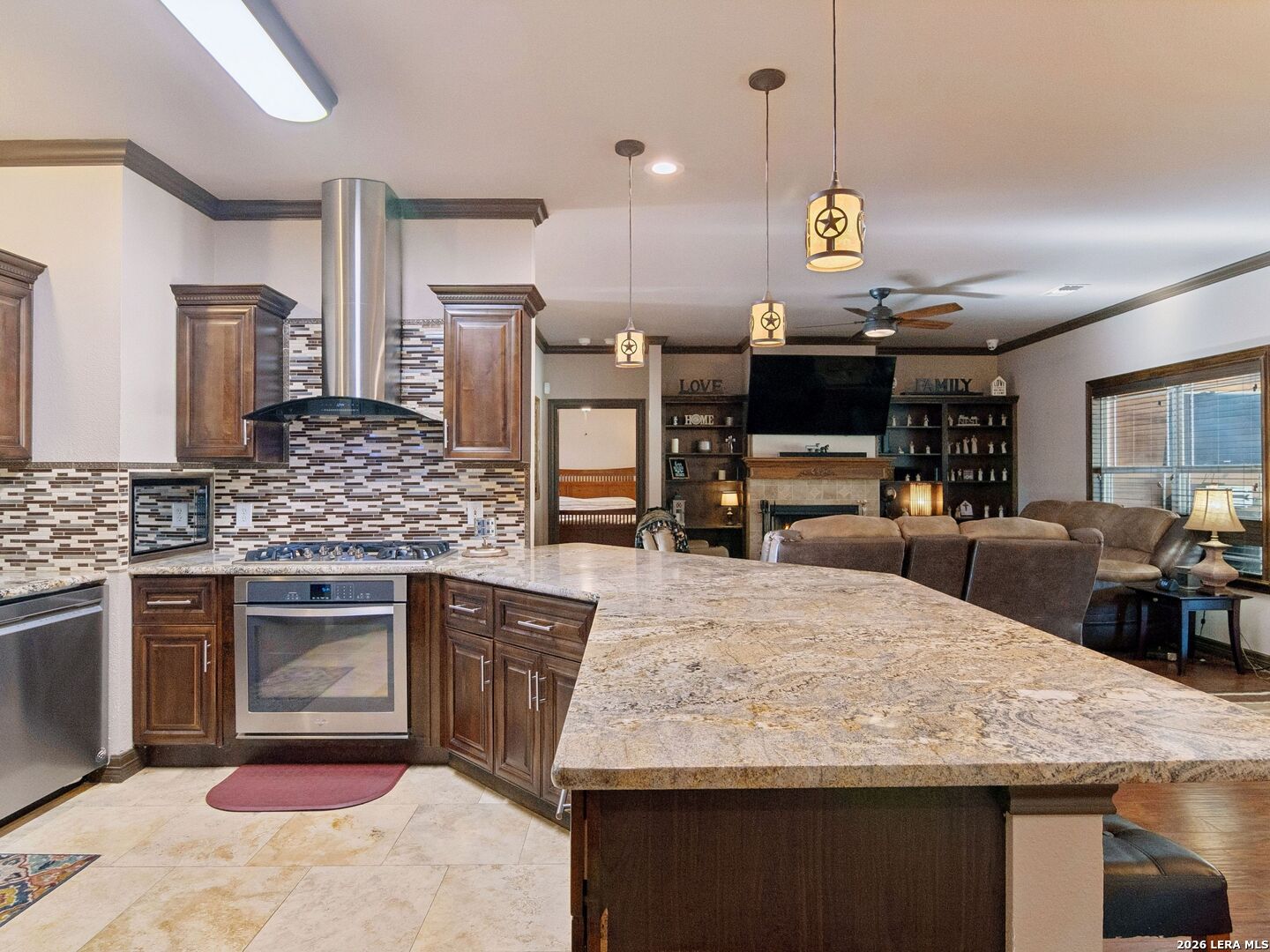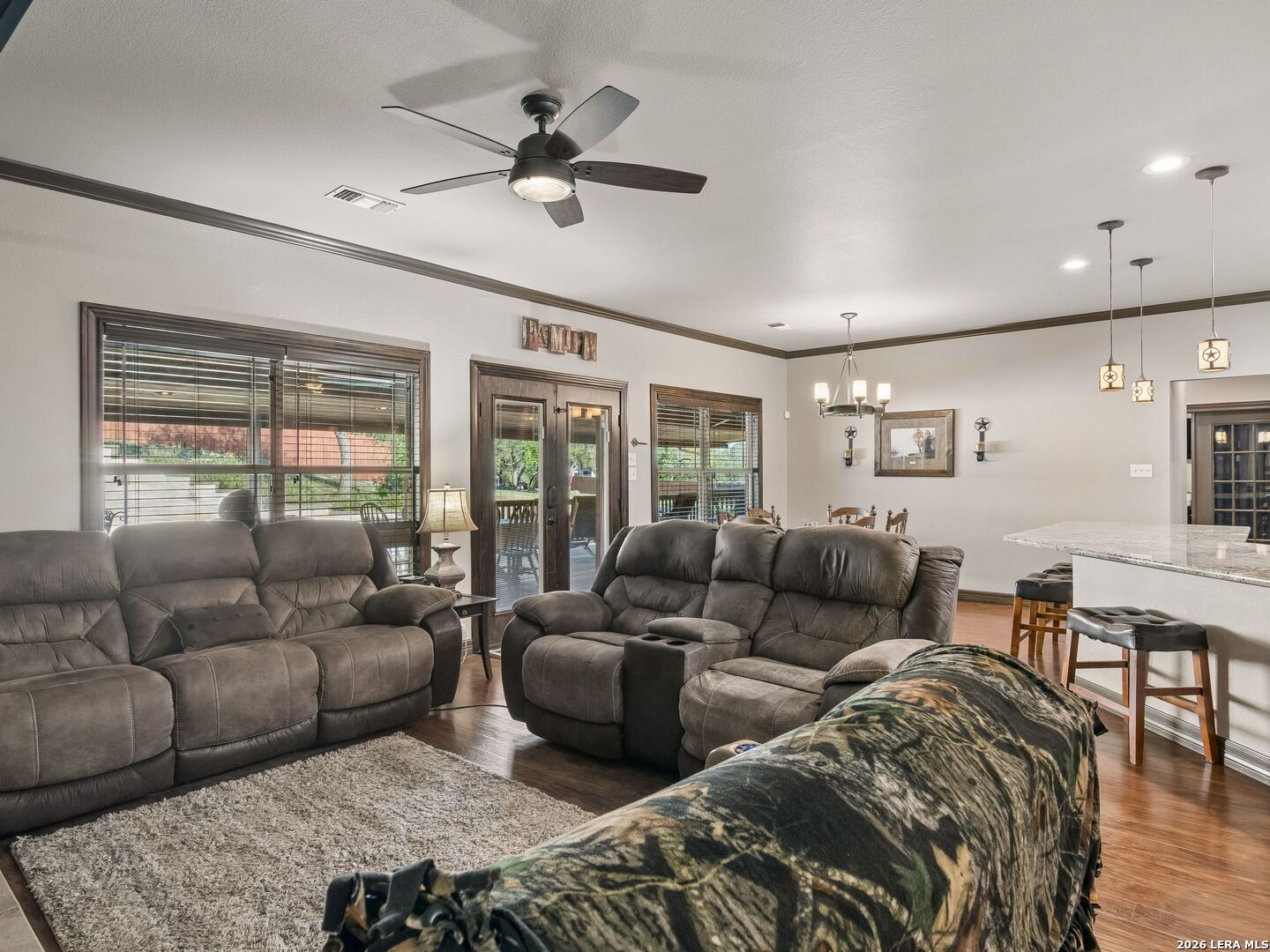 Nestled in the scenic Texas Hill Country, this inviting property at 1090 Grand Pass in Canyon Lake offers the perfect blend of tranquility and convenience. Surrounded by mature trees and natural beauty, the home provides a peaceful retreat while still being just minutes from Canyon Lake, local parks, and popular dining spots. Inside, you'll find a thoughtfully designed layout creating a warm and welcoming atmosphere. The kitchen is well-equipped for everyday living and entertaining, featuring gas cooking, ample cabinetry, and generous workspace. Comfortable bedrooms provide restful retreats, while the primary suite offers privacy and functionality. Significant updates add peace of mind, including a roof replaced in June 2021 and an HVAC system updated in April 2022. Step outside to truly appreciate everything this property has to offer. The outdoor living space is a standout feature, complete with a fully equipped outdoor kitchen featuring a commercial-grade griddle-perfect for hosting gatherings. A convenient half bathroom is located near the outdoor kitchen, making entertaining even easier. The expansive space also includes covered RV or boat parking, ideal for those looking to enjoy nearby Canyon Lake to the fullest. Whether you're relaxing with your morning coffee, entertaining guests, or enjoying the serene Hill Country surroundings, this property offers a versatile lifestyle. Conveniently located with easy access to highways, shopping, and recreation, this home is a fantastic opportunity to experience the best of Canyon Lake living.