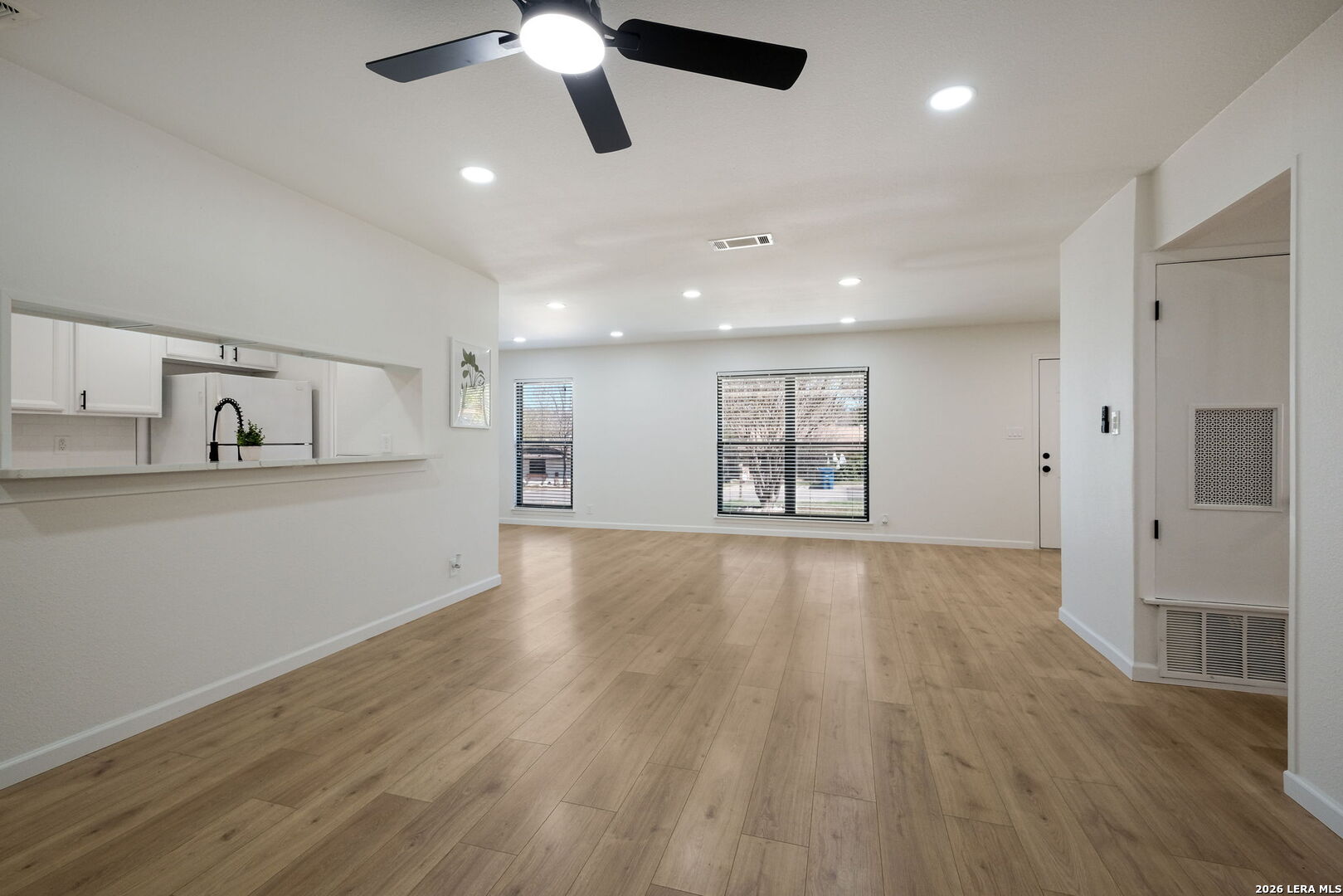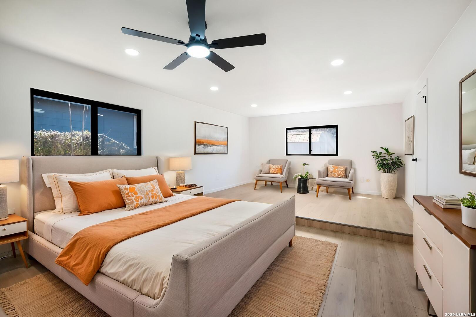 Tucked away on a quiet cul-de-sac street in a highly desirable North Central San Antonio location, this well-maintained home offers space, comfort, and thoughtful updates throughout. Inside, you'll immediately notice the new flooring with no carpet (November 2025), giving the home a clean, modern feel while also being easy to maintain. The recently updated kitchen and bathrooms bring fresh style and functionality, making everyday living and entertaining easy. The layout flows comfortably between the living and dining areas, creating a welcoming space for gatherings or relaxing at home. One of the standout features is the very large primary suite, complete with a dedicated sitting room that works perfectly as a private retreat, reading area, home office, or flex space. Step outside to the large screened-in porch, an ideal spot for outdoor living and entertaining, whether you're enjoying morning coffee or relaxing in the evenings while still being protected from the elements. Located just minutes from I-10 and Loop 1604, this home offers easy highway access and excellent commuter convenience to major areas like the Medical Center, USAA, UTSA, La Cantera, and The Rim, while still being close to restaurants, parks, and everyday amenities. With no carpet, updated kitchen, updated bathrooms, large primary suite with sitting area, screened-in porch, cul-de-sac location, and prime North Central San Antonio access, this home checks so many boxes!