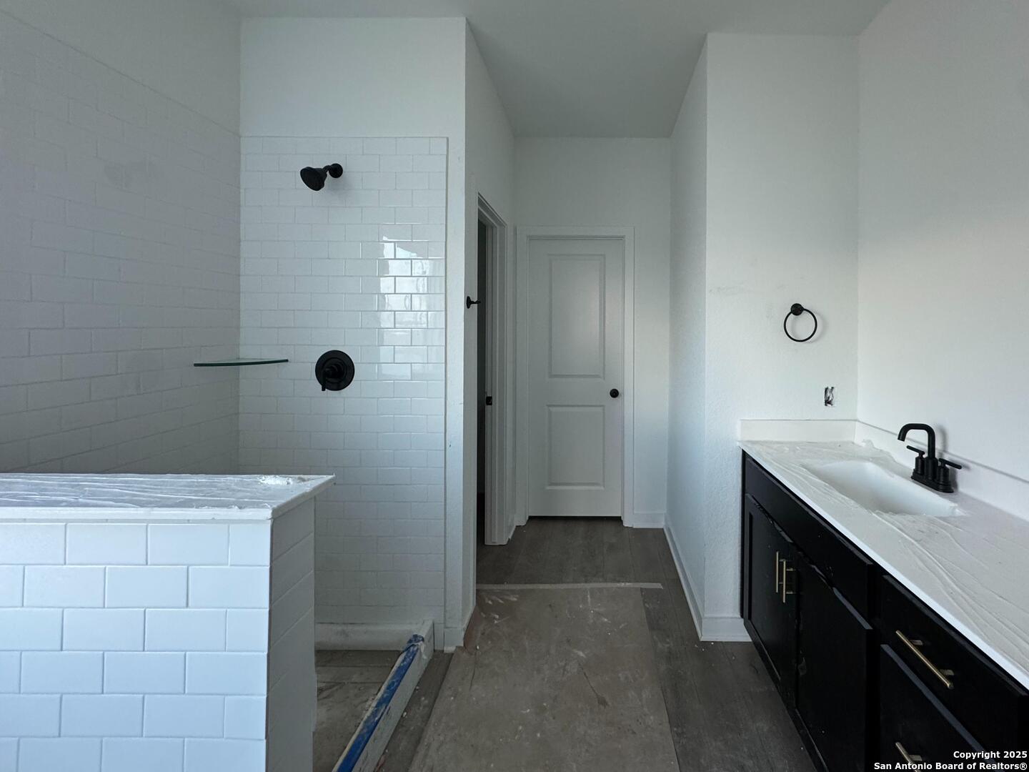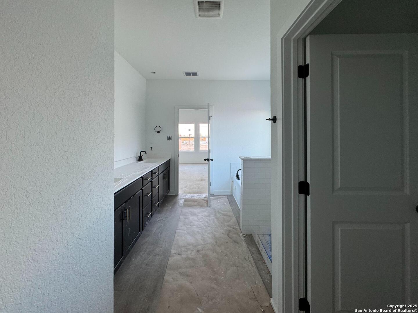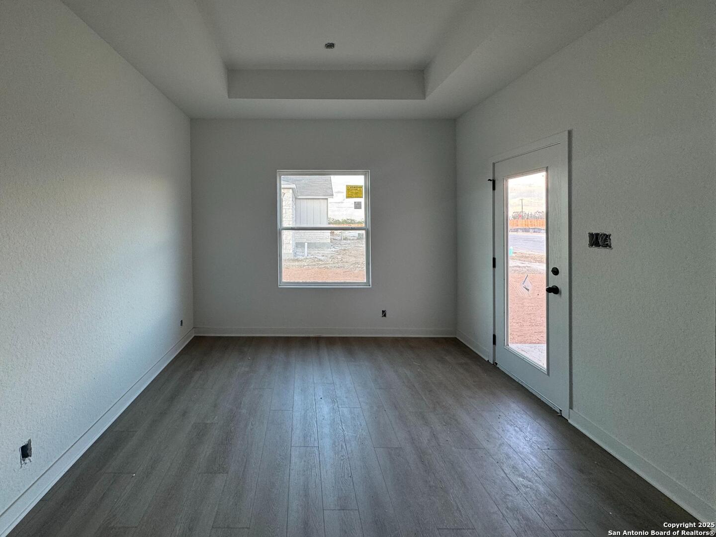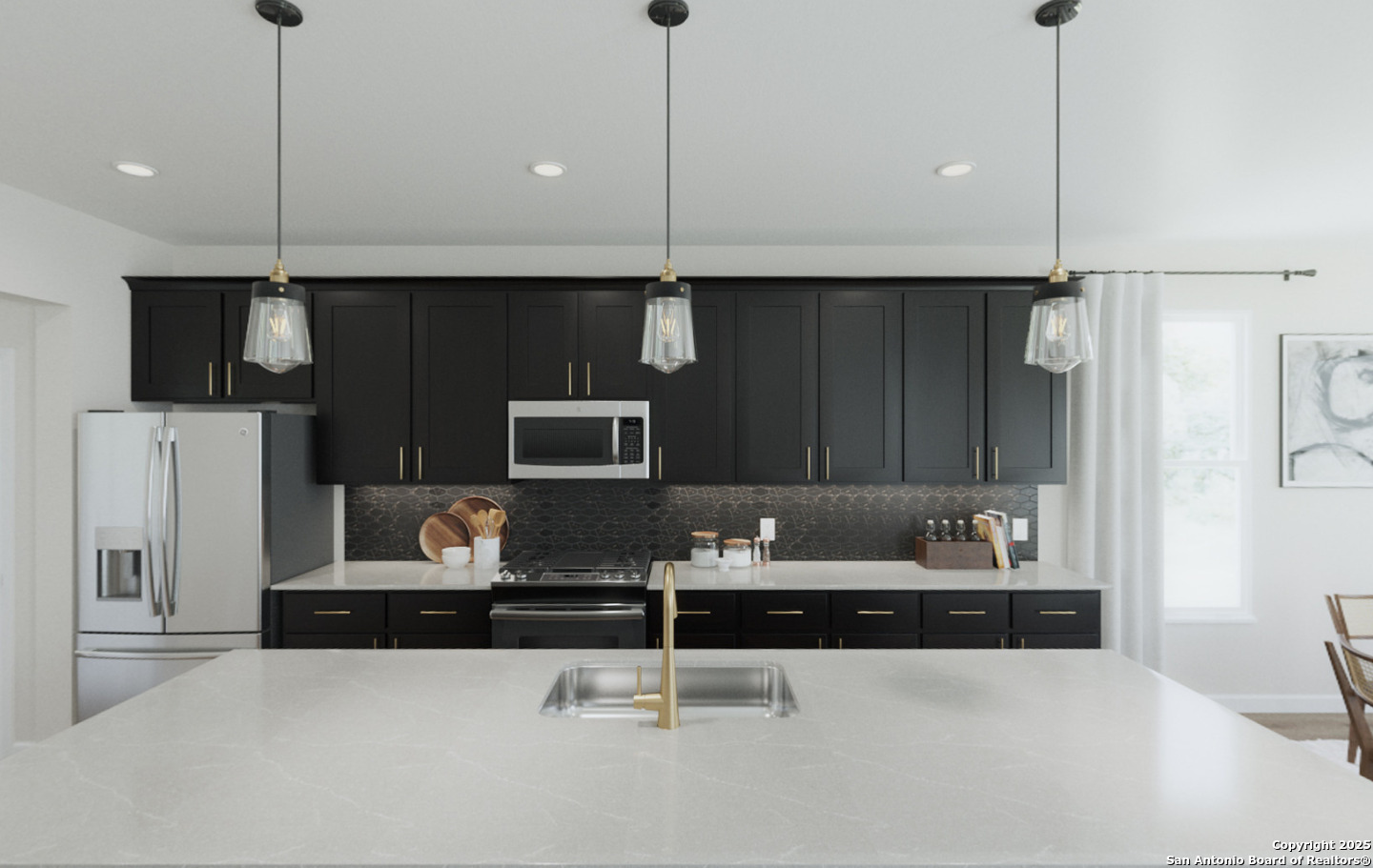 This beautiful one-story home is thoughtfully designed to combine comfort and functionality in a modern layout. At the heart of the home, the gourmet kitchen features a spacious island, built-in oven, pendant lighting, and a walk-in pantry, making it perfect for both meal prep and entertaining. The kitchen opens seamlessly into the family room, where large windows fill the space with natural light and offer peaceful backyard views. A private study with double doors, ceiling fan, data line, and cable drop provides the ideal space for working from home or enjoying hobbies. The secluded primary suite includes a relaxing bath with a separate tub and shower, along with a generous walk-in closet. Two additional bedrooms share a full bath, offering plenty of space for family or guests. Additional highlights include a covered patio for outdoor living, a breakfast room with a tray ceiling, and a desirable corner lot location. This home is part of our Noir Collection-designed with high contrasts, deep shadows, and an air of mystery. Charcoal and gold tones mix with textured woods, brass accents, and dramatic lighting to create an atmosphere that's both sophisticated and inviting. Noir is the soundtrack of clinking glasses, soft jazz, and rain on the window-a warm, alluring style that turns every day into an occasion. This home is located in The Wilder, a community perfectly positioned with direct access to Loop 1604 and minutes from I-10. Enjoy easy commutes to major employers like Randolph Air Force Base, Amazon, and Brooke Army Medical Center. Planned amenities include a refreshing pool, playground, and cabana-ideal spots to relax and connect. The Wilder offers the perfect blend of convenience, lifestyle, and modern living.
