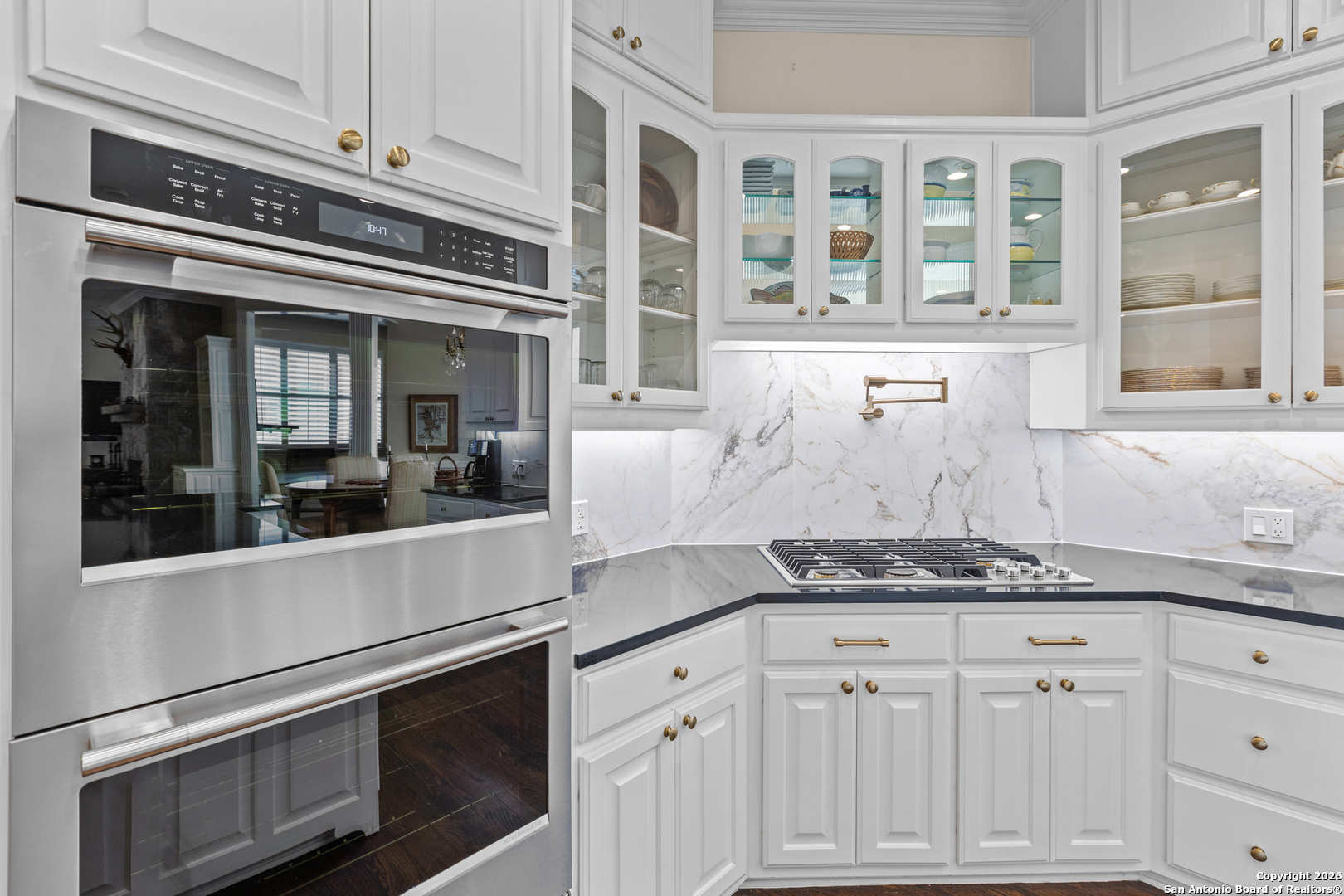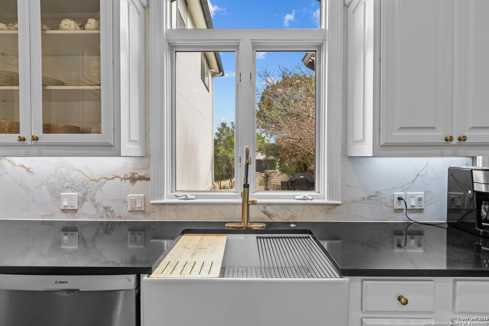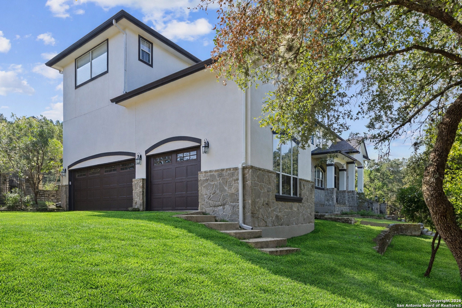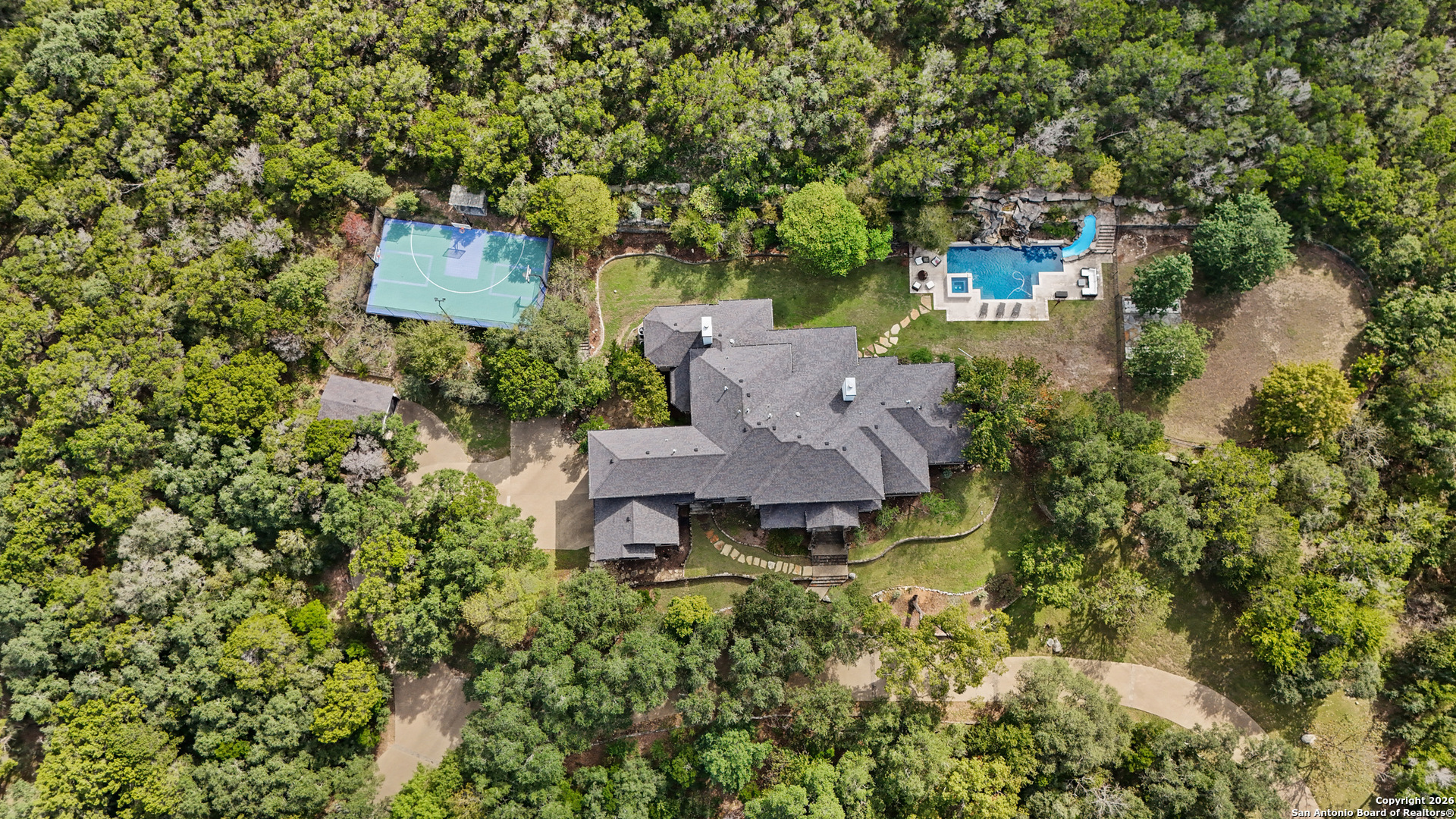 Experience refined Hill Country luxury at 10924 Reyes Canyons in Helotes, TX. Set on 2.68 private acres, this exceptional estate offers resort-style outdoor living, grand architectural details, and thoughtfully designed interiors tailored to today's luxury lifestyle. The exterior makes a striking first impression with a circular drive, mature landscaping, and multiple garages including a 3-car oversized attached garage plus a 1-car detached garage, ideal for car enthusiasts or additional storage. The backyard is a true private resort, featuring a luxury pool with spa, waterfall, and slide, multiple outdoor living and entertaining areas, and a huge covered patio perfect for hosting year-round. A sport court offers space for basketball or pickleball, while a dedicated dog run adds everyday convenience. Surrounded by Hill Country views and natural privacy, this property is designed for both relaxation and entertaining on a grand scale. Step inside to a breathtaking foyer with a grand staircase, complemented by a secondary back staircase for seamless flow throughout the home. Richly refinished hardwood floors, soaring ceilings, and abundant natural light immediately set the tone for elegance and timeless design. This expansive residence offers six bedrooms, five and a half bathrooms, and an impressive four living areas, including a formal living room, family room, piano room, and an upstairs secondary living space. At the heart of the home is an updated chef's kitchen, featuring quartz countertops, Calacatta backsplash, champagne bronze hardware, a farmhouse sink, double ovens, gas cooking, and a pot filler, all designed to meet the expectations of discerning buyers. A butler's pantry and wet bar enhance entertaining, while the formal dining room comfortably accommodates seating for twelve or more. Two fireplaces add warmth and architectural interest throughout the main living spaces. The primary suite is located on the main level, offering a private retreat with direct outdoor access, a spa-like bathroom, his and hers walk-in closets, and a private laundry area within the primary bath. An additional laundry room on the main level provides added convenience. A first-floor executive study offers the ideal work-from-home environment. Upstairs, you'll find five generously sized bedrooms. Two pairs of bedrooms are arranged in Jack-and-Jill configurations offering functional layouts for family or guests. One upstairs bedroom features its own living room and full bathroom, making it ideal as a secondary primary suite, guest suite, au pair quarters, or multigenerational living space. A finished attic provides additional flexible space for storage, a playroom, or recreational use. Located within Los Reyes Canyons, one of Helotes' most sought-after luxury gated communities, residents enjoy privacy, custom estates, Hill Country scenery, and abundant wildlife, all just minutes from top-rated Northside ISD schools, shopping, dining, and the charm of Downtown Helotes. This home offers the rare combination of acreage, amenities, and architectural elegance that luxury buyers seek. Schedule your private showing and experience the best of Los Reyes Canyons luxury living.