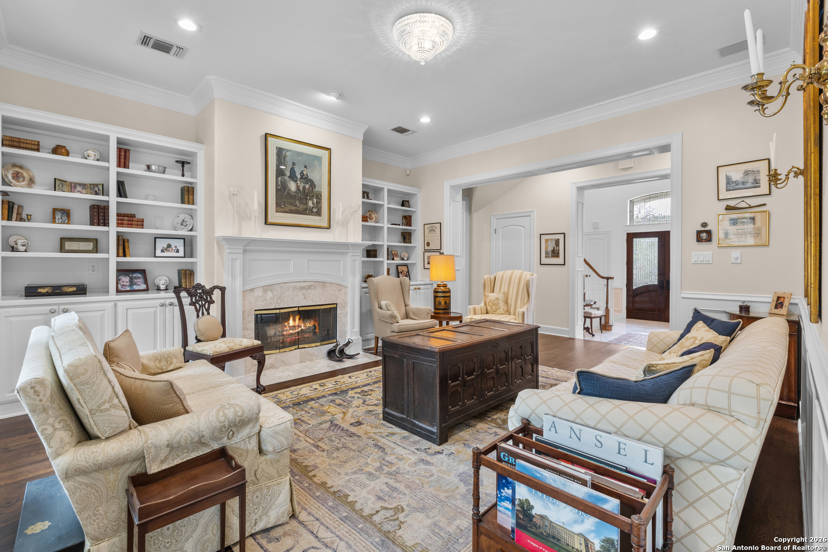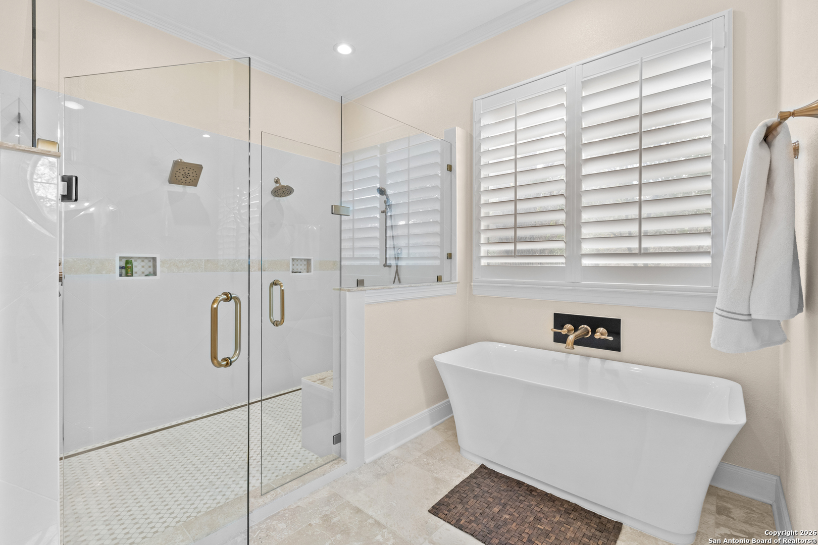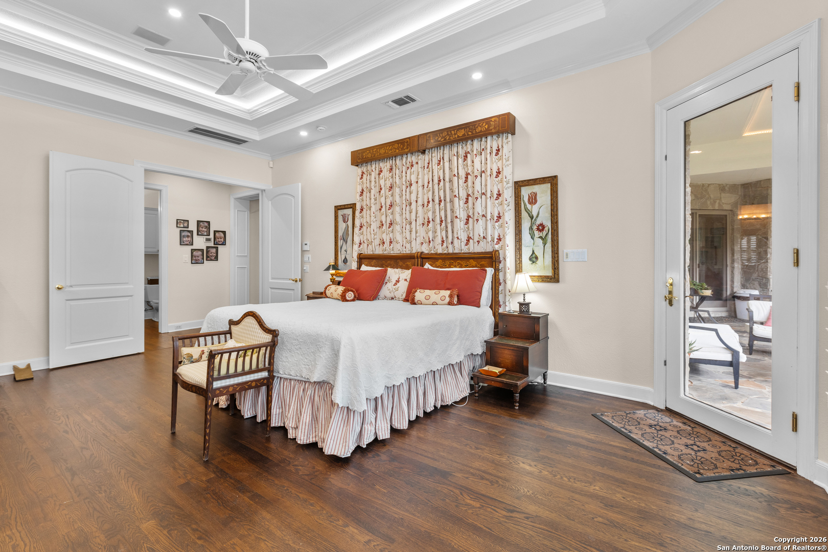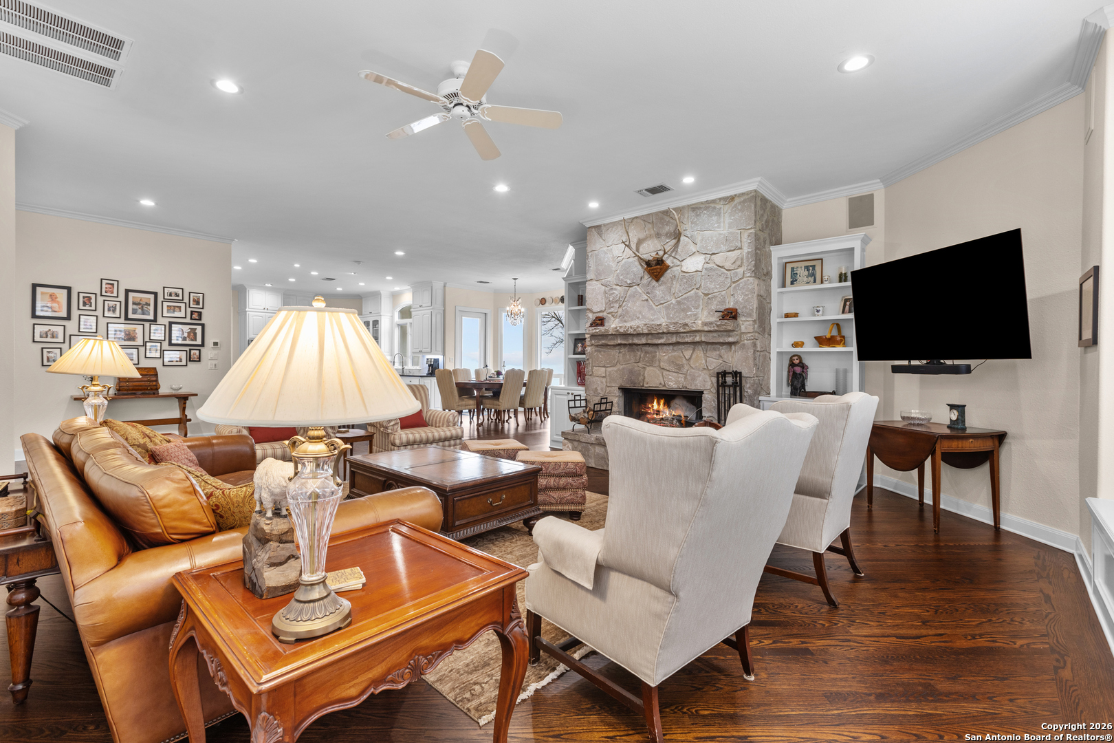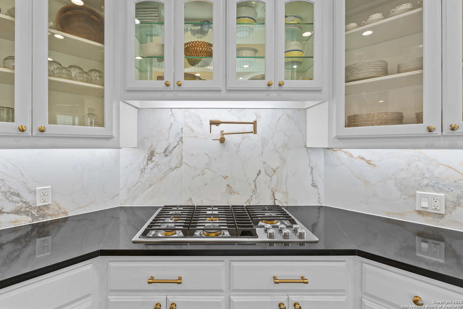 Experience refined Hill Country luxury at 10924 Reyes Canyons in Helotes, TX. Set on 2.68 private acres, this exceptional estate offers resort-style outdoor living, grand architectural details, and thoughtfully designed interiors tailored to today's luxury lifestyle. The exterior makes a striking first impression with a circular drive, mature landscaping, and multiple garages including a 3-car oversized attached garage plus a 1-car detached garage, ideal for car enthusiasts or additional storage. The backyard is a true private resort, featuring a luxury pool with spa, waterfall, and slide, multiple outdoor living and entertaining areas, and a huge covered patio perfect for hosting year-round. A sport court offers space for basketball or pickleball, while a dedicated dog run adds everyday convenience. Surrounded by Hill Country views and natural privacy, this property is designed for both relaxation and entertaining on a grand scale. Step inside to a breathtaking foyer with a grand staircase, complemented by a secondary back staircase for seamless flow throughout the home. Richly refinished hardwood floors, soaring ceilings, and abundant natural light immediately set the tone for elegance and timeless design. This expansive residence offers six bedrooms, five and a half bathrooms, and an impressive four living areas, including a formal living room, family room, piano room, and an upstairs secondary living space. At the heart of the home is an updated chef's kitchen, featuring quartz countertops, Calacatta backsplash, champagne bronze hardware, a farmhouse sink, double ovens, gas cooking, and a pot filler, all designed to meet the expectations of discerning buyers. A butler's pantry and wet bar enhance entertaining, while the formal dining room comfortably accommodates seating for twelve or more. Two fireplaces add warmth and architectural interest throughout the main living spaces. The primary suite is located on the main level, offering a private retreat with direct outdoor access, a spa-like bathroom, his and hers walk-in closets, and a private laundry area within the primary bath. An additional laundry room on the main level provides added convenience. A first-floor executive study offers the ideal work-from-home environment. Upstairs, you'll find five generously sized bedrooms. Two pairs of bedrooms are arranged in Jack-and-Jill configurations offering functional layouts for family or guests. One upstairs bedroom features its own living room and full bathroom, making it ideal as a secondary primary suite, guest suite, au pair quarters, or multigenerational living space. A finished attic provides additional flexible space for storage, a playroom, or recreational use. Located within Los Reyes Canyons, one of Helotes' most sought-after luxury gated communities, residents enjoy privacy, custom estates, Hill Country scenery, and abundant wildlife, all just minutes from top-rated Northside ISD schools, shopping, dining, and the charm of Downtown Helotes. This home offers the rare combination of acreage, amenities, and architectural elegance that luxury buyers seek. Schedule your private showing and experience the best of Los Reyes Canyons luxury living.