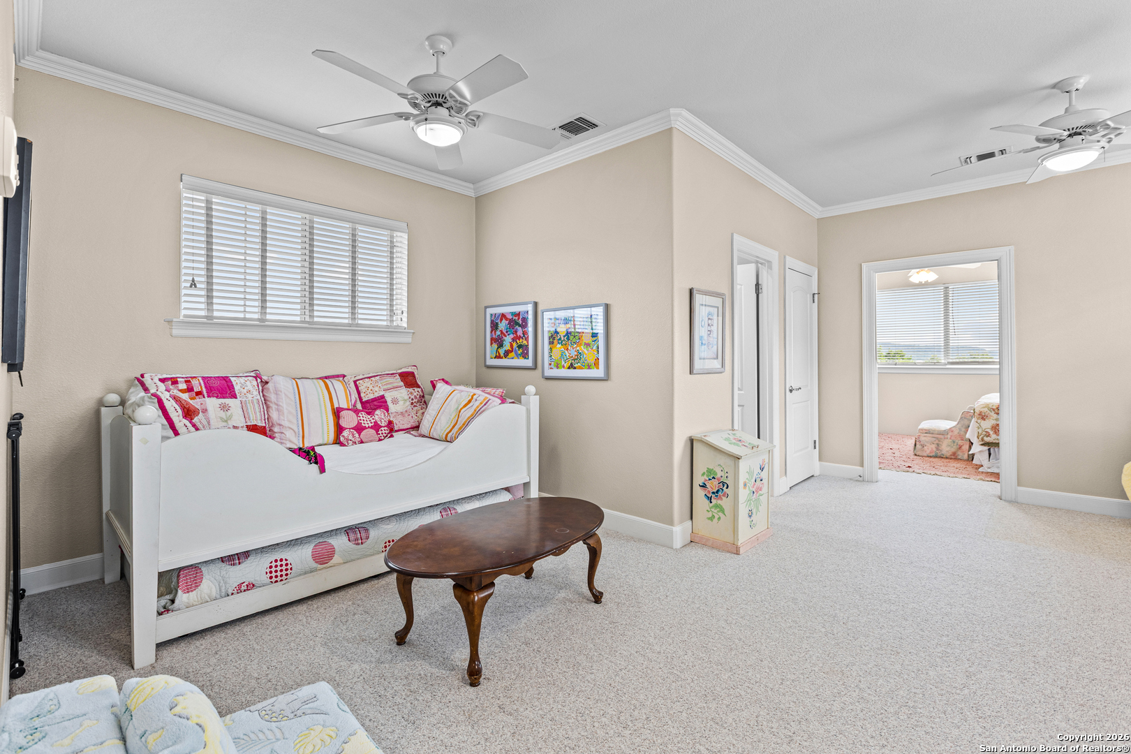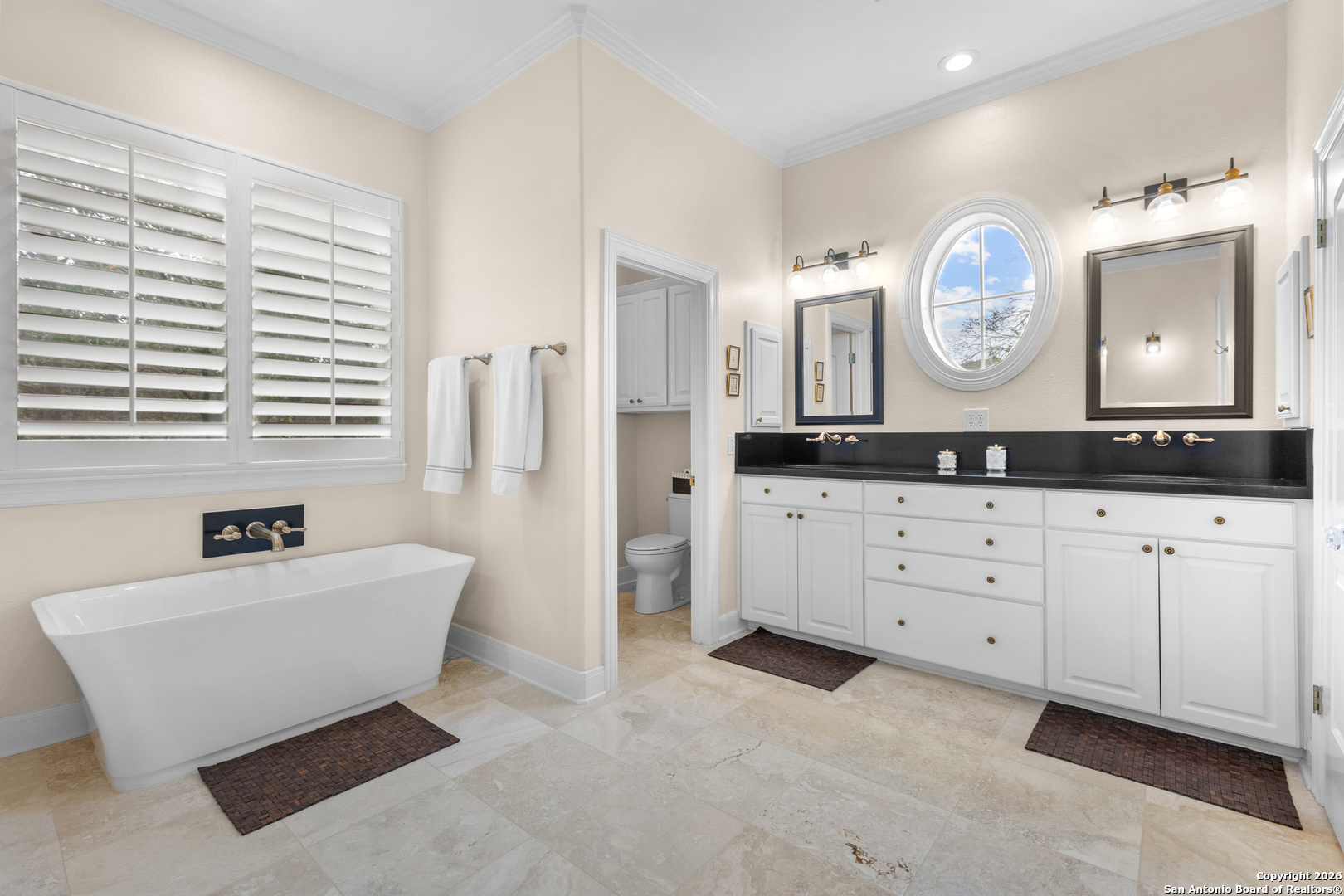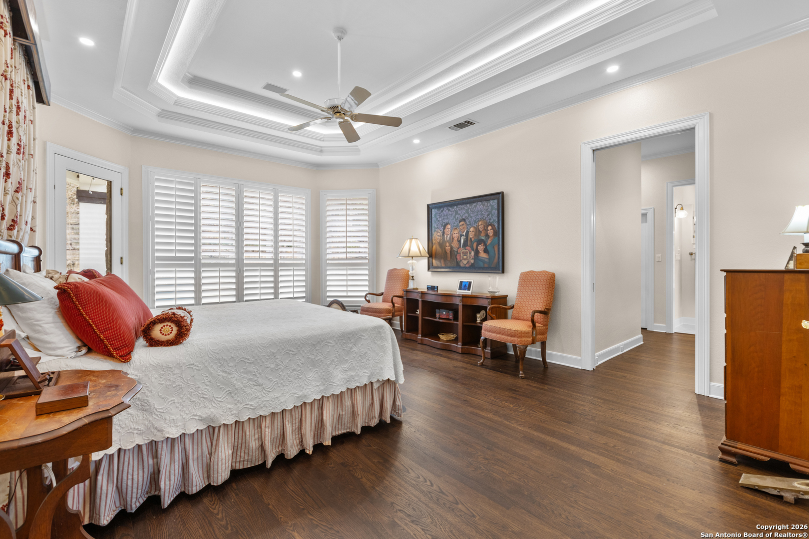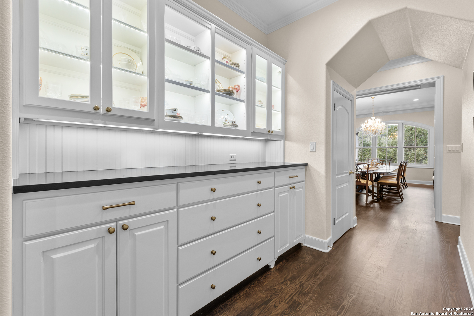Experience refined Hill Country luxury at 10924 Reyes Canyons in Helotes, TX. Set on 2.68 private acres, this exceptional estate offers resort-style outdoor living, grand architectural details, and thoughtfully designed interiors tailored to today's luxury lifestyle. The exterior makes a striking first impression with a circular drive, mature landscaping, and multiple garages including a 3-car oversized attached garage plus a 1-car detached garage, ideal for car enthusiasts or additional storage. The backyard is a true private resort, featuring a luxury pool with spa, waterfall, and slide, multiple outdoor living and entertaining areas, and a huge covered patio perfect for hosting year-round. A sport court offers space for basketball or pickleball, while a dedicated dog run adds everyday convenience. Surrounded by Hill Country views and natural privacy, this property is designed for both relaxation and entertaining on a grand scale. Step inside to a breathtaking foyer with a grand staircase, complemented by a secondary back staircase for seamless flow throughout the home. Richly refinished hardwood floors, soaring ceilings, and abundant natural light immediately set the tone for elegance and timeless design. This expansive residence offers six bedrooms, five and a half bathrooms, and an impressive four living areas, including a formal living room, family room, piano room, and an upstairs secondary living space. At the heart of the home is an updated chef's kitchen, featuring quartz countertops, Calacatta backsplash, champagne bronze hardware, a farmhouse sink, double ovens, gas cooking, and a pot filler, all designed to meet the expectations of discerning buyers. A butler's pantry and wet bar enhance entertaining, while the formal dining room comfortably accommodates seating for twelve or more. Two fireplaces add warmth and architectural interest throughout the main living spaces. The primary suite is located on the main level, offering a private retreat with direct outdoor access, a spa-like bathroom, his and hers walk-in closets, and a private laundry area within the primary bath. An additional laundry room on the main level provides added convenience. A first-floor executive study offers the ideal work-from-home environment. Upstairs, you'll find five generously sized bedrooms. Two pairs of bedrooms are arranged in Jack-and-Jill configurations offering functional layouts for family or guests. One upstairs bedroom features its own living room and full bathroom, making it ideal as a secondary primary suite, guest suite, au pair quarters, or multigenerational living space. A finished attic provides additional flexible space for storage, a playroom, or recreational use. Located within Los Reyes Canyons, one of Helotes' most sought-after luxury gated communities, residents enjoy privacy, custom estates, Hill Country scenery, and abundant wildlife, all just minutes from top-rated Northside ISD schools, shopping, dining, and the charm of Downtown Helotes. This home offers the rare combination of acreage, amenities, and architectural elegance that luxury buyers seek. Schedule your private showing and experience the best of Los Reyes Canyons luxury living.