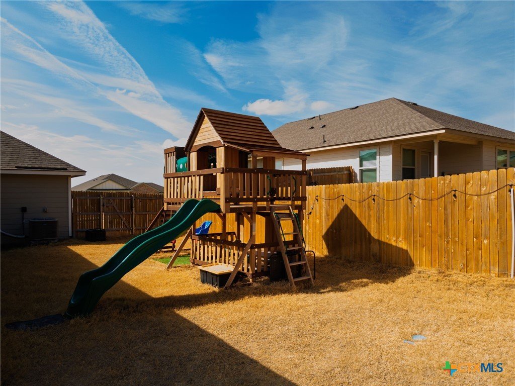 Looking for a big home for your family? This beautiful home in Clayton Ranch is designed for a growing family! With 5BR or 4BR and flex room, 3BA, and an open living area, this just may be your next home. Hosting family and friends' events will be effortless here with the open floor plan and large living area. ((Not to mention the enormous playscape in the yard for the children to play.) Prepare your favorite meals in the gorgeous kitchen that boasts a huge pantry and breakfast bar. The master bedroom and retreat takes relaxing to a new level, with a large soaking tub and shower! This home was built in 2023 and still looks brand new. Priced under the county appraisal price, this home will certainly be appealing not only for looks, but for the the price as well. Only minutes from the bypass to HEB and Ft Hood, will make traveling to work and shopping easier. Call your favorite agent today to see this beauty.