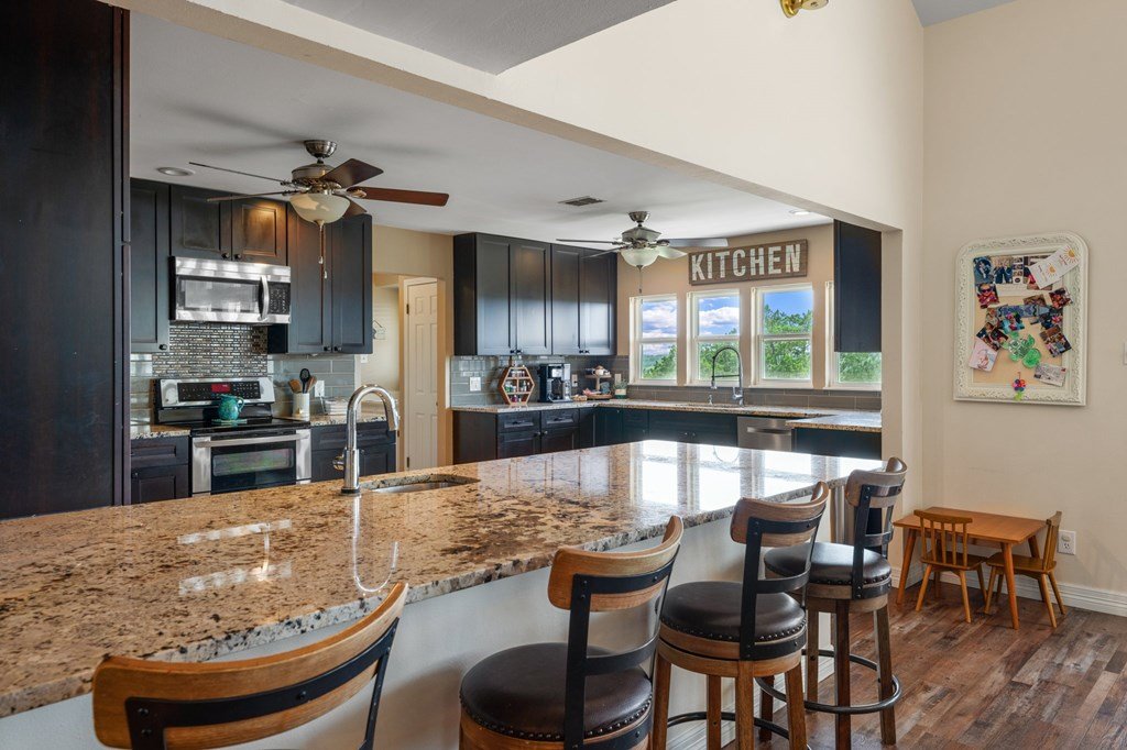 Welcome to your Hill Country haven in the coveted Northwest Hills! This charming 2,681 sq ft home offers an exquisite blend of modern luxury and serene natural beauty. Nestled amidst lush, mature landscaping, the property boasts exceptional curb appeal and a welcoming ambiance from the moment you arrive. Step inside to discover a living room with soaring ceilings and a striking wall of large windows that flood the space with natural light while framing breathtaking views of the surrounding landscape. The kitchen features sleek granite countertops, SS appliances including a double oven and built-in microwave, and a beverage bar w/ sink. A large primary bedroom with a spa-like primary bath that is a true sanctuary. Office or another bedroom on the main floor. Upstairs, a versatile gallery overlooks the living room and the stunning views beyond. Two additional bedrooms and a bathroom with tub/shower combo complete the second floor. Step outside to enjoy your private outdoor oasis, featuring a large patio with amazing views—Expansive backyard that is ideal for BBQs, entertaining guests, or just enjoying the beautiful Hill Country settings. You don't want to miss this opportunity.