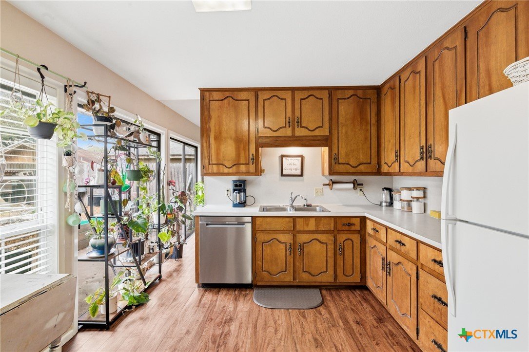 This inviting three bedroom, two bath home offers comfort, space and beautiful natural light throughout. The spacious living room features large windows that overlook the patio and backyard, creating a bright and airy atmosphere. A cozy wood burning fireplace serves as a great focal point. With the open living and dining space, this floorplan is ideal for entertaining or everyday use. The kitchen was designed with functionality in mind, complete with double pantries for abundant storage. With generous living space and thoughtful details, this home is ready to welcome its next owners.