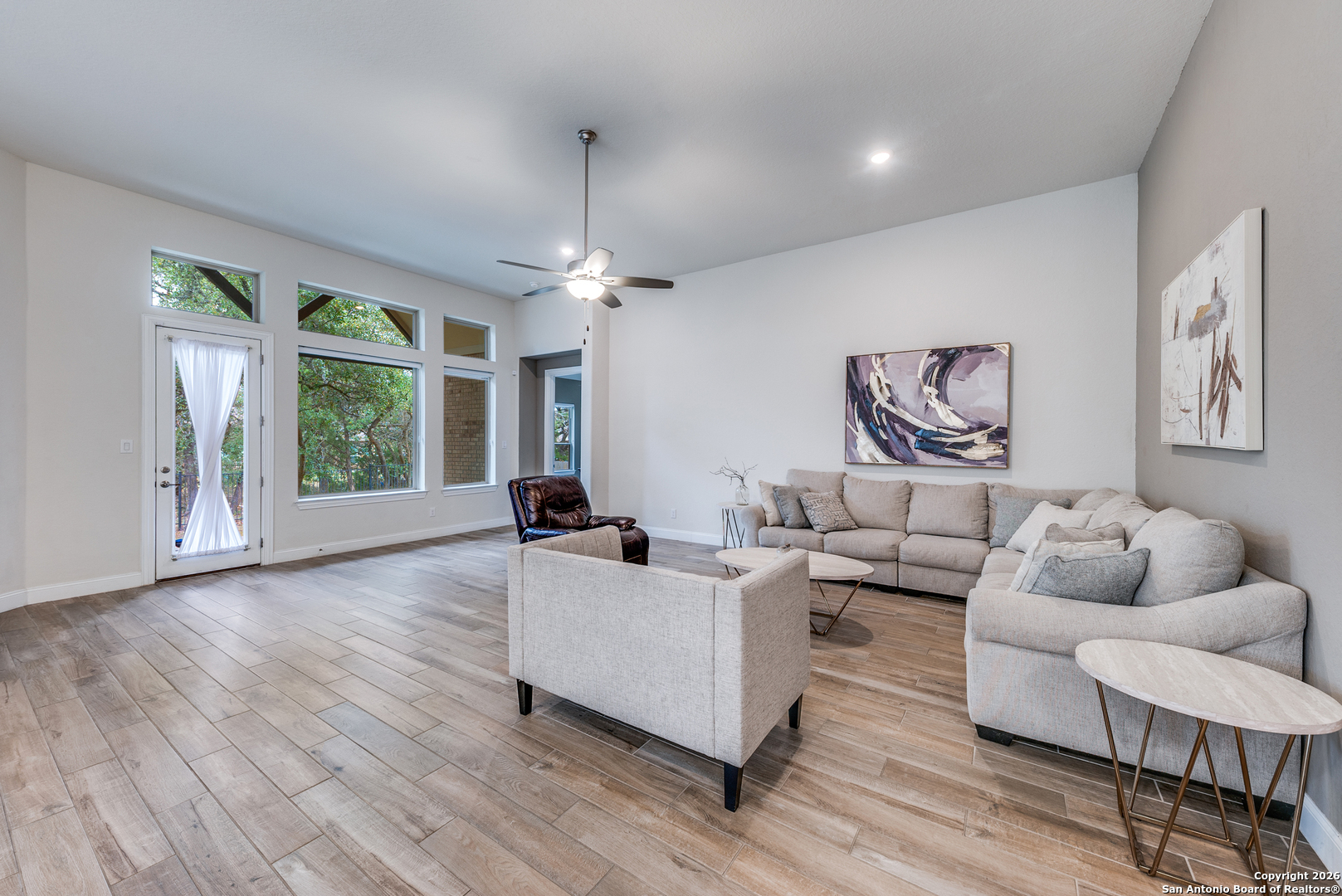 Don't miss this exceptional Villanova floor plan by Gehan Homes, located in the gorgeous Regent Park neighborhood. This spacious single-story home offers 4 bedrooms, 3 bathrooms, and a 3-car garage, thoughtfully designed for both everyday living and entertaining. The interior features soaring 12-foot ceilings, upgraded flooring, and 8-foot doors throughout, creating an open and elegant feel. A flexible game room or office provides additional space for work or play. The private primary suite is a true retreat, complete with an oversized walk-in shower, soaking tub, and separate vanities. The gourmet kitchen is a showstopper, featuring custom cabinetry, a massive island with breakfast bar seating, stainless steel appliances, and a sleek gas cooktop-perfect for entertaining and family gatherings. With generous living spaces inside and out, this home offers plenty of room to relax and enjoy. Located in the highly sought-after, top-rated Boerne ISD, Regent Park residents enjoy resort-style amenities including a clubhouse, pool, fitness center, and playground. This home combines luxury, space, and an unbeatable community setting.
