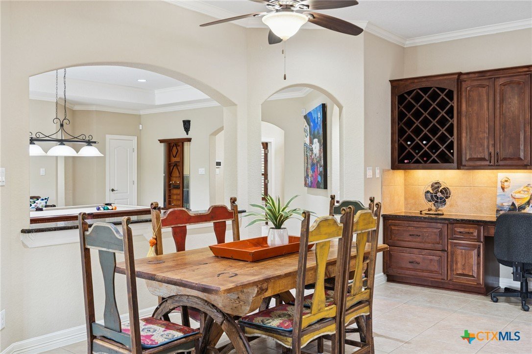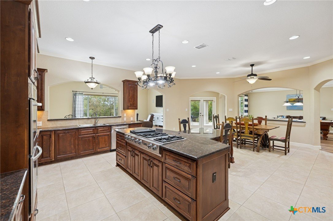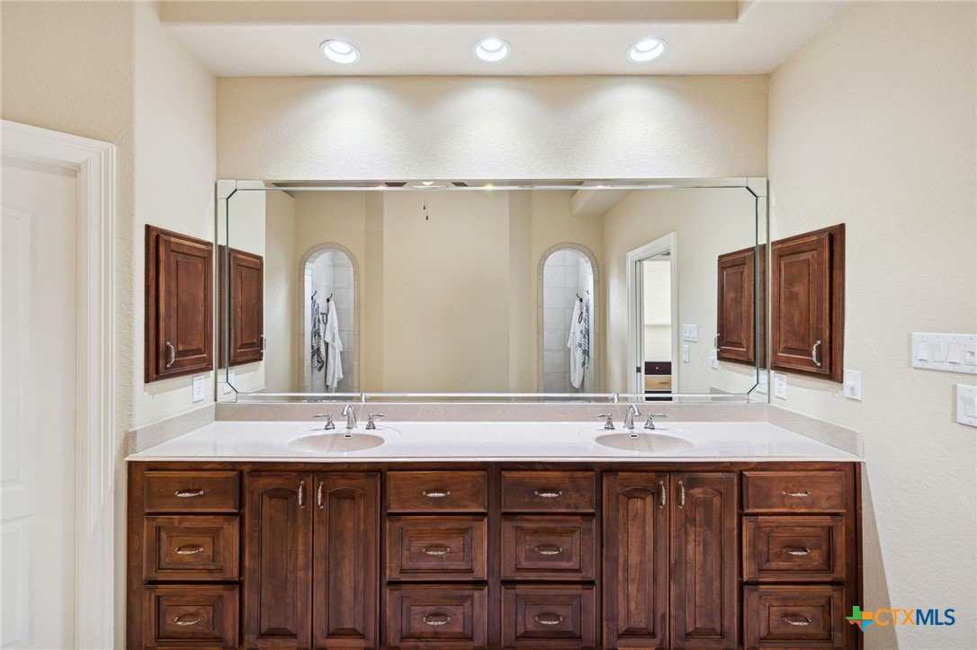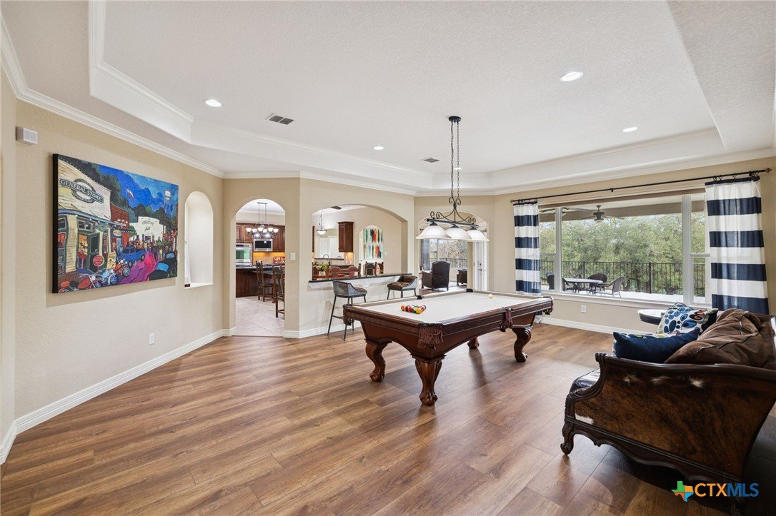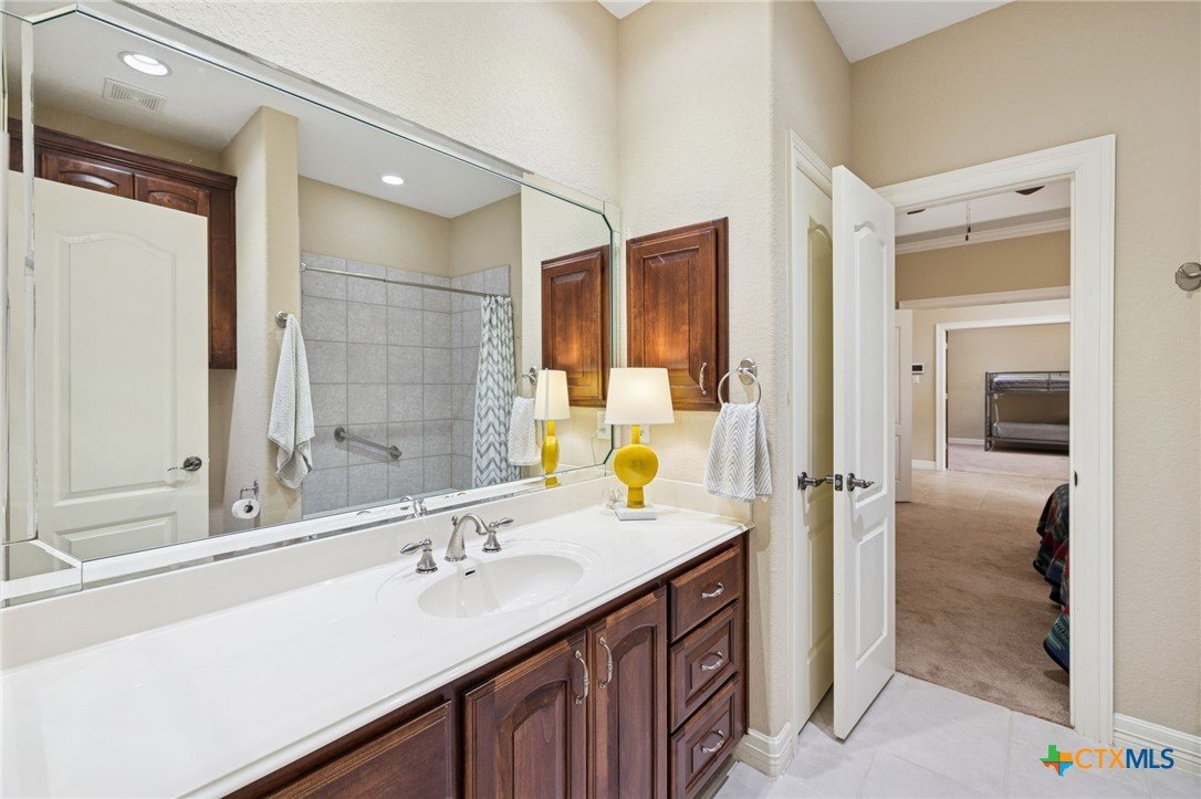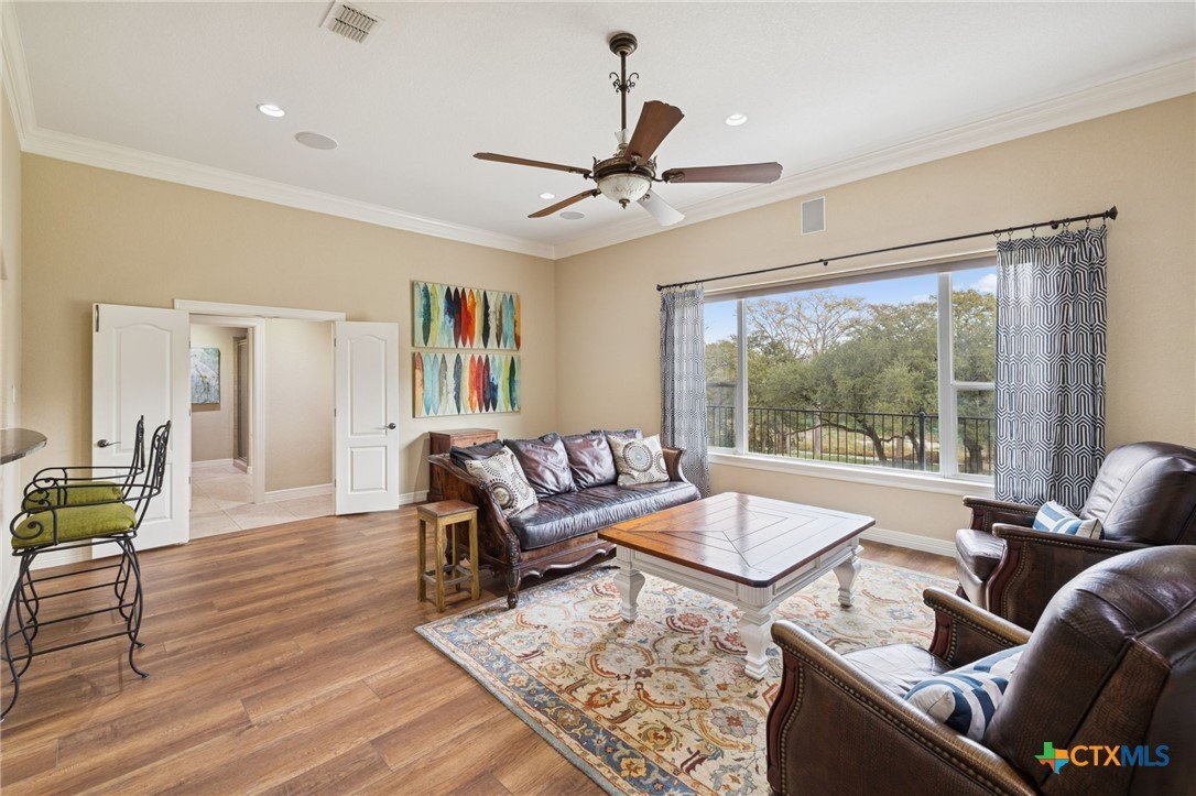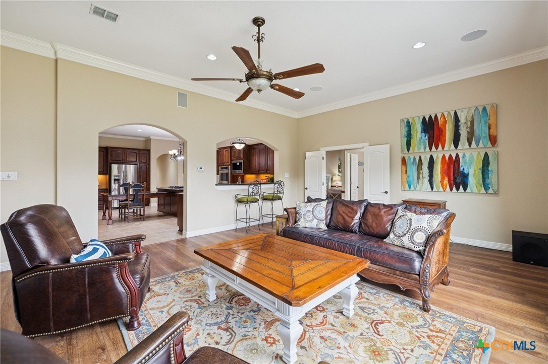 102' of prime Meadow Lake waterfront hits you the moment you arrive. The shoreline is fully dialed in—flagstone patio, lakeside lighting, and dedicated lake-gear storage to keep your toys ready at a moment’s notice. A single electric boat lift, dual jet ski lift, and level-ready lake access make getting on the water effortless. And when it’s time to play? An elevated deck is already staged for the perfect tree-swing splash. With Meadow Lake’s dam construction set for spring 2026, this is a rare chance to lock in true waterfront before demand surges. The property spans 1.18 acres of beautifully maintained grounds, shaded by mature oaks and lined with thoughtfully curated landscaping. A concrete walkway guides you to the water, while the oversized covered patio—complete with lighting, ceiling fans, and speakers—keeps the lake views rolling all day long. Inside, sunlight pours through massive windows framing the water at every angle. Crown molding, recessed lighting, vinyl flooring, and built-in speakers add style throughout. The kitchen brings space and function with granite countertops, a seating island, walk-in pantry, dual ovens, Jennair gas cooktop, built-ins, and a large dining area with a desk nook. The owner’s suite delivers a true retreat: private thermostat, sitting area, direct patio access, and a spa-style en suite with dual shower heads, dual vanity, and a huge walk-in closet. Secondary bedrooms feature French doors, plantation shutters, walk-in closets, and ceiling speakers. A separate guest suite adds its own en suite bath, tray ceiling, French doors, and private outdoor access. Plenty of room for friends, family, and everyone ready to live the lake lifestyle.